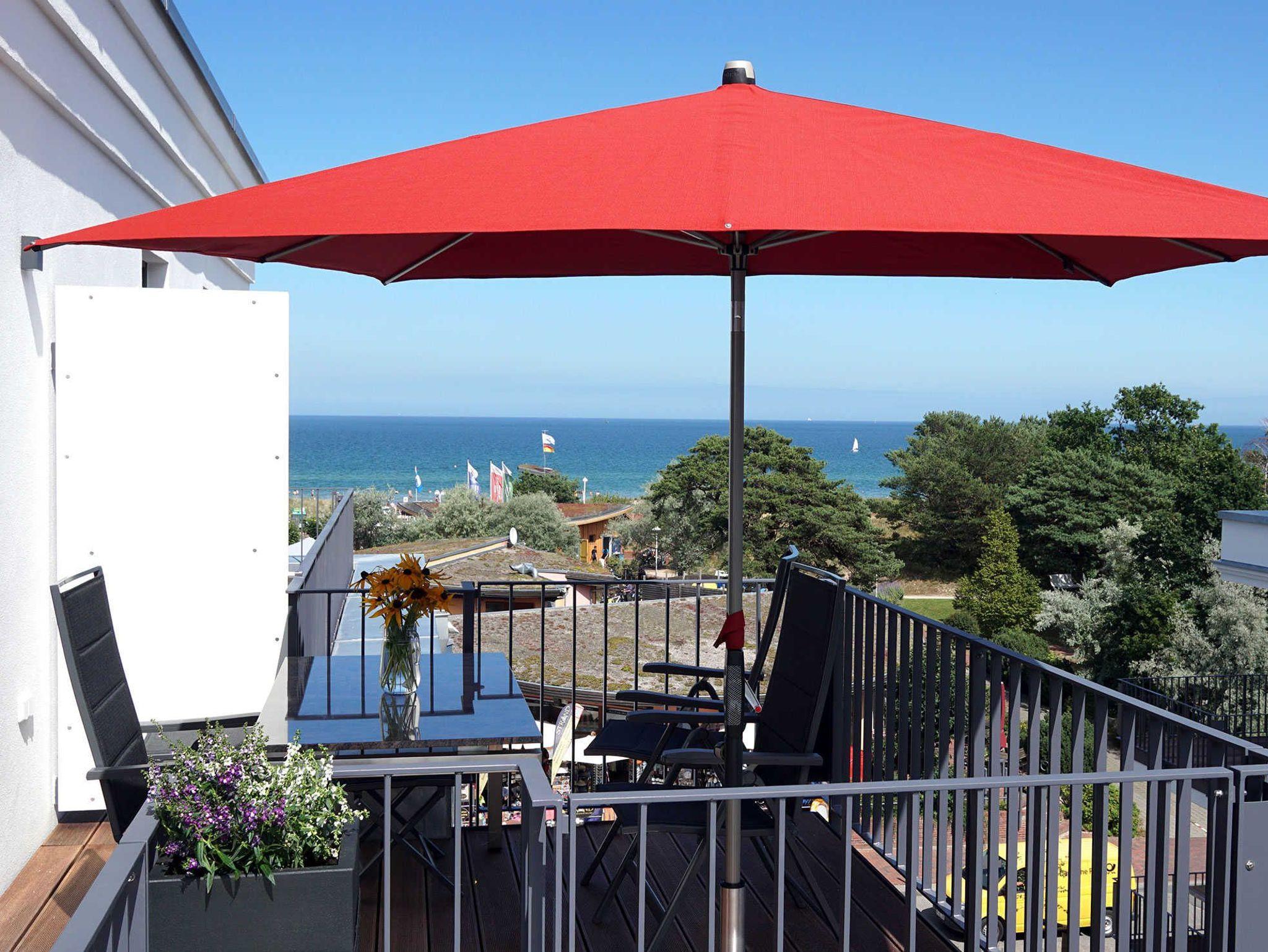 Hochwertig und modern ausgestattetes 2-Zimmer-Luxus-Penthouse für 2-3 Personen mit umlaufender 19qm Terrasse mit Meerblick, privater Sauna und Gas-Kamin nur wenige Meter vom Meer entfernt.