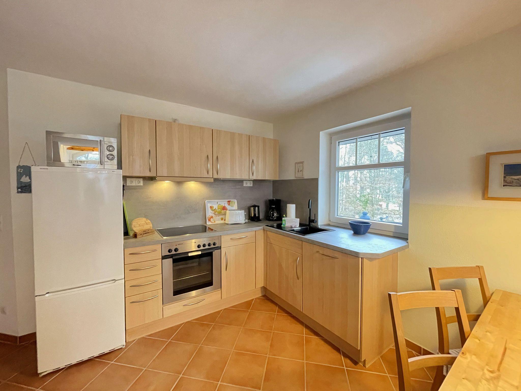 Die helle, freundliche 3-Raum-Maisonettewohnung (Nichtraucher) verläuft über 2 Etagen (mit Dachschrägen). Die Wohnung liegt im 2. Obergeschoss und hat einen großzügigen Wohnraum mit offener Küche, ein separates Schlafzimmer, einen mit einer bequemen Treppe erreichbaren, offenen Bodenraum (2. Schlafzimmer), das Bad sowie einen Abstellraum. Mit ihren ca. 60 m² bietet sie Platz für 2 bis max. 4 Erwachsene und 1 Kleinkind bis 3 Jahre im Kindereisebett. Die technische Ausstattung im Wohnraum lässt keine Wünsche offen: mit Smart-TV, DAB-Radio mit CD-Player sowie einer kostenfreien WLAN/LAN-Verbindung haben Sie alle modernen Informationsmedien an Bord. Eine gemütliche Couchecke mit Couchtisch und Leselampe komplettiert den Wohnraum. Der nach Südosten ausgerichtete, großzügige Balkon mit ca. 10 m² bietet Ihnen Blick auf den alten Baumbestand des Gartens und ist der ideale Platz für ein sonniges Frühstück. Hier kann Sie höchstens das Zwitschern der Vögel stören. Den bestuhlten Balkon erreichen Sie vom Wohnbereich. Das untere Schlafzimmer verfügt über ein Doppelbett mit 2 Einzelkaltschaummatratzen (2 x 0,90 m x 2,00 m), Nachtischablagen, Flachbild-TV und einem Kleiderschrank. Hier findet man auch Platz, um das Kinderreisebett aufzustellen. Im offenen Dachschlafzimmer finden Sie 2 zusammengestellte Einzelbetten (je 0,90 m x 2,00 m) mit Kaltschaummatratzen sowie eine Kommode. Die Betten in beiden Schlafzimmern sind aus Massivholz. Die Schlafräume verfügen über Verdunkelungsmöglichkeiten sowie Insektenschutz. Die solide eingerichtete Küchenzeile lässt mit Cerankochfeld, Backofen, Kühl- Gefrierkombi, Mikrowelle, Spülmaschine, Kaffeemaschine, Wasserkocher, Mixer und Toaster keine Wünsche offen. Damit steht dem Zubereiten von kulinarischen Genüssen nichts im Wege. Der Esstisch mit 4 Stühlen grenzt am Wohnbereich. Das geflieste und mit Fußbodenheizung versehende Badezimmer ist mit Dusche, WC, Waschplatz, Fön und einer Waschmaschine (Münzgerät: 30 min á 0,50 Euro) ausgestattet. Der Heizkörper ist als Handtuchtrockner ausgelegt. Im Abstellraum können Sie Ihre Koffer verstauen. Zusätzlich finden Sie hier auch Reinigungsutensilien, einen Wäscheständer sowie inklusive 1x Kinderreisebett (ohne zusätzliche Matratze und Bett Inlett) und 1x Hochstuhl. Wir haben viel Wert auf eine möglichst allergikerfreundliche Ausstattung gelegt. So haben wir keine textilen Bodenbeläge verwendet. Alle Anstriche sind mit hochwertigen Silikatfarben ausgeführt. Haustiere sind aus diesem Grund auch nicht erlaubt. Ein PKW-Stellplatz Nr. 09 befindet sich direkt am Objekt. Die Erstausstattung eines Wäschepaketes (komplette Bettwäsche, 1 Duschhandtuch, 1 kleines Handtuch) können Sie bis 14 Tage vor Anreise gegen einen Aufpreis dazu buchen oder durch eigene ergänzen. Ab 2 gebuchten Paketen erhalten Sie einmalig 1 Geschirrhandtuch und 1 Duschvorleger hinzu.