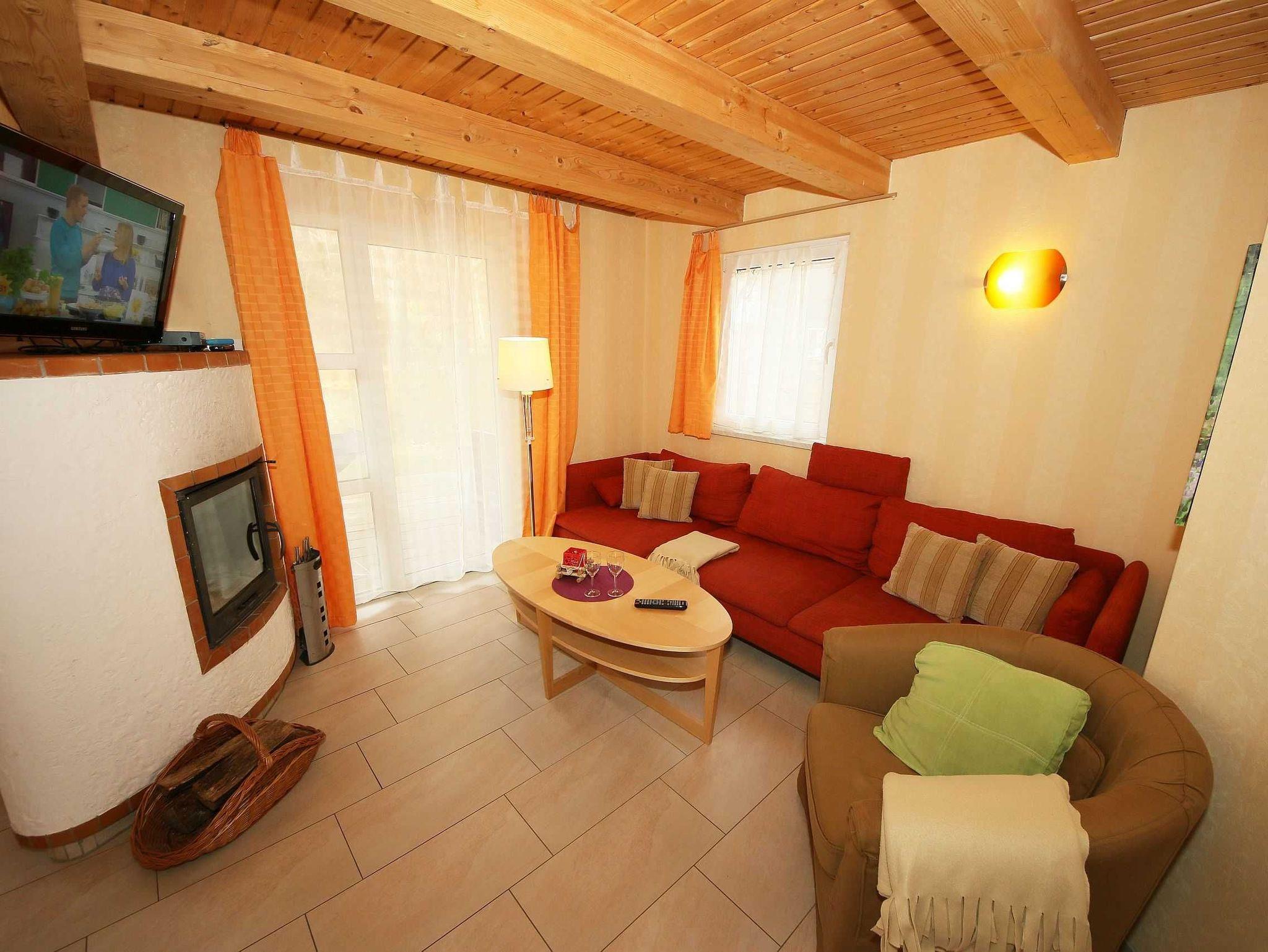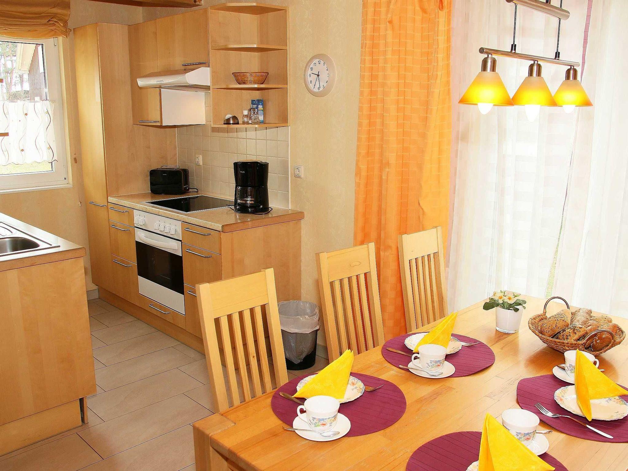 Herzlich Willkommen in unserem Strandhaus im schönen Ostseebad Baabe auf Rügen! Unser 70 qm großes alleinstehendes Standhaus im Schwedenstil (Nichtraucher, 2 bis 6 Erwachsene + 1 Kleinkind bis 3 Jahre im Kinderreisebett) liegt nah am Strand, direkt im Dünenwald von Baabe. Das Holzhaus ist gemütlich mit viel hellem Naturholz eingerichtet und gleichzeitig modern, komfortabel und voll ausgestattet. Dazu zählen wir sowohl die moderne Komfortküche mit Ceran-Herd, Backofen, Mikrowelle, Geschirrspüler, Kühlschrank mit Eisfach, Getränkekühlschrank, Kaffeemaschine, Wasserkocher, Toaster, Reinigungsutensilien und mehr als auch den Wohnkomfort einer Fußbodenheizung, der LCD-Fernseher in HD-Qualität, Satelliten-Anschluss für hohe Programmvielfalt und ein DVD-Player mit Radio. Ein gemütlicher großer Wohnbereich und Kamin (Kaminholz inklusive) mit Sichtfenster rundet unsere Einrichtung ab. Und damit Sie Ihren Urlaub bei uns ganz entspannt genießen können, sind alle Kosten für Strom, Wasser und Heizung sowie das WLAN bereits im Preis inklusive! Die hauseigene Sauna mit Ruhebereich finden Sie im Untergeschoss des Hauses. Das Haus verfügt über insgesamt vier Schlafzimmer im Obergeschoss. Zwei Schlafzimmer sind mit Doppelbett (1,60 m x 2,00 m) und Kleiderschrank ausgestattet und bieten ausreichend Platz für 1 zusätzliches Kinderreisebett (inklusive Matratze). Das dritte und vierte Schlafzimmer verfügt über je ein Einzelbett (je 0,80 m x 2,00 m) ? gut geeignet für Singles oder Kinder. Im Erd- sowie im Obergeschoss befinden sich jeweils ein Tageslicht-Bad mit großem Spiegel, WC, Dusche und Haartrockner. Am Wohn-/ Essbereich schließt sich die überdachte Terrasse (Süd/West) mit Tisch, Stühlen und Gartengrill an. Von hier blicken Sie direkt in den Dünenwald und entspannen mit der größtmöglichen Privatsphäre. Ein Waschhaus mit Waschmaschine steht Ihnen inklusive zur Verfügung. PKW-Stellplatz nahe am Strandhaus. Haben Sie ein Haustier, das Sie mitbringen möchten? Gerne ist dies gegen eine Gebühr möglich. Sind Sie vor Ort, so haben wir für Sie weitere zusätzliche Angebote (gegen Gebühr) direkt im Dünenpark. In unserem Backshop selbst erhalten Sie in der Saison täglich frisch: Brötchen, Lebensmittel, Tageszeitungen, Frühstück, Kaffee & Kuchen und mehr (Schließzeiten immer vom 07.01. - 1 Woche vor Ostern). Die Erstausstattung eines Wäschepaketes (komplette Bettwäsche, 1 Duschhandtuch, 2 kleine Handtücher) können Sie bis 14 Tage vor Anreise gegen einen Aufpreis dazu buchen oder durch eigene ergänzen. Ab 2 gebuchten Paketen erhalten Sie einmalig 1 Geschirrhandtuch und 1 Duschvorleger hinzu. Wir freuen uns auf Ihren Besuch!