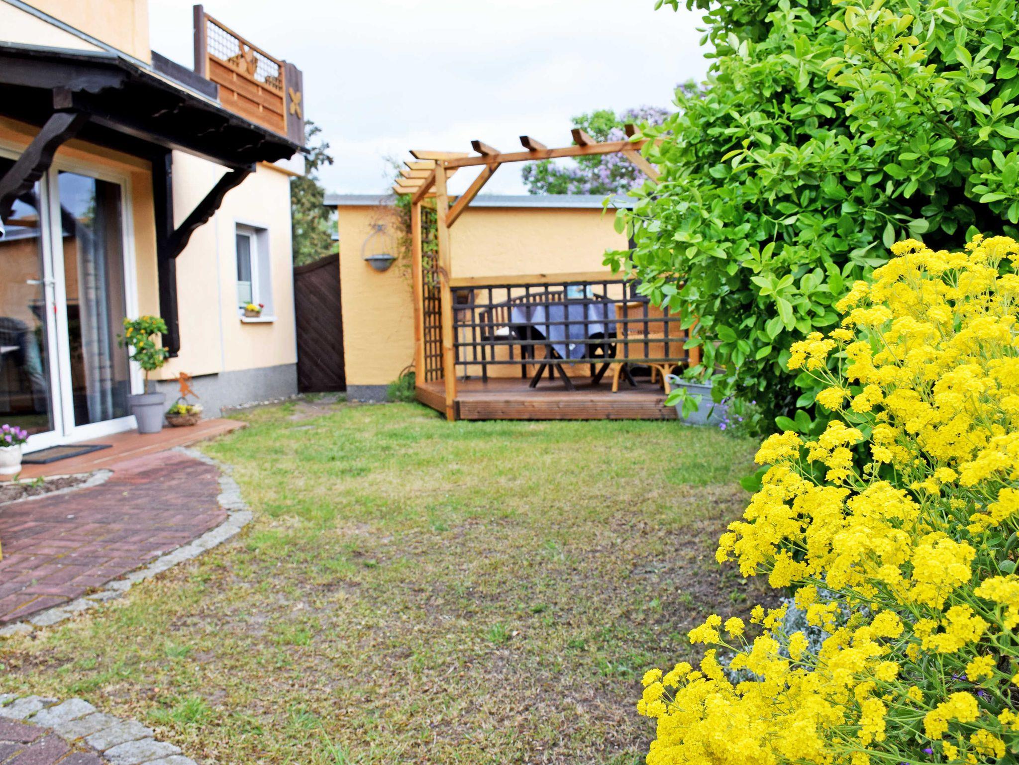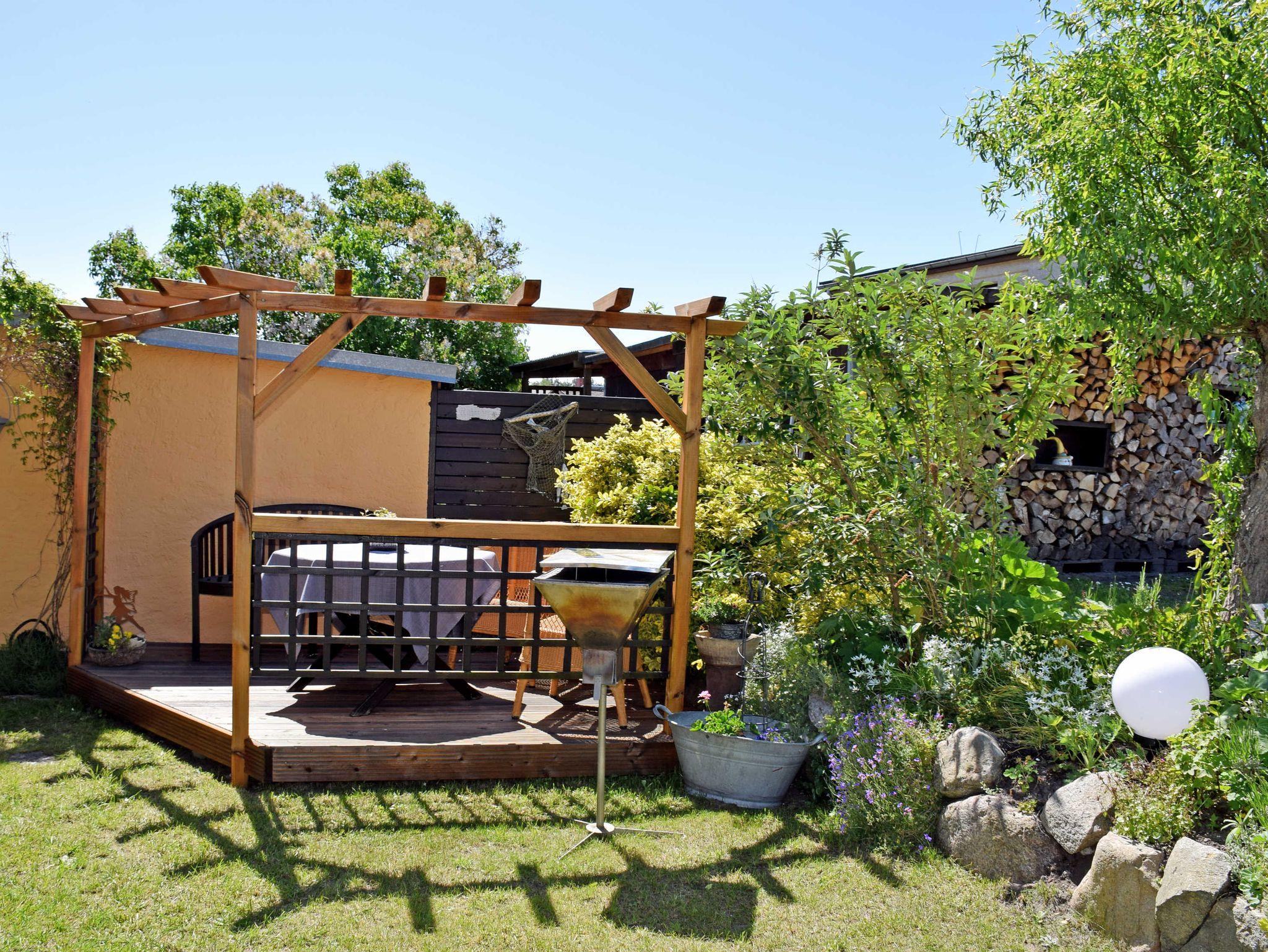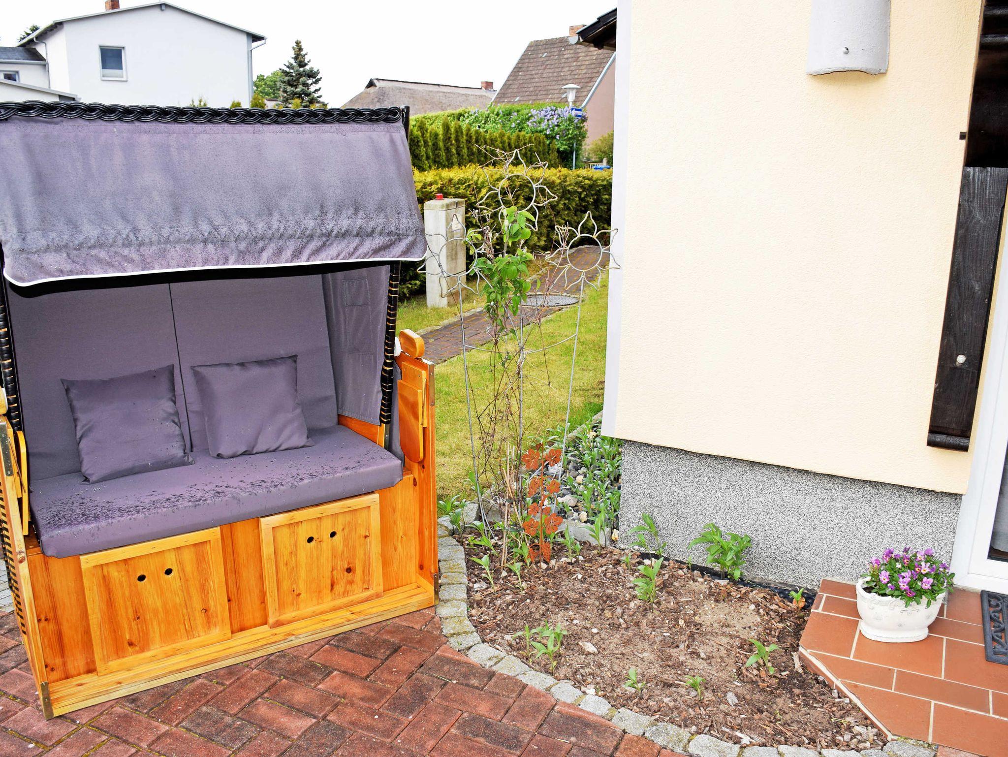 Genießen Sie die zur Ferienwohnung gehörende Terrasse mit Sitzmöbeln und Strandkorb oder die Liegewiese vor der Ferienwohnung. Hier gibt es auch eine Grillmöglichkeit. Der kostenlose PKW-Stellplatz befindet sich unmittelbar an der Ferienwohnung.