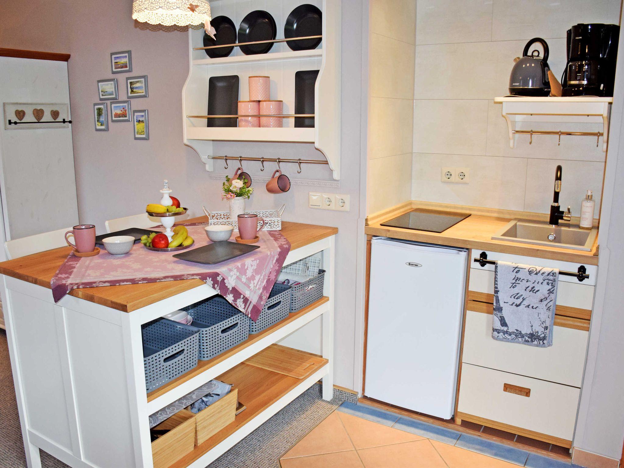Unsere Ferienwohnung ist hübsch und modern eingerichtet. Zur Ausstattung gehöhren ein bequemes Doppelbett, eine Sitzcouch die bei Bedarf für ein Kind aufgebettet werden kann, eine kleine Kochnische und ein Bad mit Dusche und WC. Zur Küchernausstattung gehören Toaster, Wasserkocher, Herd und Spühle. Die Ferienwohnung verfügt auch über TV und Radio, CD-Player, Handtücher und Bettwäsche sind vorhanden. An schönen Tagen können Sie die zur Ferienwohnung gehörende Terrasse mit Sitzmöbeln oder die Liegewiese vor der Ferienwohnung nutzen. Hier gibt es auch eine Grillmöglichkeit.
