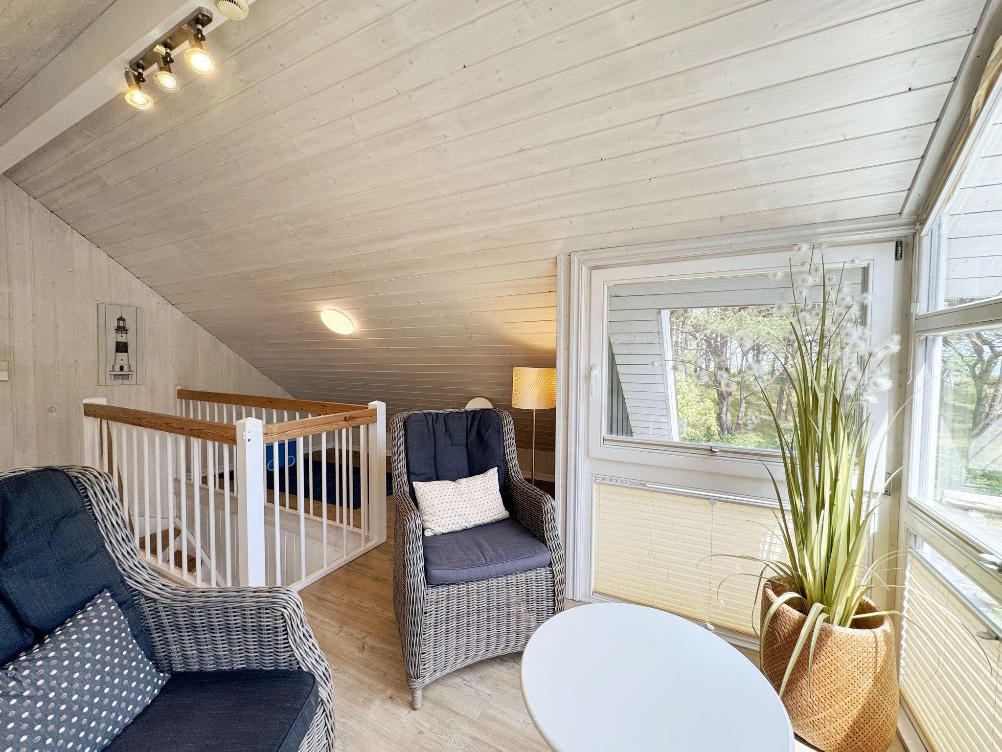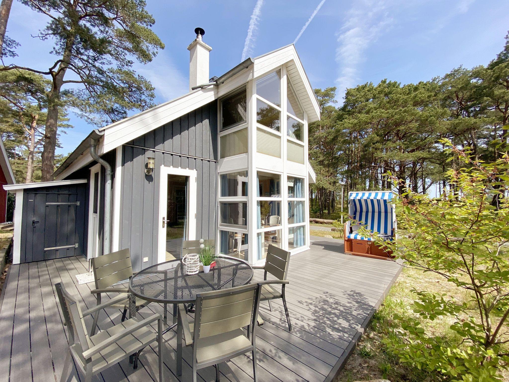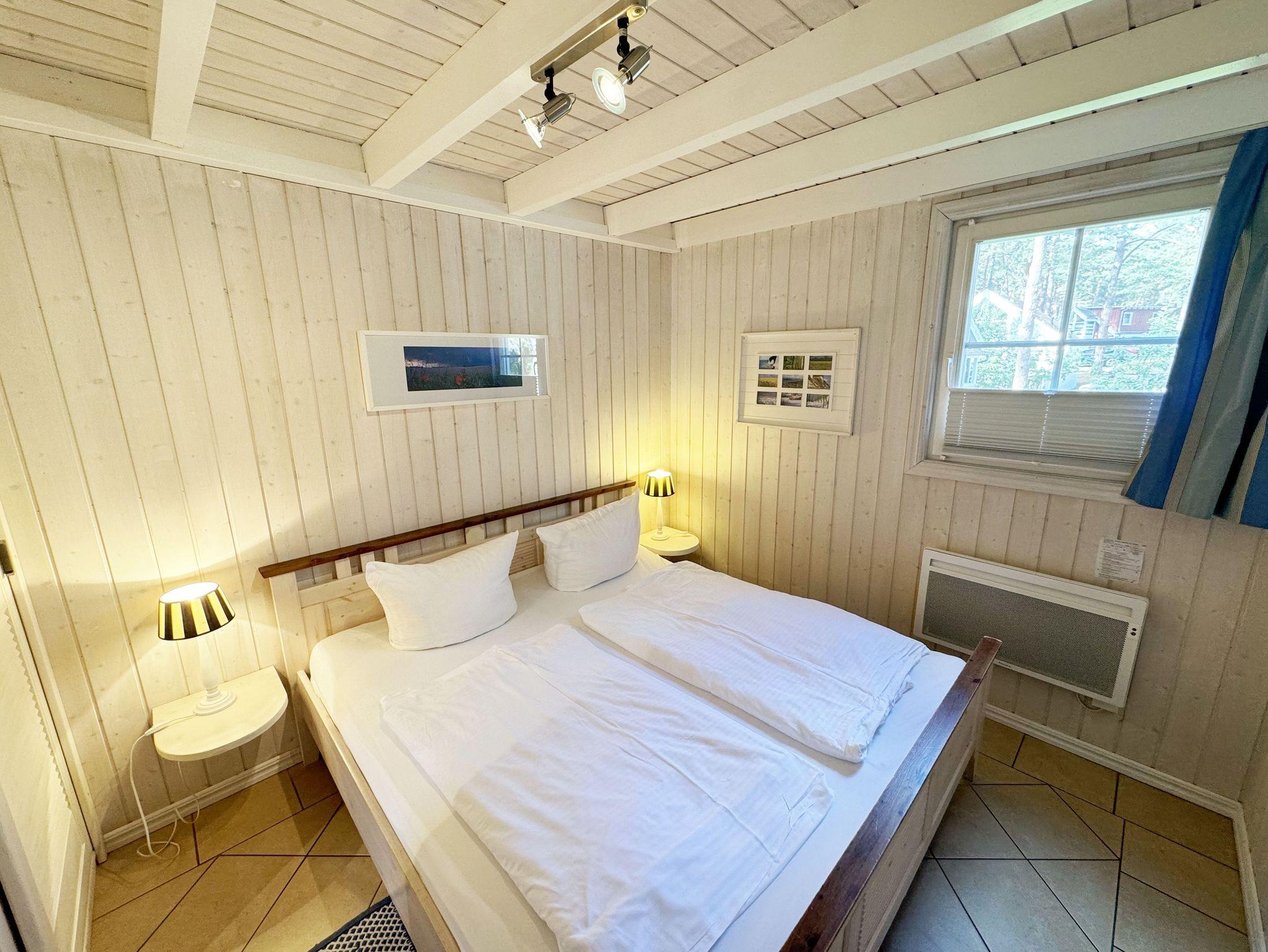 Das haustierfreie Nichtraucherferienhaus „Sandkörnchen“ bietet ausreichend Platz für 4 Erwachsene und 1 Kleinkind bis 3 Jahre im Kinderbett. Das 80 qm große Holzhaus in typisch skandinavischem Stil ist sehr liebevoll ausgestattet und bietet eine hochwertige Einrichtung auf zwei Etagen. Es erwartet Sie im Erdgeschoss ein großer Wohn- und Essbereich mit Kaminofen und Smart-TV, Blu Ray-Player sowie ein DAB-Radio-CD-Player. Auch auf einen Internetanschluss über WLAN brauchen Sie im Urlaub nicht verzichten. Dieser ist für Sie inklusive. Zwei gemütliche Ledercouchen mit Couchtisch und einem Sideboard garantieren entspannende Abende. Insektenschutzgitter befinden sich im Erdgeschoss sowie der Terrassentür. Der lichtdurchflutete stilvolle Essbereich mit Vollholzmöbeln bietet Ihnen ausreichend Platz für 4 Personen. Die moderne Einbauküche ist ausgestattet mit allem was man für das alltägliche Leben braucht. Deshalb gehören ein Kühlschrank mit Gefrierfach, ein Backofen mit Ceranfeld und Dunstabzug, eine Mikrowelle, eine Spülmaschine, ein nickelfreier Wasserkocher, eine Kaffeemaschine, eine Senseo Padmaschine, ein Toaster, ein Eierkocher, ein Mixer, Teekannen, reichlich Geschirr und Gläser sowie selbstverständlich alle weiteren Utensilien zum Kochen und Essen zum Inventar. Ebenfalls Teil des Erdgeschosses ist ein Schlafzimmer mit einem Doppelbett (1,80 m x 2,00 m) mit hochwertigen Kaltschaummatratzen und verstellbaren Lattenrosten, einem Nachtschrank und einer Nachttischablage sowie einem dreitürigen Kleiderschrank mit Spiegel. Insektenschutzgitter und Verdunklungsplissees sorgen hier für einen ruhigen, erholsamen Schlaf. Das großzügige Bad mit ebenerdiger Dusche, Eckbadewanne, Sauna, Waschmaschine, Handtuchtrockner, Fön und großem Waschtisch wird Sie begeistern. Sie erreichen es vom Flur aus, welcher mit Schuhschrank, Garderobe und Spiegel möbliert ist. Im Wohnbereich sowie im Bad sorgt die Fußbodenheizung für angenehme Wärme. In der 1. Etage befindet sich eine helle Galerie mit großer Fensterfront und gemütlicher Sitzecke, kleinem Tisch und Leselampe mit Blick zum Meer und in den Kiefernwald. Das zweite Schlafzimmer, gemütlich unter Dachschrägen, ist von hier aus erreichbar. Es ist mit einem Massivholzbett (1,60 m x 2,00 m), verstellbare Lattenroste, 2 Nachttischablagen, einem stabilen Kinderbett sowie einem Kleiderschrank ausgestattet. Das Fenster ist auch hier mit einem Verdunklungsplissees und Insektenschutzgitter versehen. Für unsere kleinen Gäste stehen 1x Hochstuhl und 1x stabiles Kinderbett (ohne Bettinlett) inklusive zur Verfügung. Haustiere sind im Haus nicht erlaubt. Auf der großzügigen bestuhlten Holzterrasse (Südost/West) haben ein Strandkorb (Mai-September), Sonnenliegen und ein Sonnenschirm zusätzlich ihren Platz gefunden. Eine angenehme Wärme wird durch Infrarotheizkörper ausgestrahlt. Für Ihre Räder befindet sich am Haus ein Fahrradständer. Im Anbauschuppen können Sie diverse Strandutensilien unterbringen. Ein PKW-Stellplatz (Nr. 271) befindet sich direkt vor dem Haus. Ab einem Aufenthalt von 7 Nächten, ist ein Sack Kaminholz in der Zeit vom 01.Oktober bis 30. April für Sie inklusive. Die Erstausstattung eines Wäschepaketes (komplette Bettwäsche, 1 Duschhandtuch, 2 kleine Handtücher) können Sie bis 14 Tage vor Anreise gegen einen Aufpreis dazu buchen oder durch eigene ergänzen. Ab 2 gebuchten Paketen erhalten Sie einmalig 1 Geschirrhandtuch und 1 Duschvorleger hinzu.