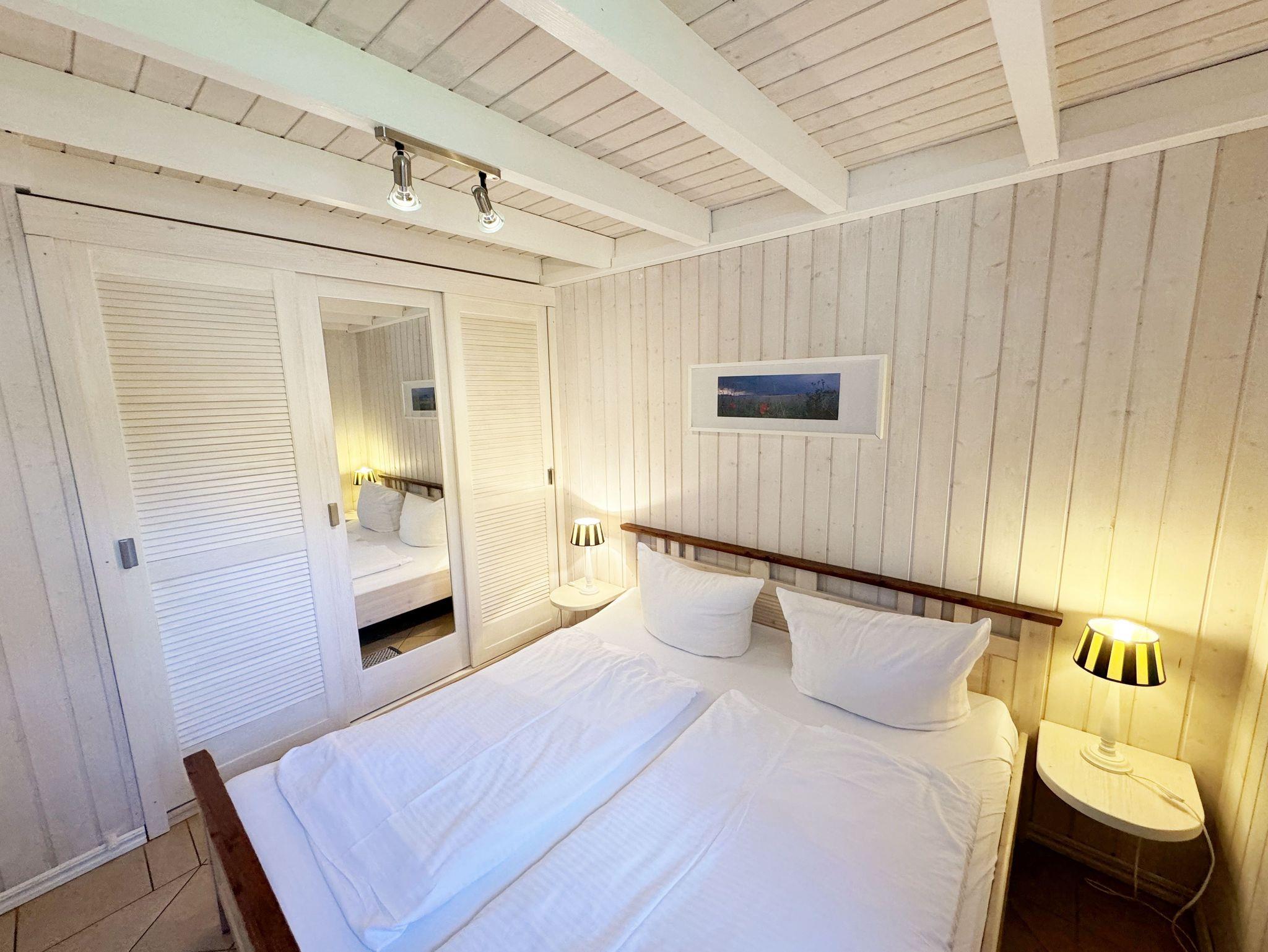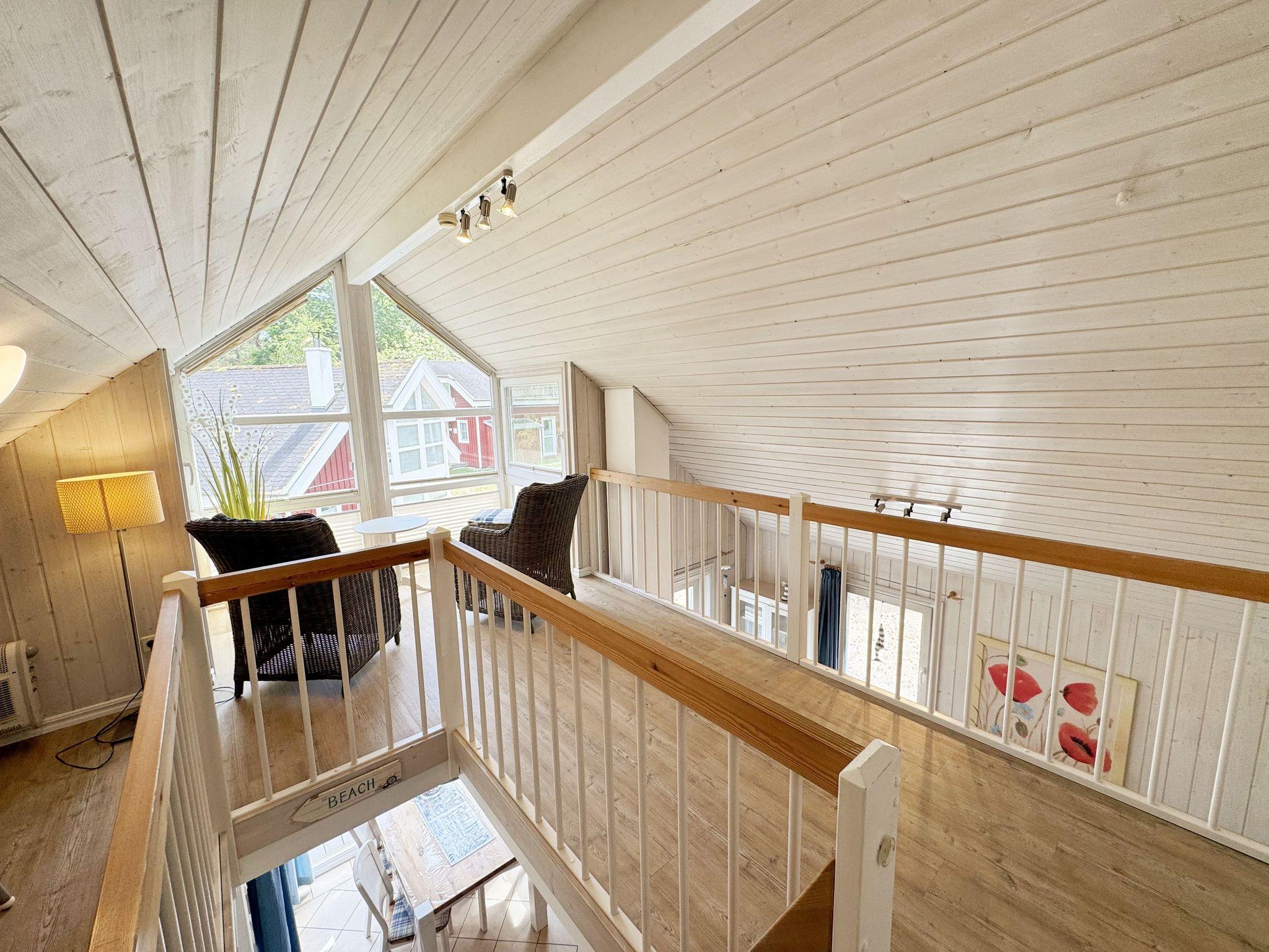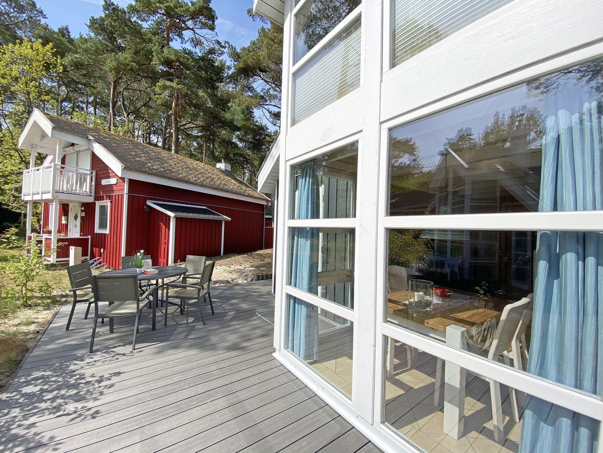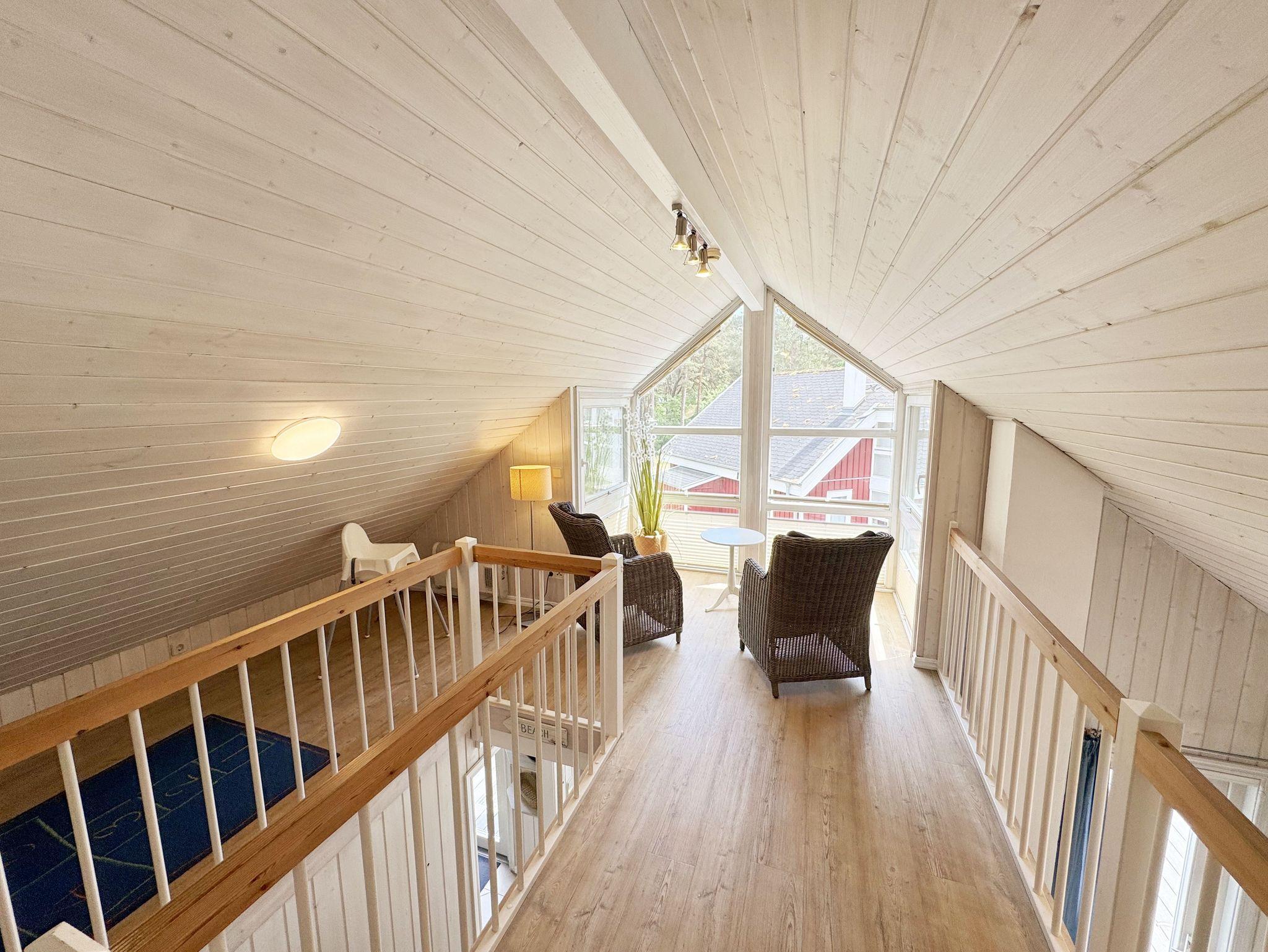 Das haustierfreie Nichtraucherferienhaus „Sandkörnchen“ bietet ausreichend Platz für 4 Erwachsene und 1 Kleinkind bis 3 Jahre im Kinderbett. Das 80 qm große Holzhaus in typisch skandinavischem Stil ist sehr liebevoll ausgestattet und bietet eine hochwertige Einrichtung auf zwei Etagen. Es erwartet Sie im Erdgeschoss ein großer Wohn- und Essbereich mit Kaminofen und Smart-TV, Blu Ray-Player sowie ein DAB-Radio-CD-Player. Auch auf einen Internetanschluss über WLAN brauchen Sie im Urlaub nicht verzichten. Dieser ist für Sie inklusive. Zwei gemütliche Ledercouchen mit Couchtisch und einem Sideboard garantieren entspannende Abende. Insektenschutzgitter befinden sich im Erdgeschoss sowie der Terrassentür. Der lichtdurchflutete stilvolle Essbereich mit Vollholzmöbeln bietet Ihnen ausreichend Platz für 4 Personen. Die moderne Einbauküche ist ausgestattet mit allem was man für das alltägliche Leben braucht. Deshalb gehören ein Kühlschrank mit Gefrierfach, ein Backofen mit Ceranfeld und Dunstabzug, eine Mikrowelle, eine Spülmaschine, ein nickelfreier Wasserkocher, eine Kaffeemaschine, eine Senseo Padmaschine, ein Toaster, ein Eierkocher, ein Mixer, Teekannen, reichlich Geschirr und Gläser sowie selbstverständlich alle weiteren Utensilien zum Kochen und Essen zum Inventar. Ebenfalls Teil des Erdgeschosses ist ein Schlafzimmer mit einem Doppelbett (1,80 m x 2,00 m) mit hochwertigen Kaltschaummatratzen und verstellbaren Lattenrosten, einem Nachtschrank und einer Nachttischablage sowie einem dreitürigen Kleiderschrank mit Spiegel. Insektenschutzgitter und Verdunklungsplissees sorgen hier für einen ruhigen, erholsamen Schlaf. Das großzügige Bad mit ebenerdiger Dusche, Eckbadewanne, Sauna, Waschmaschine, Handtuchtrockner, Fön und großem Waschtisch wird Sie begeistern. Sie erreichen es vom Flur aus, welcher mit Schuhschrank, Garderobe und Spiegel möbliert ist. Im Wohnbereich sowie im Bad sorgt die Fußbodenheizung für angenehme Wärme. In der 1. Etage befindet sich eine helle Galerie mit großer Fensterfront und gemütlicher Sitzecke, kleinem Tisch und Leselampe mit Blick zum Meer und in den Kiefernwald. Das zweite Schlafzimmer, gemütlich unter Dachschrägen, ist von hier aus erreichbar. Es ist mit einem Massivholzbett (1,60 m x 2,00 m), verstellbare Lattenroste, 2 Nachttischablagen, einem stabilen Kinderbett sowie einem Kleiderschrank ausgestattet. Das Fenster ist auch hier mit einem Verdunklungsplissees und Insektenschutzgitter versehen. Für unsere kleinen Gäste stehen 1x Hochstuhl und 1x stabiles Kinderbett (ohne Bettinlett) inklusive zur Verfügung. Haustiere sind im Haus nicht erlaubt. Auf der großzügigen bestuhlten Holzterrasse (Südost/West) haben ein Strandkorb (Mai-September), Sonnenliegen und ein Sonnenschirm zusätzlich ihren Platz gefunden. Eine angenehme Wärme wird durch Infrarotheizkörper ausgestrahlt. Für Ihre Räder befindet sich am Haus ein Fahrradständer. Im Anbauschuppen können Sie diverse Strandutensilien unterbringen. Ein PKW-Stellplatz (Nr. 271) befindet sich direkt vor dem Haus. Ab einem Aufenthalt von 7 Nächten, ist ein Sack Kaminholz in der Zeit vom 01.Oktober bis 30. April für Sie inklusive. Die Erstausstattung eines Wäschepaketes (komplette Bettwäsche, 1 Duschhandtuch, 2 kleine Handtücher) können Sie bis 14 Tage vor Anreise gegen einen Aufpreis dazu buchen oder durch eigene ergänzen. Ab 2 gebuchten Paketen erhalten Sie einmalig 1 Geschirrhandtuch und 1 Duschvorleger hinzu.