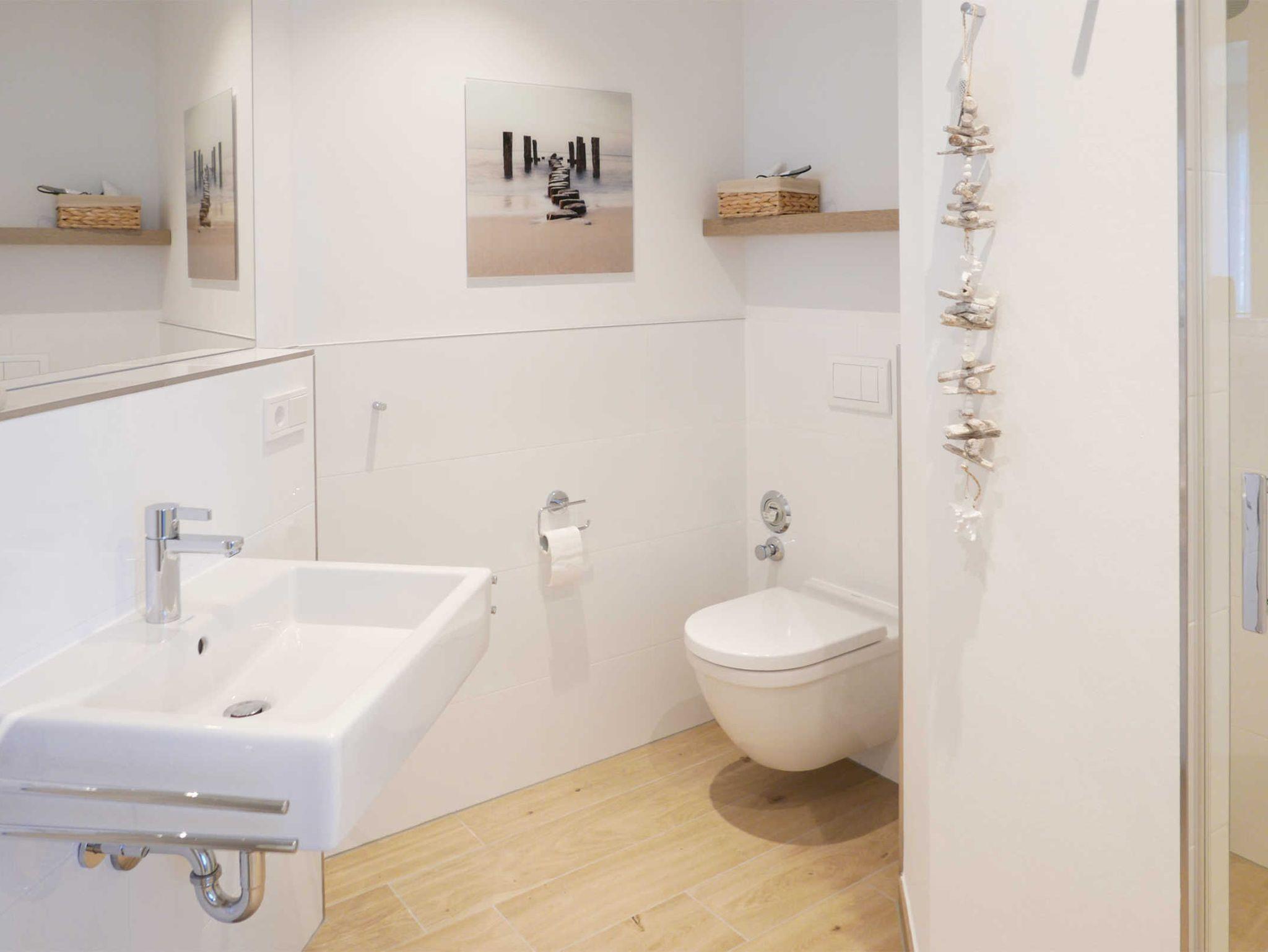 Wunderschöne neu gebaute Villa vis a vis dem Strand, an der Promenade von Baabe. Exquisite Ferienwohnung mit Meerblick für 4 Personen in der Villa Andrea. Die 68 qm große Wohnung mit Balkon verfügt über 2 Schlafzimmer mit je einem Flachbildschirm, eines mit Doppelbett (180 x 200 Meter) und eines mit 2 Einzelbetten (je 90 x 200 Meter). Ein schöner Luxus sind die beiden Duschbäder mit WC, eines davon ensuite zum Doppelschlafzimmer. Die Küche ist mit Induktionsherd, Backofen, Geschirrspülmaschine und vielen mehr bestens ausgestattet.