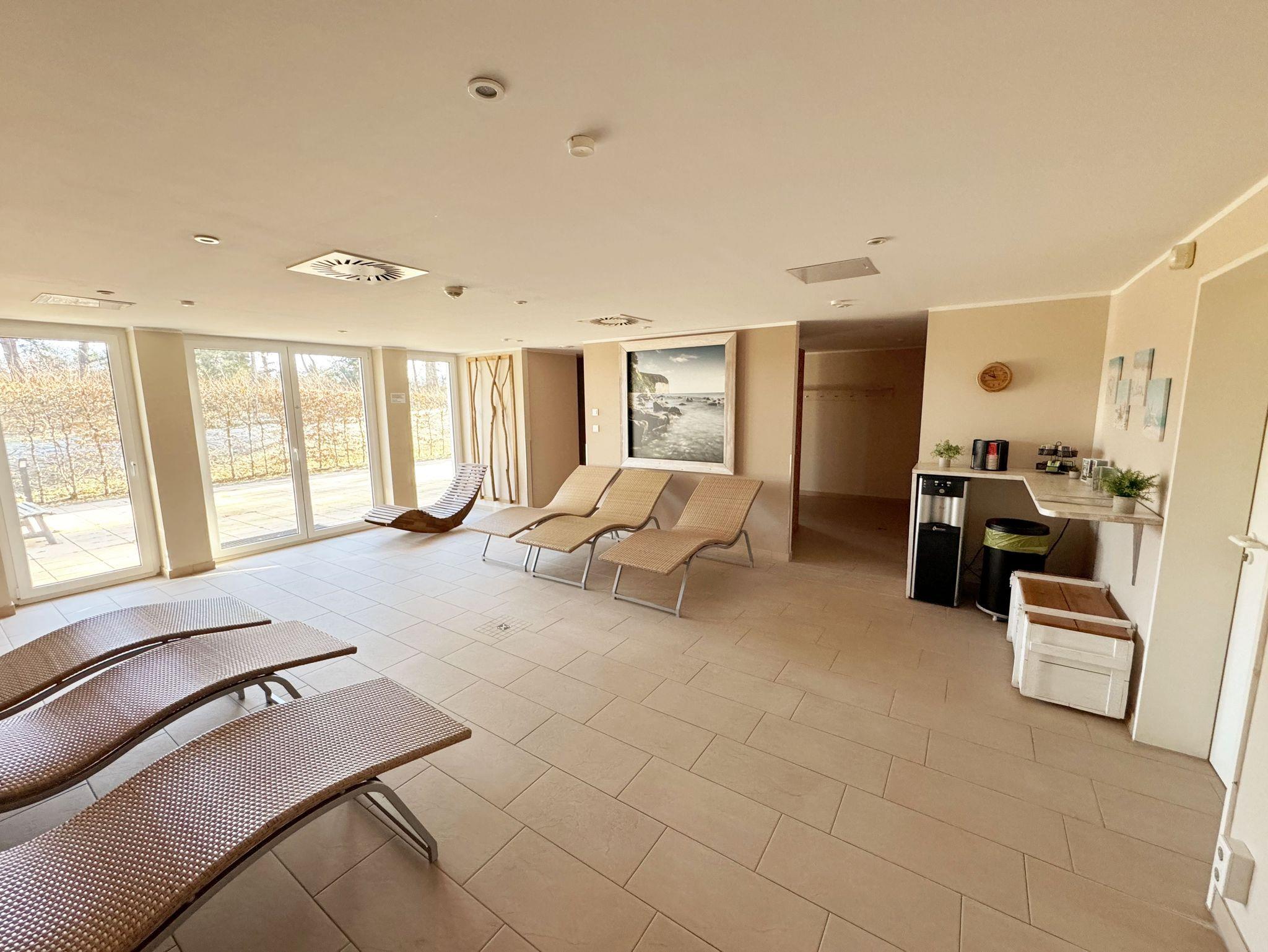 Die Ferienwohnungen verfügen über einen hohen Komfort und lassen Ihren Urlaubstraum wahr werden. Im Haupthaus befindet sich ein Wellnessbereich mit Innenpool, Sauna und Ruheraum (inklusive), der zur Entspannung einlädt. Eine hauseigene Tiefgarage sorgt dafür, dass Ihr PKW sicher untergebracht ist. Cafés und Restaurants laden in der Anlage zum Verweilen ein. Ein weiteres Highlight ist der Müther Schalenbau (Restaurant Inselparadies Baabe), welches saniert, restauriert und in die Meeresblickanlage liebevoll integriert wurde. Von hier aus haben Sie einen fantastischen Blick auf die weite Ostsee. Die Wohnung (A 3.19) befindet sich im Haupthaus A im 2. Obergeschoss und verfügt über einen Südbalkon mit Blick Richtung Kurpark und mit eingeschränkten Meerblick. Die Wohnung (A.3.15) befindet sich ebenfalls im Haupthaus A im 2. Obergeschoss und verfügt über einen Balkon mit Blick Richtung Westen ins Grüne.