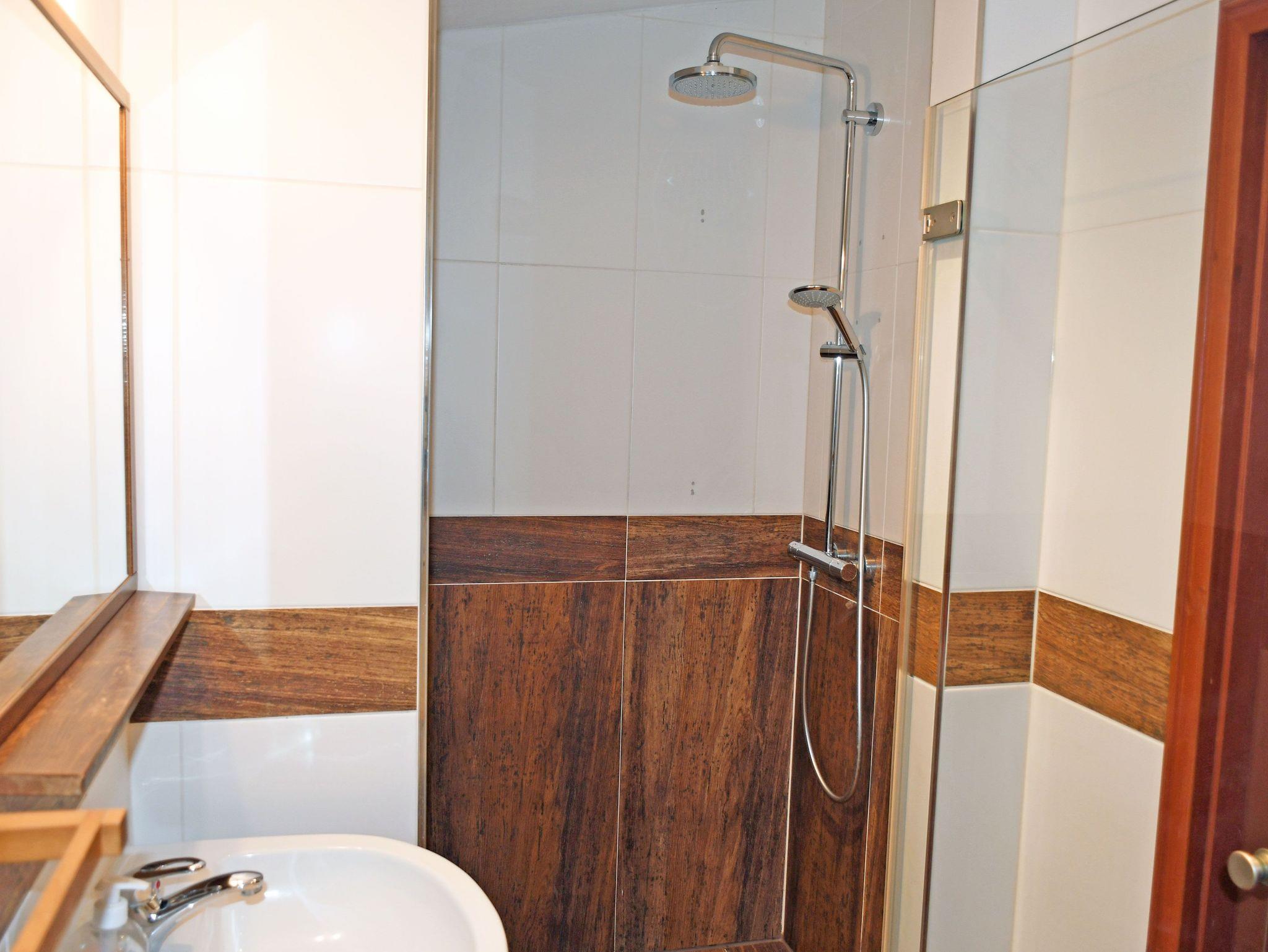 Die Küchenzeile im Wohnbereich ist mit einem Cerankochfeld, Geschirrspüler, Wasserkocher, Kaffeemaschine, Toaster und Backofen ausgestattet. Das sehr schöne und großzügige Bad bietet einen Waschtisch, WC und eine spezielle Wellnessdusche.