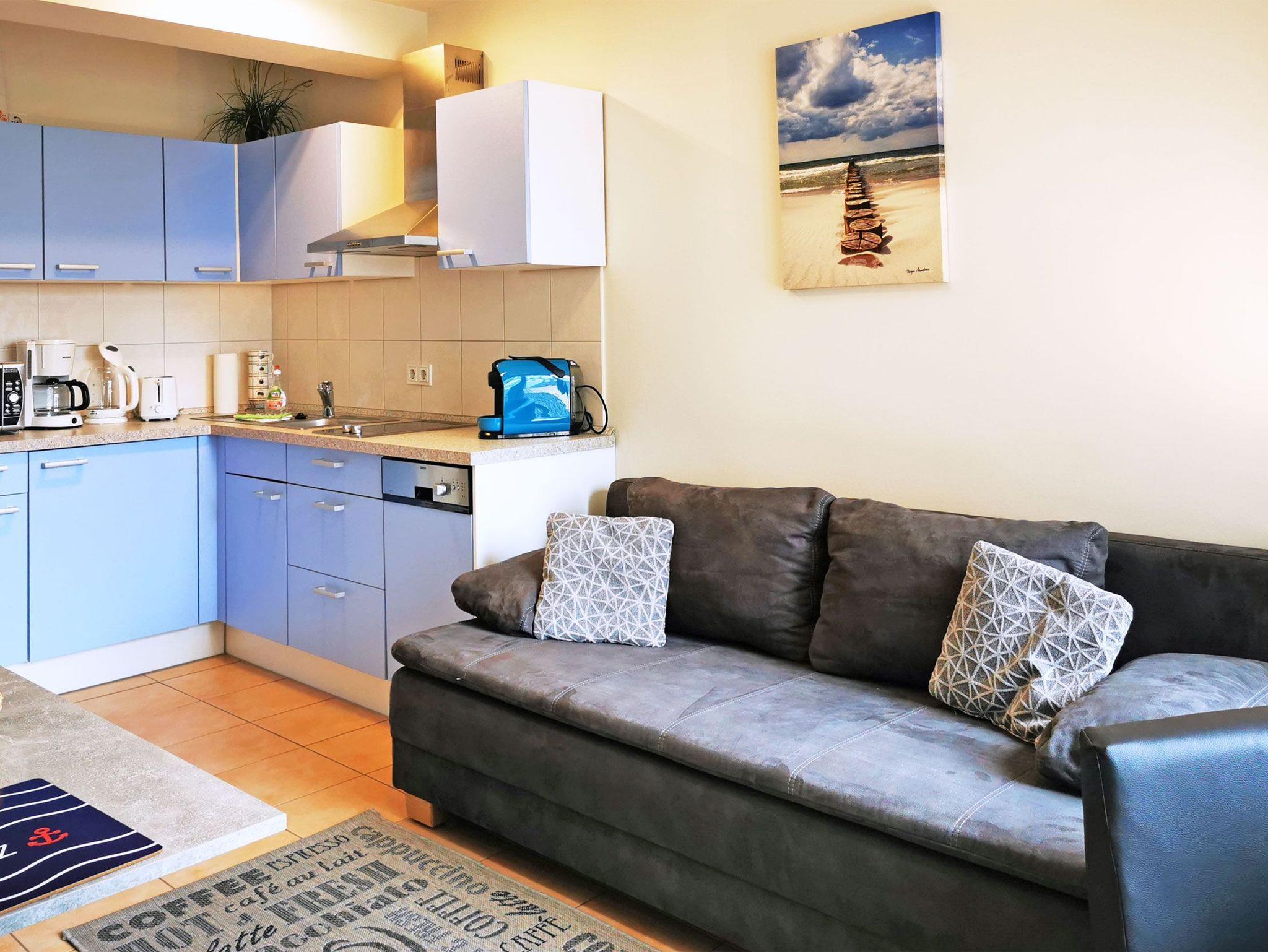 Die gemütliche Ferienwohnung für 3 Personen mit WLAN und 2 Flachbildfernsehern liegt im Haus Meeresblick, eine 2013 fertiggestellte Ferienresidenz mit einem direkten Zugang zum Strand. Das Haus ist mit einem Fahrstuhl, einer Tiefgarage, einem großen Wellnessbereich mit Schwimmbad (ca. 8,00 m x 4,00 m - 1,35 m tief), zwei Saunen (eine finnische Sauna/eine Bio-Sauna) und einem Massagebereich ausgestattet. Der Wellnessbereich ist ganzjährig geöffnet. Somit können Sie sich zu jeder Jahreszeit im Haus Meeresblick erholen.