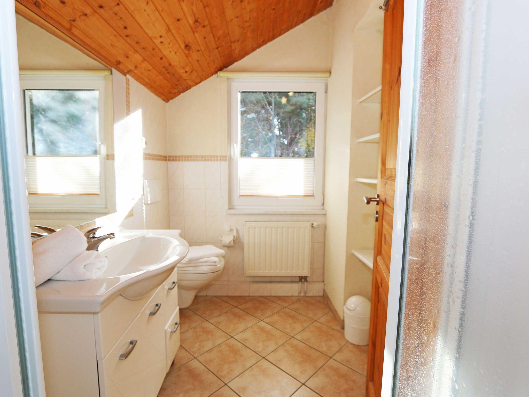 Herzlich Willkommen in unserem Strandhaus im schönen Ostseebad Baabe auf Rügen! Unser 70 m² großes alleinstehendes Standhaus im Schwedenstil (Nichtraucher, 2 bis 6 Erwachsene + 1 Kleinkind bis 3 Jahre im (Kinderreisebett) liegt sehr nah am Strand, direkt im Dünenwald von Baabe. Das Holzhaus ist gemütlich mit viel hellem Naturholz eingerichtet und gleichzeitig modern, komfortabel und voll ausgestattet. Dazu zählen wir sowohl die moderne Komfortküche mit Ceran-Herd, Backofen, Mikrowelle, Geschirrspüler, Kühlschrank mit Eisfach, Getränkekühlschrank, Kaffeemaschine, Wasserkocher, Toaster, Reinigungsutensilien und mehr als auch den Wohnkomfort einer Fußbodenheizung, der LCD-Fernseher in HD-Qualität, Satelliten-Anschluss für hohe Programmvielfalt und ein DVD-Player mit Radio. Ein gemütlicher großer Wohnbereich und Kamin (Kaminholz inklusive) mit Sichtfenster rundet unsere Einrichtung ab. Und damit Sie Ihren Urlaub bei uns ganz entspannt genießen können, sind alle Kosten für Strom, Wasser und Heizung sowie das WLAN bereits im Preis inklusive! Das Haus verfügt über insgesamt drei Schlafzimmer im Obergeschoss. Zwei Schlafzimmer sind mit Doppelbett (2 x Boxspringbetten je 0,80 m x 2,00 m zusammengestellt) und Kleiderschrank ausgestattet und bieten ausreichend Platz für 1 zusätzliches Kinderreisebett (inklusive Matratze). Das dritte Schlafzimmer verfügt über zwei Boxspringbetten (je 0,80 m x 2,00 m) ? die man auch zusammenstellen kann und Kleiderschrank. Im Erd- sowie im Obergeschoss befinden sich je ein Tageslicht-Bad mit großem Spiegel, WC, Dusche und Haartrockner. Am Wohn-/ Essbereich schließt sich die überdachte Terrasse (Süd/Ost) mit Tisch, Stühlen und Gartengrill an. Ein Waschhaus mit Waschmaschine steht Ihnen zur Nutzung (inklusive) zur Verfügung. Ein eigener PKW-Stellplatz Nr. 39b gehört zum Strandhaus. Haben Sie ein Haustier, das Sie mitbringen möchten? Gerne ist dies gegen eine Gebühr möglich. In unserem Backshop selbst erhalten Sie In der Saison täglich frisch: Brötchen, Lebensmittel, Tageszeitungen, Frühstück, Kaffee & Kuchen und mehr (Schließzeiten immer vom 07.01. - 1 Woche vor Ostern). Die Erstausstattung eines Wäschepaketes (komplette Bettwäsche, 1 Duschhandtuch, 2 kleine Handtücher) können Sie bis 14 Tage vor Anreise gegen einen Aufpreis dazu buchen oder durch eigene ergänzen. Ab 2 gebuchten Paketen erhalten Sie einmalig 1 Geschirrhandtuch und 1 Duschvorleger hinzu. Wir freuen uns auf Ihren Besuch!