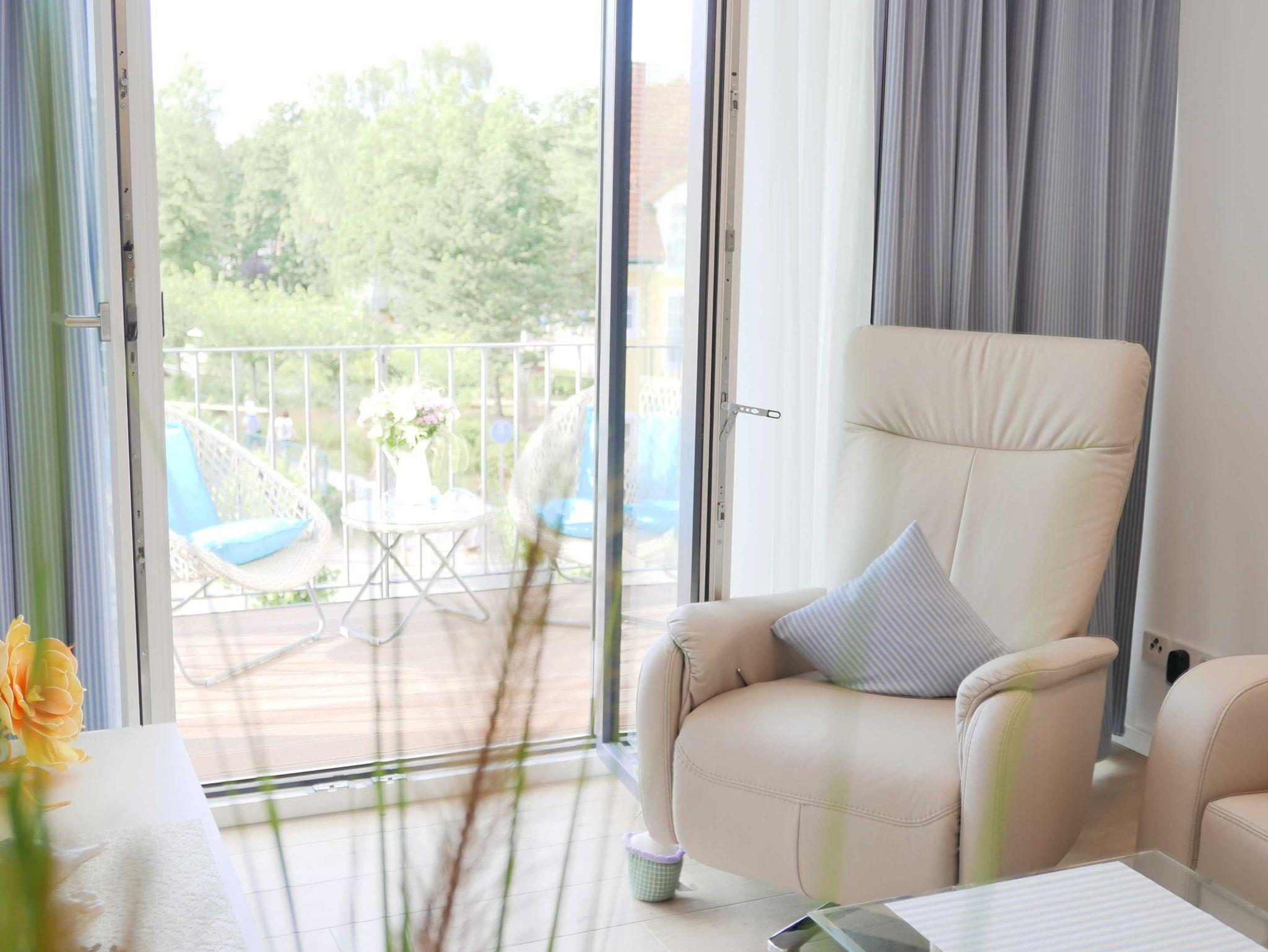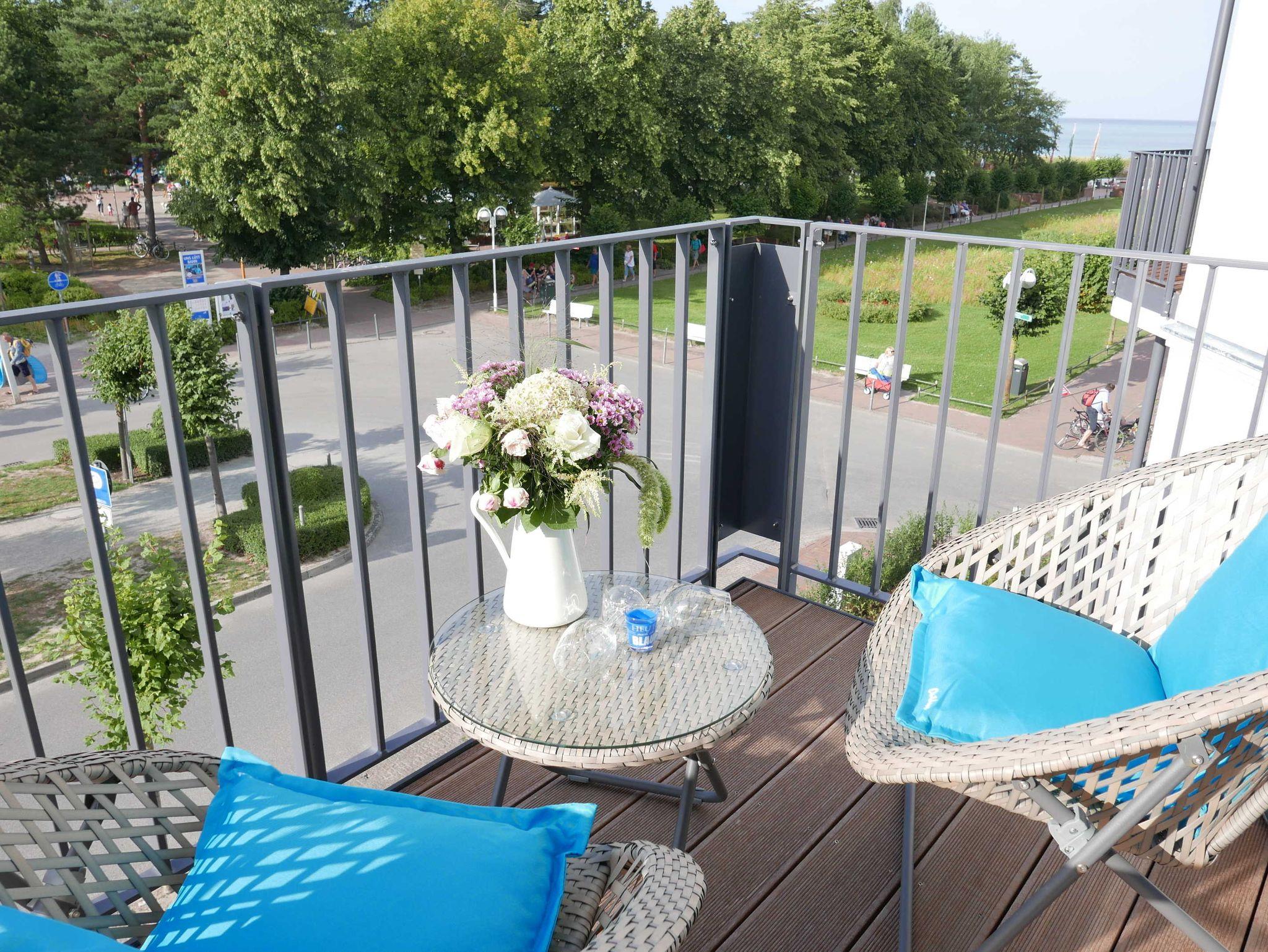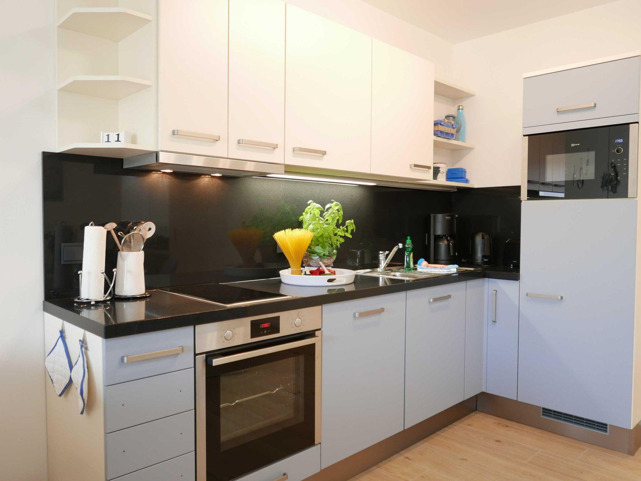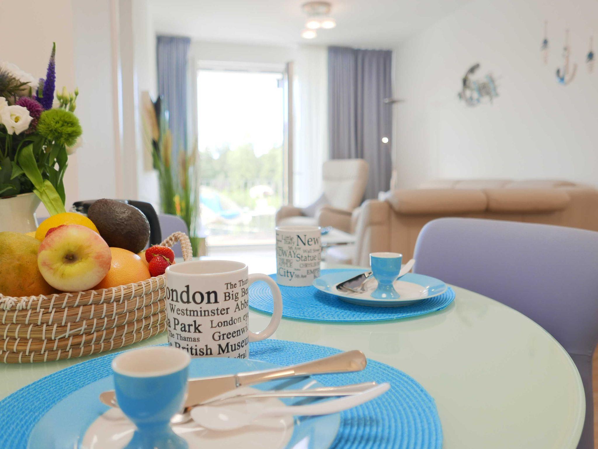 Moderne 2 Zimmer Ferienwohnung mit seitlichen Meerblick vom Balkon für bis zu 3 Personen. WLAN vorhanden. Die Blaue Lagune ist exklusiv eingerichtet. Im Wohnbereich befindet sich die integrierte Küchenzeile. Diese bietet allen Komfort mit Geschirrspülmaschine, Backofen, Induktionsherd sowie viele weitere Details. Bodentiefe Fenster geben ein schönes Ambiente und die Fußbodenheizung hält eine gemütliche Wärme vor.