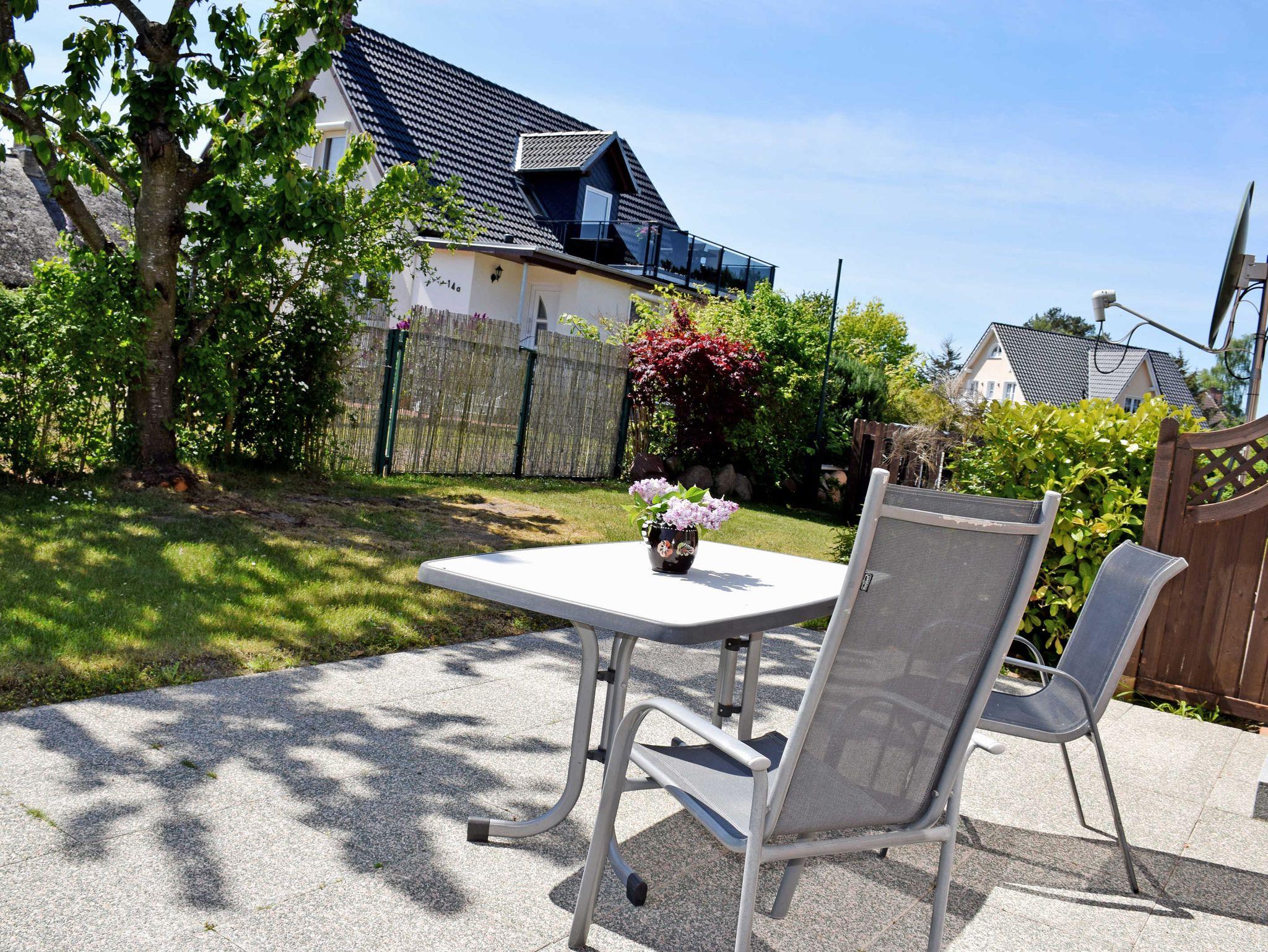 Gäste in dieser Ferienwohnung können am Haus eine Wiese mit Terrasse und Gartenmöbeln sowie einer Grillmöglichkeit nutzen.