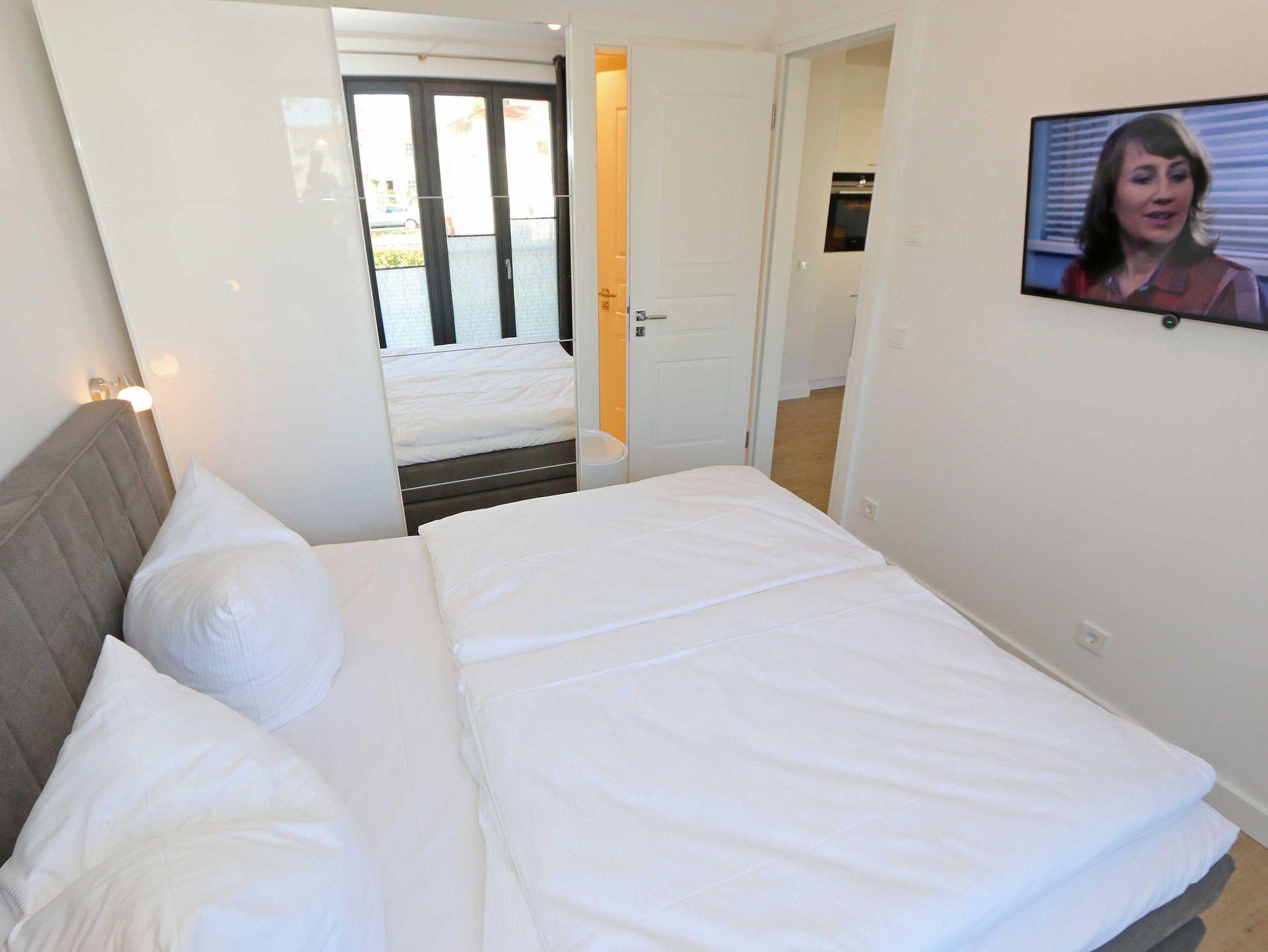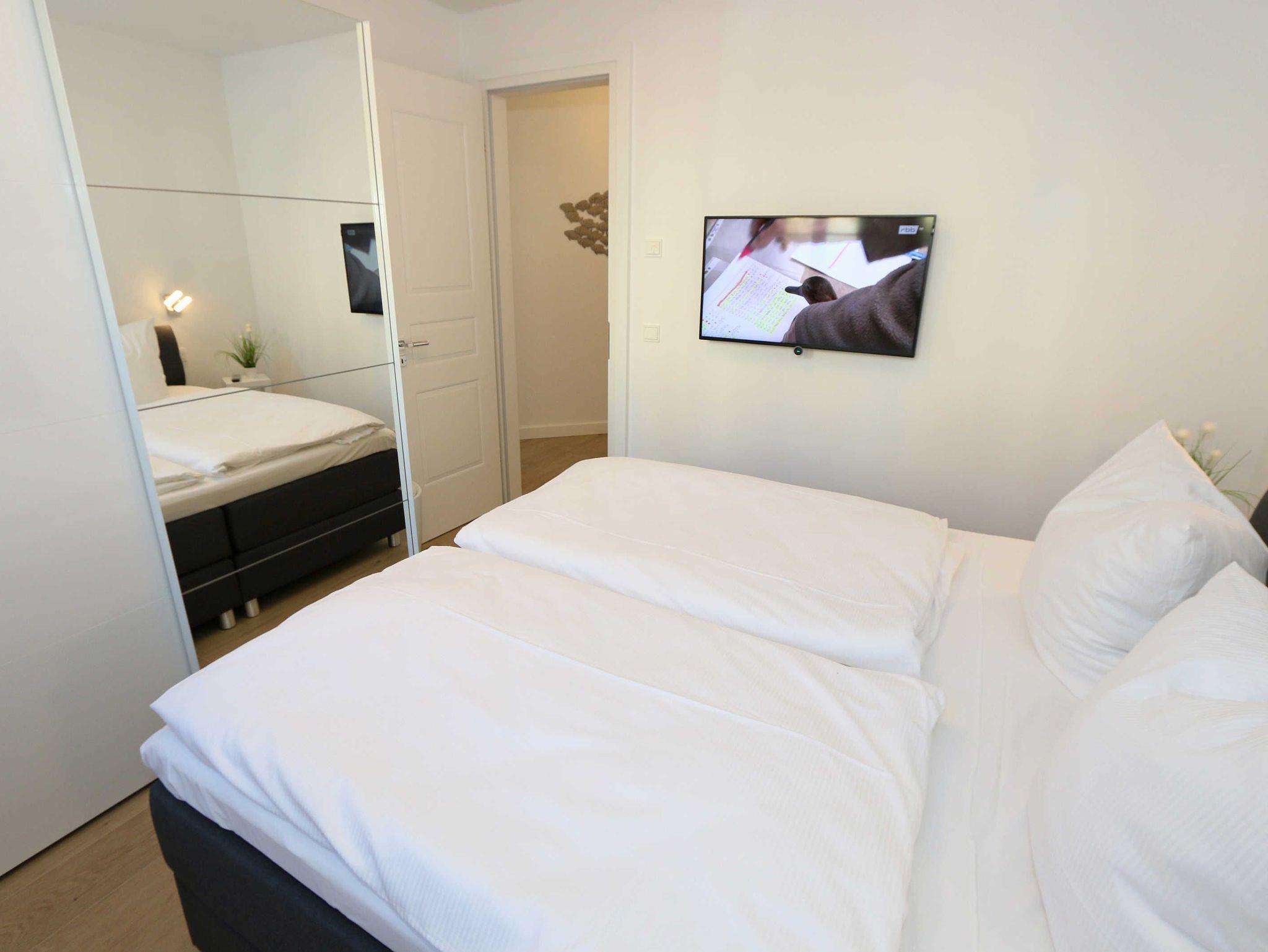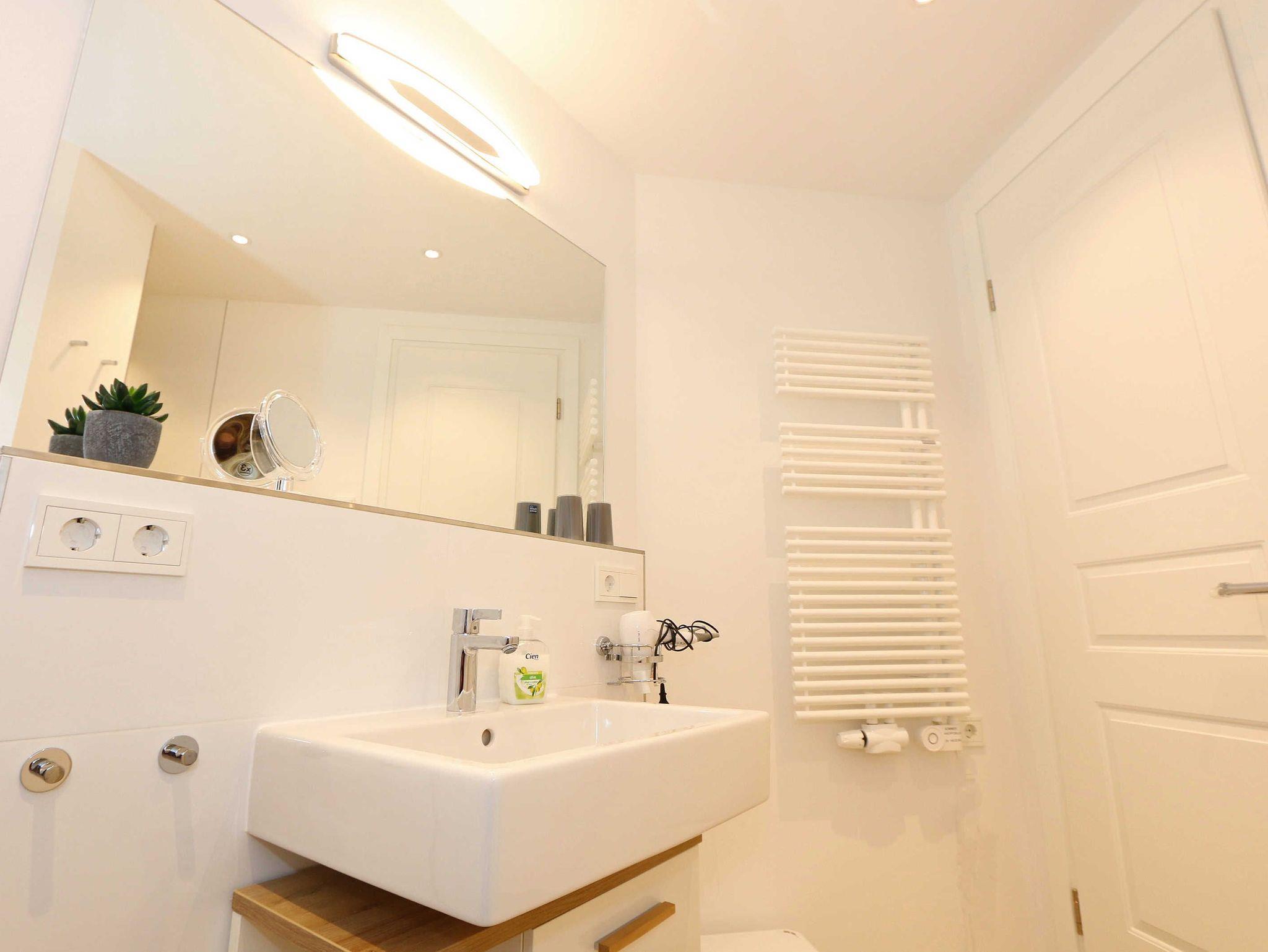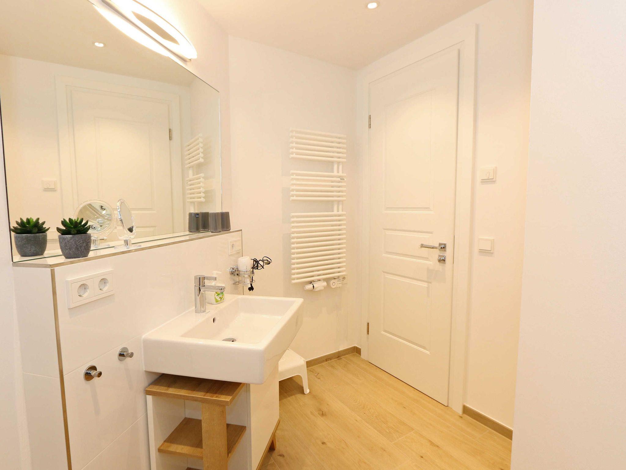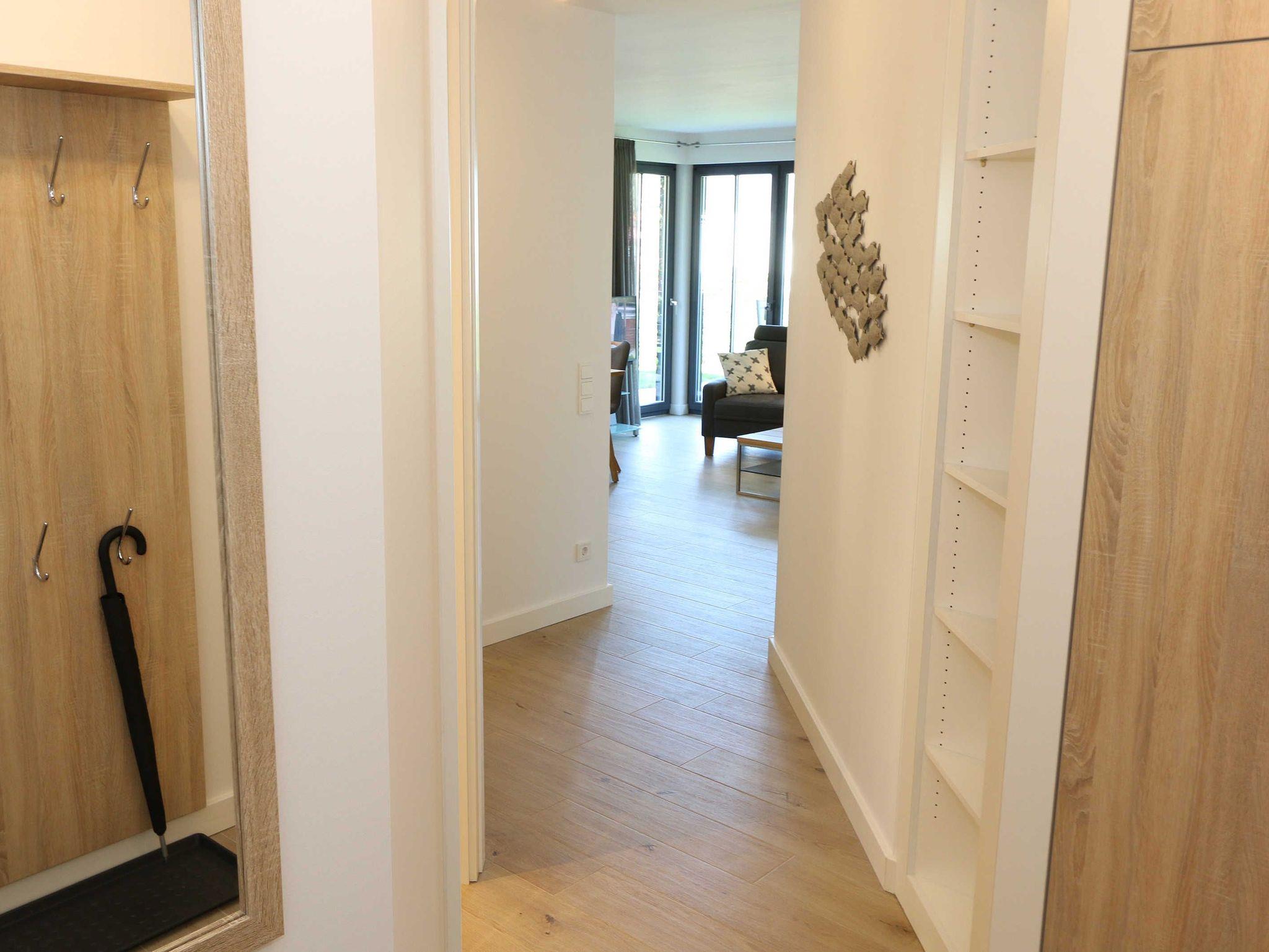 Die 68 m² große Nichtraucherwohnung ?Küstensegler? befindet sich im Erdgeschoss und wurde liebevoll für Sie ausgestattet. Sie bietet eine sehr schöne Raumaufteilung und hochwertige Ausstattung für einen erholsamen Urlaub für max. 2 bis 4 Erwachsenen. In der kalten Jahreszeit verteilt sich über die Fußbodenheizung eine wohlige Wärme in der Wohnung. Im freundlichen Wohn-/Esszimmer können Sie es sich auf der Couch mit Couchtisch, Leselampe und Sessel bequem machen. Ein 43 Zoll-Ultra HD Smart-TV, Blu-Ray Player und ein DAB-Radio mit CD-Player, Bluetooth und USB-Anschluss sorgen für Ihre Unterhaltung. Ein WLAN-Zugang steht selbstverständlich zur kostenfreien Nutzung für Sie bereit. Aber auch eine kleine Auswahl an Gesellschaftsspielen und Bücher steht Ihnen zur Verfügung. Der Esstisch für 4 Personen befindet sich neben der komfortabel gestalteten und umfangreich ausgestatteten Küchenzeile und lädt zum Verweilen ein. Ein Geschirrspüler, ein 4 Zonen-Ceranfeld, ein Backofen, ein Kühlschrank mit Gefrierfach, eine Mikrowelle, eine Kaffeemaschine mit Thermoskanne, eine Tassimo-Kapselmaschine, ein Toaster, ein Wasserkocher sowie ein Eierkocher komplettieren diese. Natürlich sind auch viele große und kleine Küchenutensilien vorhanden. Vom Wohnbereich gelangen Sie auf die überdachte und bestuhlte Terrasse (Osten) der Ihnen einen Blick auf den kleinen Kurpark von Baabe ermöglicht. Genießen Sie Ihr Frühstück in der Morgensonne oder ein gemütliches Glas Wein beim letzten Sonnenstrahl des Tages. Zudem kann ein eigener kleiner Gartenanteil (mit Abgrenzung durch Hecke/Zaun) von Ihnen genutzt werden. Beide Schlafzimmer sind mit bequemen Boxspringbetten (je 1,80m x 2,00m, mit durchgehende Topper, ein Schlafzimmer Härtegrad H2, das zweite Schlafzimmer Härtegrad H3), einem Nachttisch und Kleiderschrank für Ihre Urlaubsgarderobe ausgestattet. In beiden Schlafzimmern stehen Ihnen Full HD Smart-TV zur Verfügung. Das Aufstellen eines Reisebettes ist in den Schlafzimmern nicht möglich. Eines der beiden Schlafzimmer verfügt über ein eigenes Duschbad mit ebenerdiger Regendusche, Waschtisch, Ablage, WC, elektrischen Handtuchtrockner und einen Fön. Ein weiteres Duschbad mit ebenerdiger Regendusche, Waschbecken, Ablage, WC, elektrischem Handtuchtrockner, Kosmetikspiegel und Fön ist vom Flur erreichbar. Für einen erholsamen Schlaf sorgen die Außenjalousien, die in der ganzen Wohnung durchgängig vorhanden sind. In beiden Schlafräumen sowie im Essbereich befinden sich Insektenschutzgitter in einigen Fenstern. Ein Wäscheständer, ein Bügelbrett, ein Bügeleisen sowie ein Staubsauger stehen bei Bedarf zur Nutzung bereit. Über eine beheizbare Rampe erreichen Sie mit Ihrem PKW die Tiefgarage. Von Ihrem Tiefgaragenstellplatz (Nr.01, Einfahrtshöhe 2,00m) gelangen Sie bequem mit dem Aufzug zu Ihrer Ferienwohnung. Im Haus können Sie eine Waschmaschine und einen Trockner mit Münzautomaten nutzen. Eine münzbetriebene Sauna mit Duschbereich sowie kleinem Ruheraum befinden sich ebenfalls im Haus und laden zur Entspannung ein. Ihre mitgebrachten oder im Ort geliehenen Fahrräder können Sie im schön angelegten und eingezäunten Außenbereich im dafür vorgesehen Fahrradhaus (mit Steckdosen für E-Bikes) abstellen. Haustiere sind nicht erlaubt. Die Erstausstattung eines Wäschepaketes (komplette Bettwäsche, 1 Duschhandtuch, 2 kleine Handtücher) können Sie bis 14 Tage vor Anreise gegen einen Aufpreis dazu buchen oder durch eigene ergänzen. Ab 2 gebuchten Paketen erhalten Sie einmalig 1 Geschirrhandtuch und 1 Duschvorleger hinzu.