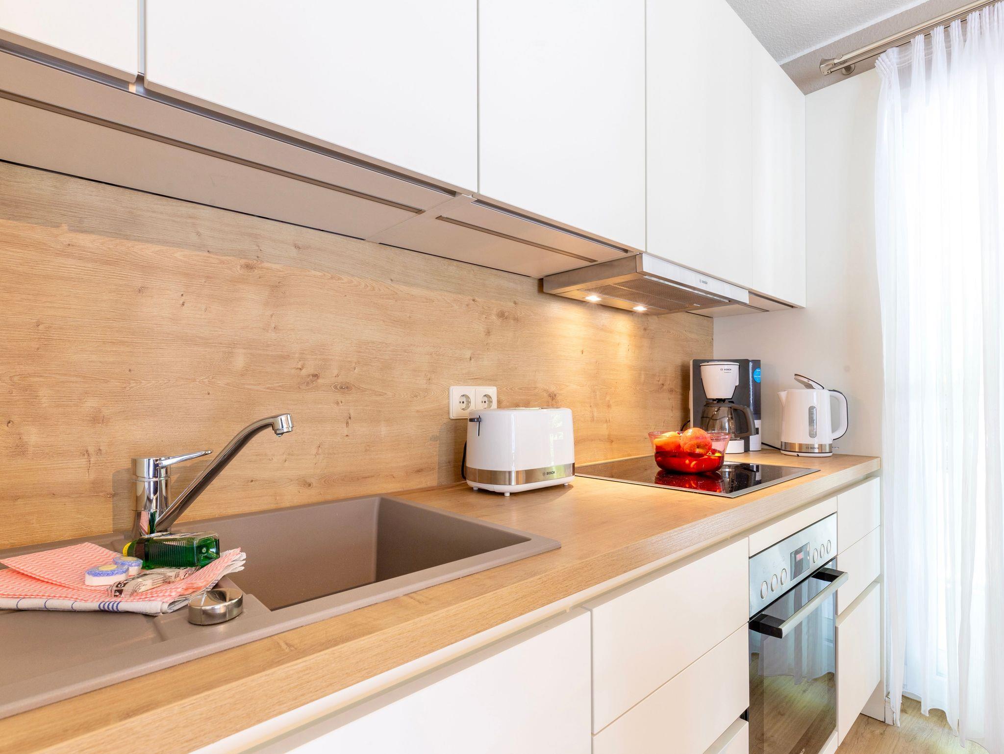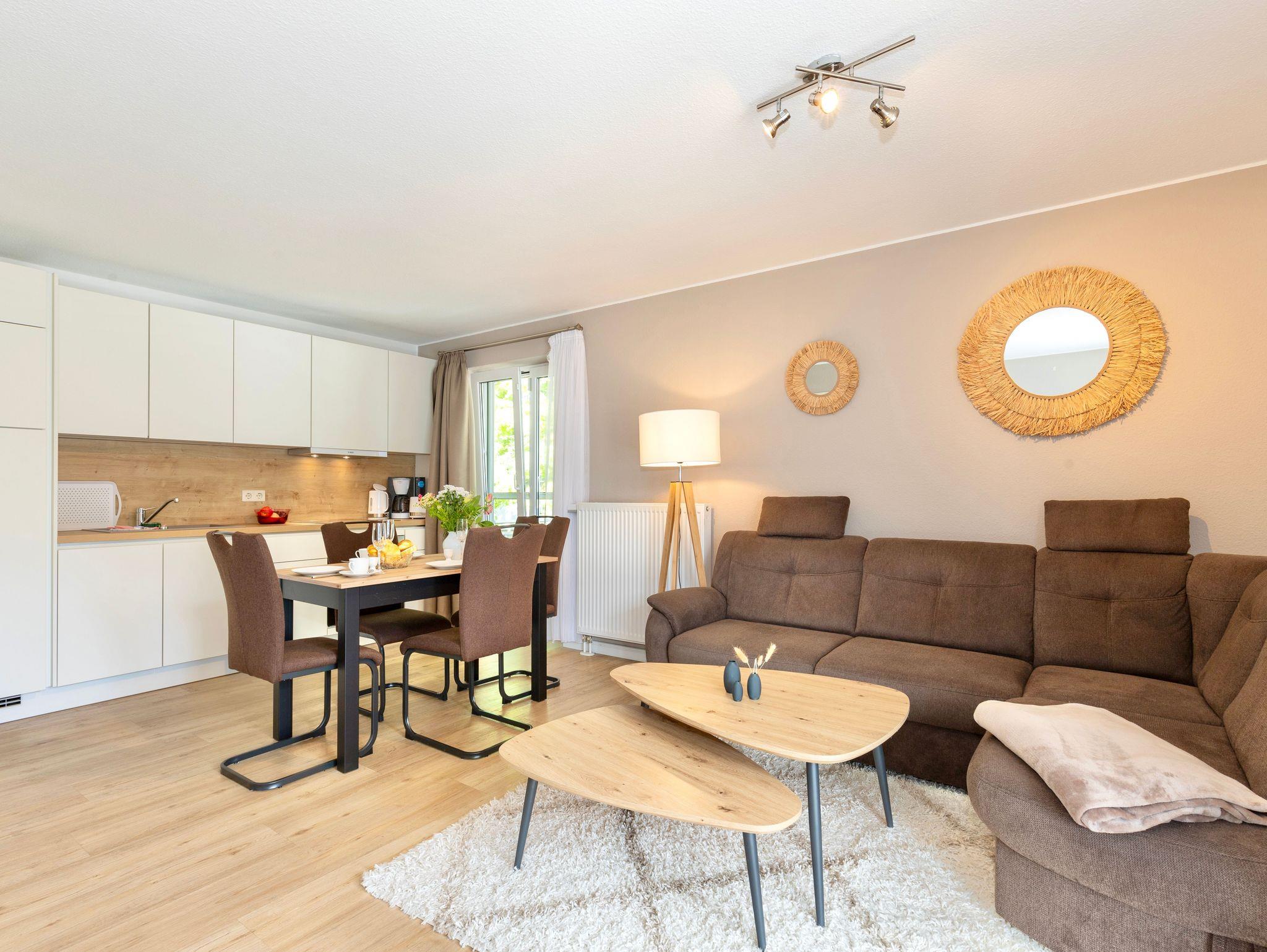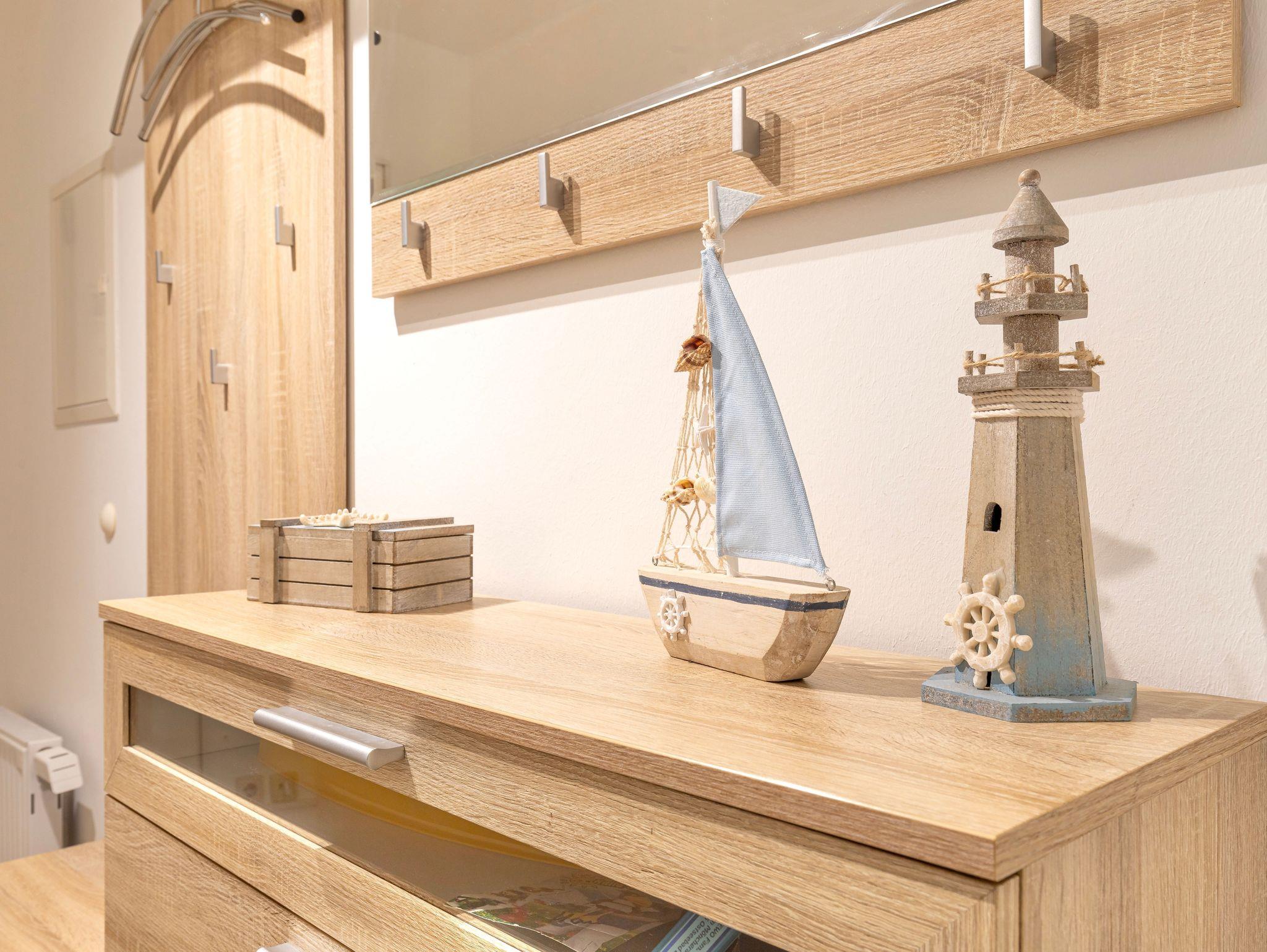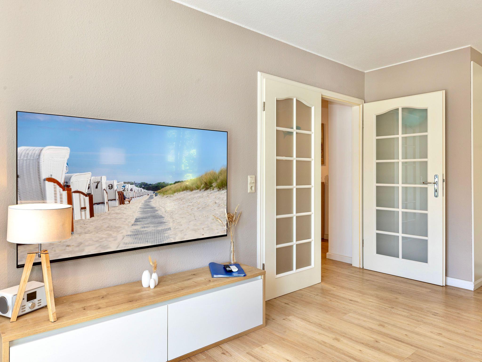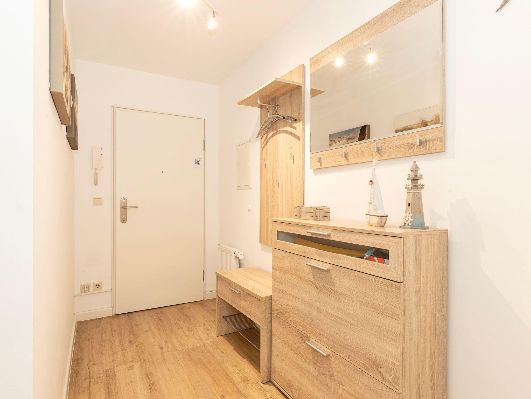 Ihre Nichtraucherferienwohnung ist mit viel Liebe zum Detail ausgestattet und eingerichtet worden. Sie wohnen in einer ca. 47 m² 2-Zimmer Wohnung + 27 m² für beide Balkone, die ideal für 2 Personen bzw. eine 3. Person auf der Schlafcouch ausgelegt ist. Die Wohnung befindet sich in der 1. Etage und ist per Fahrstuhl bequem zu erreichen. In der Wohnung finden Sie einen kombinierten Wohn/Koch- und Essbereich. Die integrierte Küchenzeile lässt mit einer Mikrowelle, Backofen, Ceranfeld, Spülmaschine, Kühlschrank mit Gefrierfach, Wasserkocher, Toaster, Kaffeemaschine, Senseo Padmaschine und anderen praktischen Helfern keine kulinarischen Wünsche offen. Im Wohnbereich sind weiterhin ein Esstisch, eine gemütliche Couch (Schlafmöglichkeit 3. Person/ 1,20m x 1,90m) vorhanden. Abgerundet wird der Wohnbereich mit einem Smart-TV, DAB-Radio, DVD-Player und einer Musikanlage. Ein WLAN-Zugang steht Ihnen inklusive zur Verfügung. Der Ostbalkon ist vom Wohn/Essbereich, sowie der Südbalkon vom Wohnbereich und vom Schlafzimmer begehbar. Um Sie vor Mücken zu schützen, sind die Balkontüren des Ostbalkons, sowie des Südbalkons vom Schlafzimmer mit einer Insektenschutztür versehen. Das Schlafzimmer ist mit einem Doppelbett (1,80m x 2,00m), Nachttischkonsolen, Flachbild-TV, Radio und einem Kleiderschrank ausgestattet. Insektenschutzgitter sorgen für einen ruhigen Schlaf. Das Bad verfügt über eine Dusche mit flachem Einstieg, Waschbecken, Kosmetikspiegel, Fön und WC. Ein Bügelbrett, ein Bügeleisen sowie Reinigungsutensilien stehen Ihnen zusätzlich zur Verfügung. Ein eigener PKW-Stellplatz (Nr. 10, Einfahrtshöhe 1,90m) befindet sich in der Tiefgarage des Hauses. Ihre Fahrräder können Sie im eigenen abschließbaren Keller abstellen. 2 Fahrräder stehen Ihnen zur Nutzung zur Verfügung, sind aber nicht Bestandteil der Buchung, da durch höhere Gewalt nicht immer die Nutzung garantiert werden kann. Haustiere sind nicht erlaubt. Die Erstausstattung eines Wäschepaketes (komplette Bettwäsche, 1 Duschhandtuch, 1 kleines Handtuch) können Sie bis 14 Tage vor Anreise gegen einen Aufpreis dazu buchen oder durch eigene ergänzen. Ab 2 gebuchten Paketen erhalten Sie einmalig 1 Geschirrhandtuch und 1 Duschvorleger hinzu.