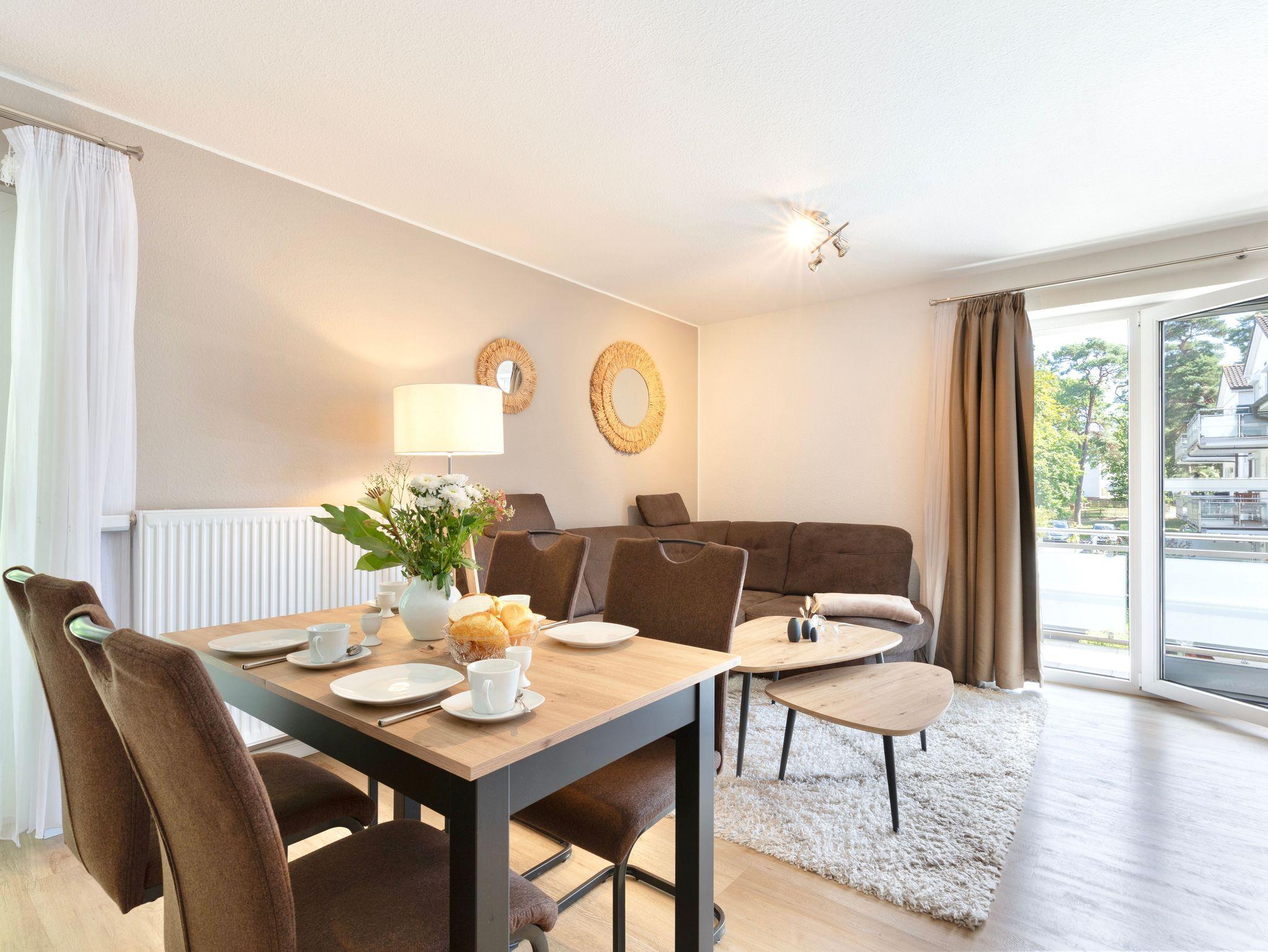 Das Appartementhaus mit seinen 18 Ferienwohnungen befindet sich am Ortseingang von Baabe, aber dennoch ruhig und zentral. Die Entfernung zur Bushaltestelle, Bahnhof und Supermarkt beträgt ca. 100 m. Der feine Ostseestrand ist gut in 5 Minuten zu erreichen. Ein Fahrradverleih befindet sich in der Nähe der Ferienwohnung. Die Nichtraucherferienwohnung Helene (für 2 bis 3 Personen) befindet sich in der 1. Etage und ist bequem per Fahrstuhl zu erreichen. Ein separater Ost- und Südbalkon laden bei Sonnenschein zum Verweilen ein, oder ermöglichen es Ihnen beim Grillen (Elektrogrill) den Tag ausklingen zu lassen. Ein abschließbarer Fahrradraum, sowie ein eigener Tiefgaragenstellplatz gehören zur Wohnung.