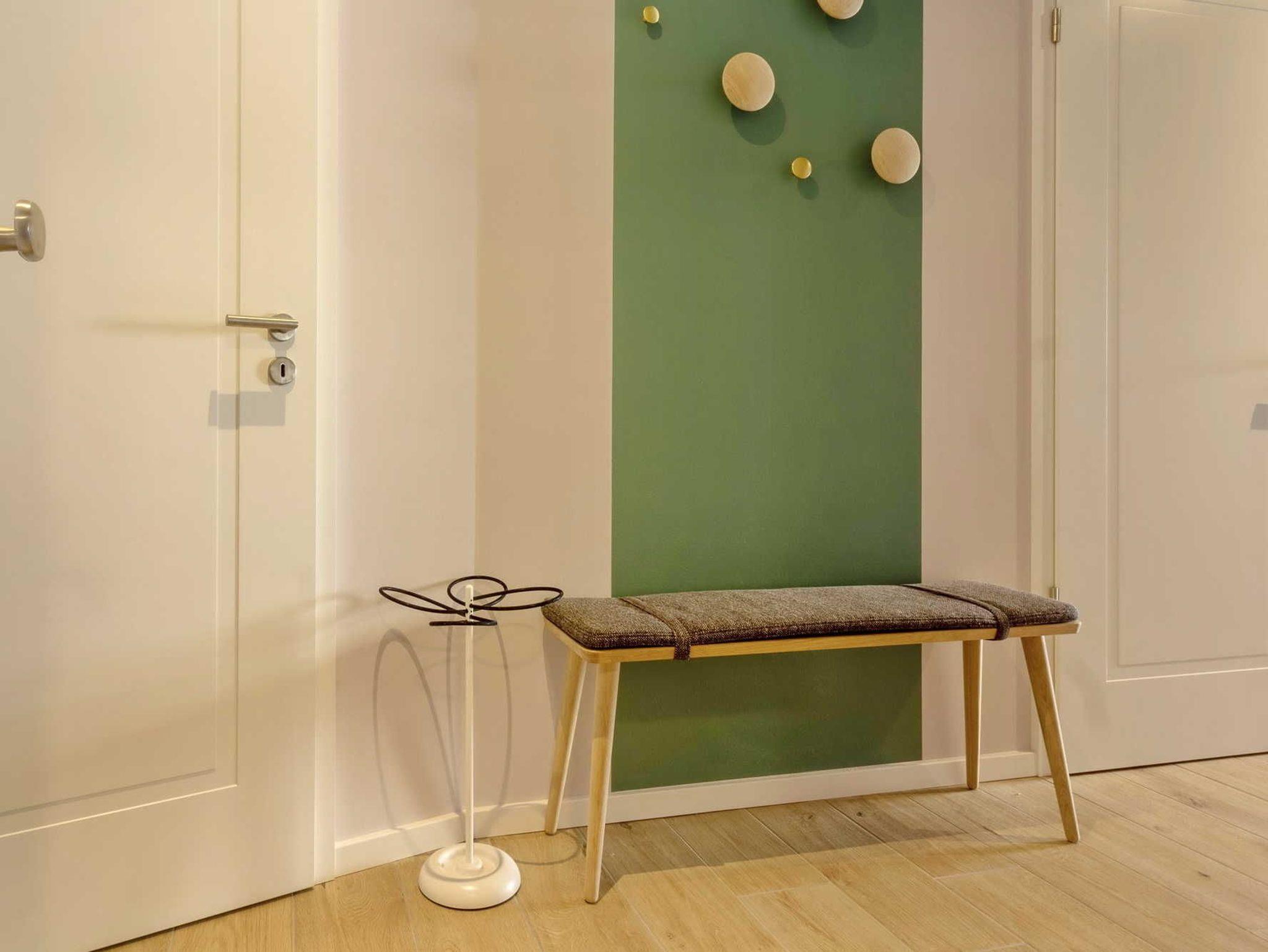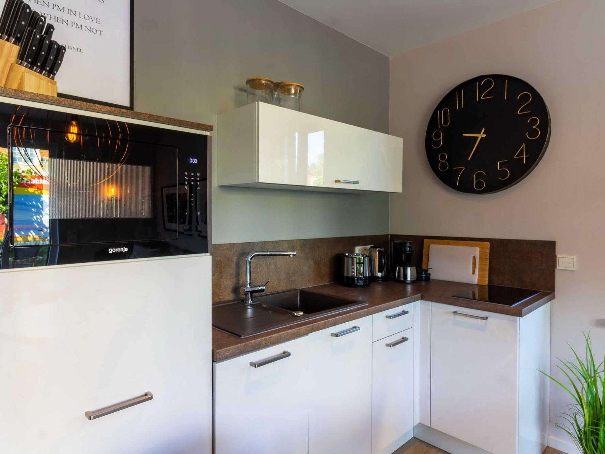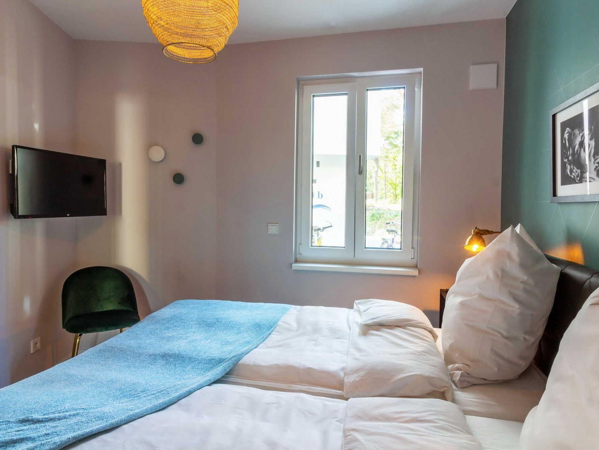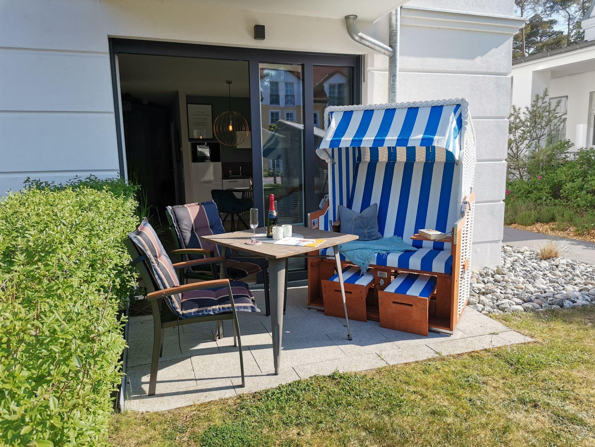 Moderne 2-Zimmer-Ferienwohnung für 2 Personen mit hochwertiger Designerausstattung direkt am Baaber Strand. Die exklusive Anlage ist mit einem Fahrstuhl, einer Tiefgarage, einem Fahrradabstellplatz, einer Sauna (gegen Gebühr) und einem Waschraum mit Trockner und Waschmaschine (gegen Gebühr) ausgestattet.