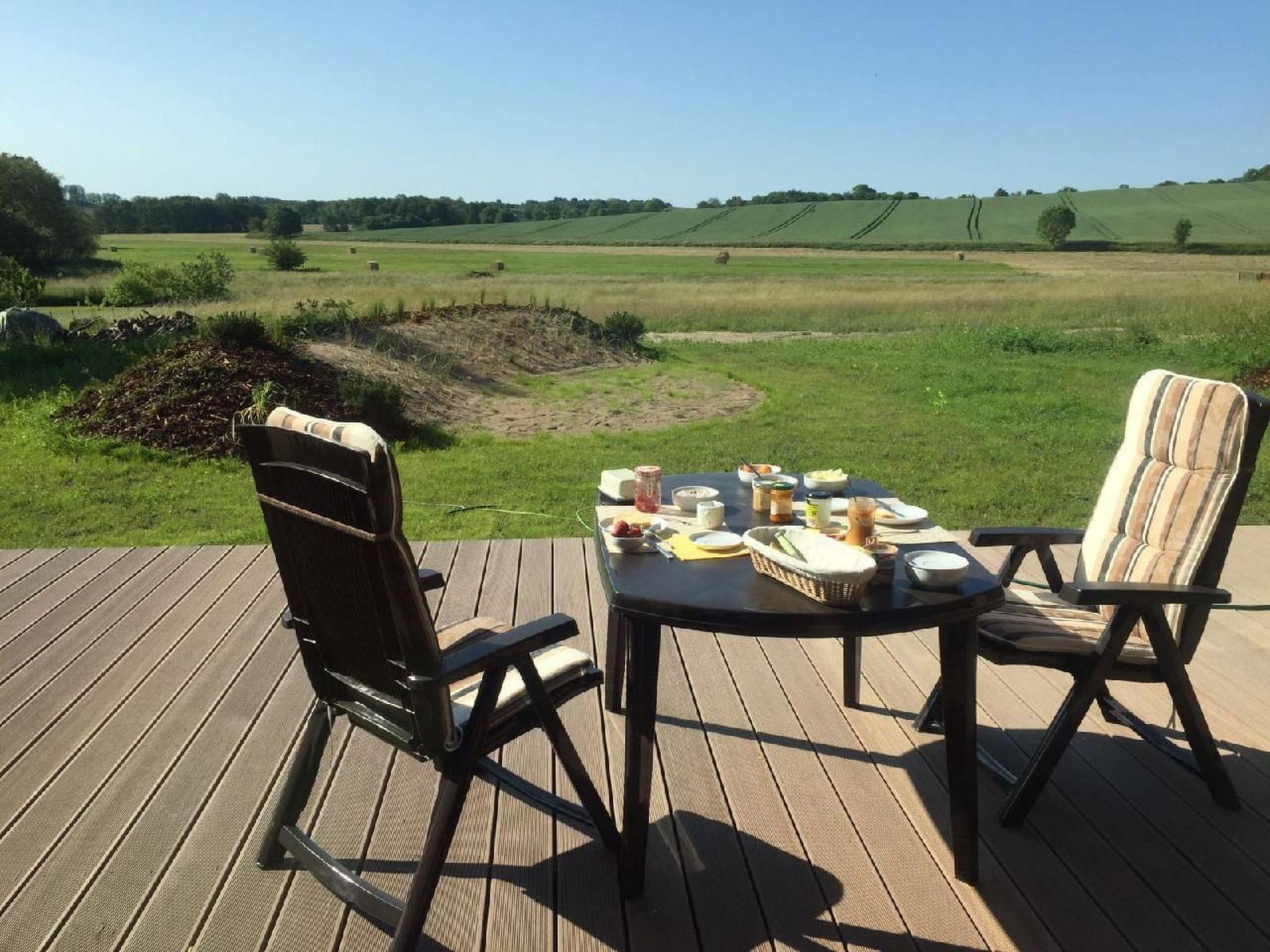 The Landhaus am Rebstock in Lacken Granitz is divided into 3 separate flats. The holiday flats are located in a charming landscape, far away from the tourist crowds but still central to the seaside resorts of Binz, Sellin and Baabe. From all flats you have a magnificent panoramic view of the vineyard, meadows and fields. The holiday flats are modern and lovingly furnished. In the fully equipped, open-plan kitchens you will find everything your holiday heart desires. Whether ceramic hob, oven, microwave or various other utensils, you won't miss a thing here. The living rooms are very stylishly furnished and equipped with a comfortable sofa bed. Each flat has a stove, which will delight you in the colder months of the year