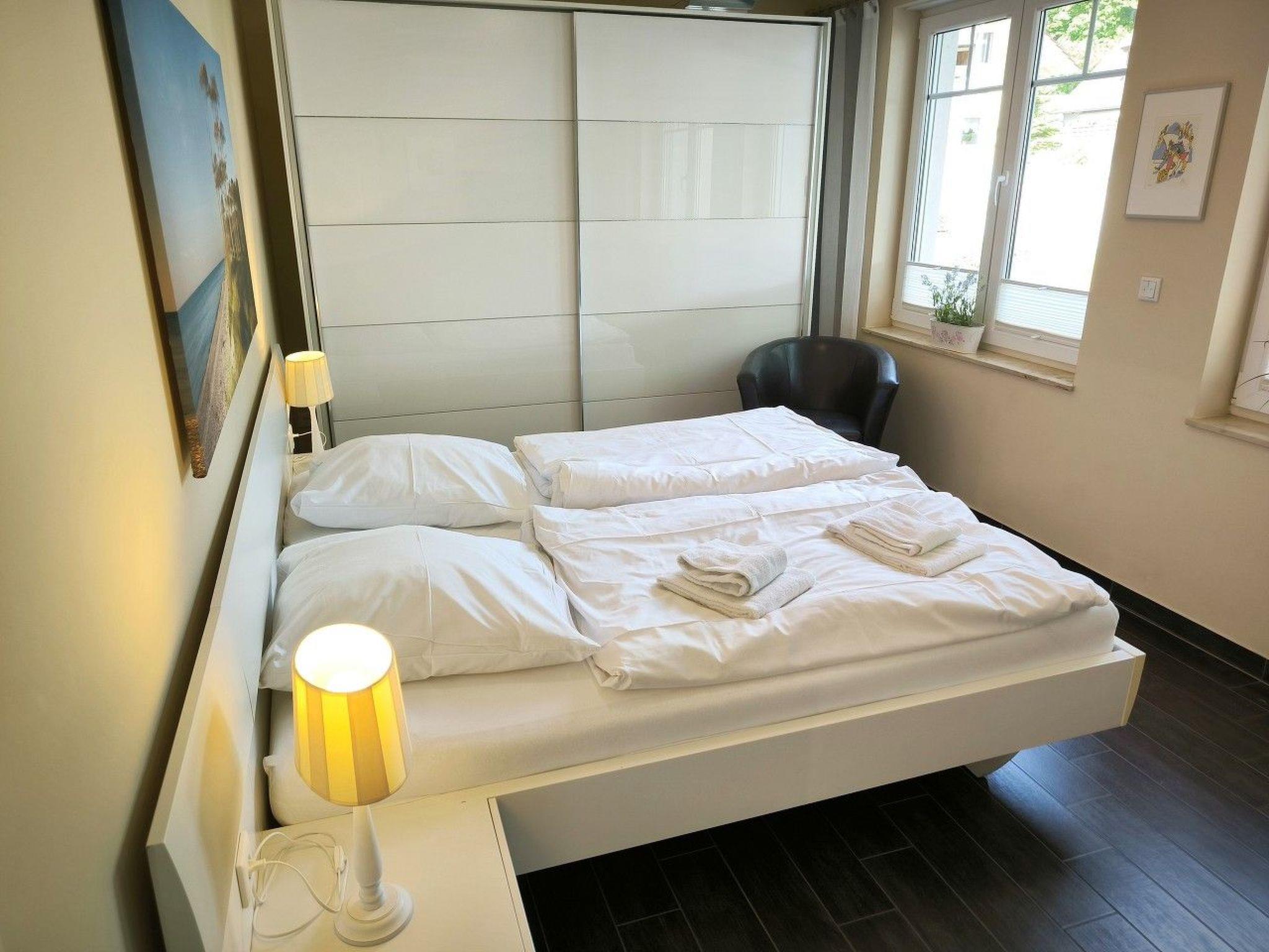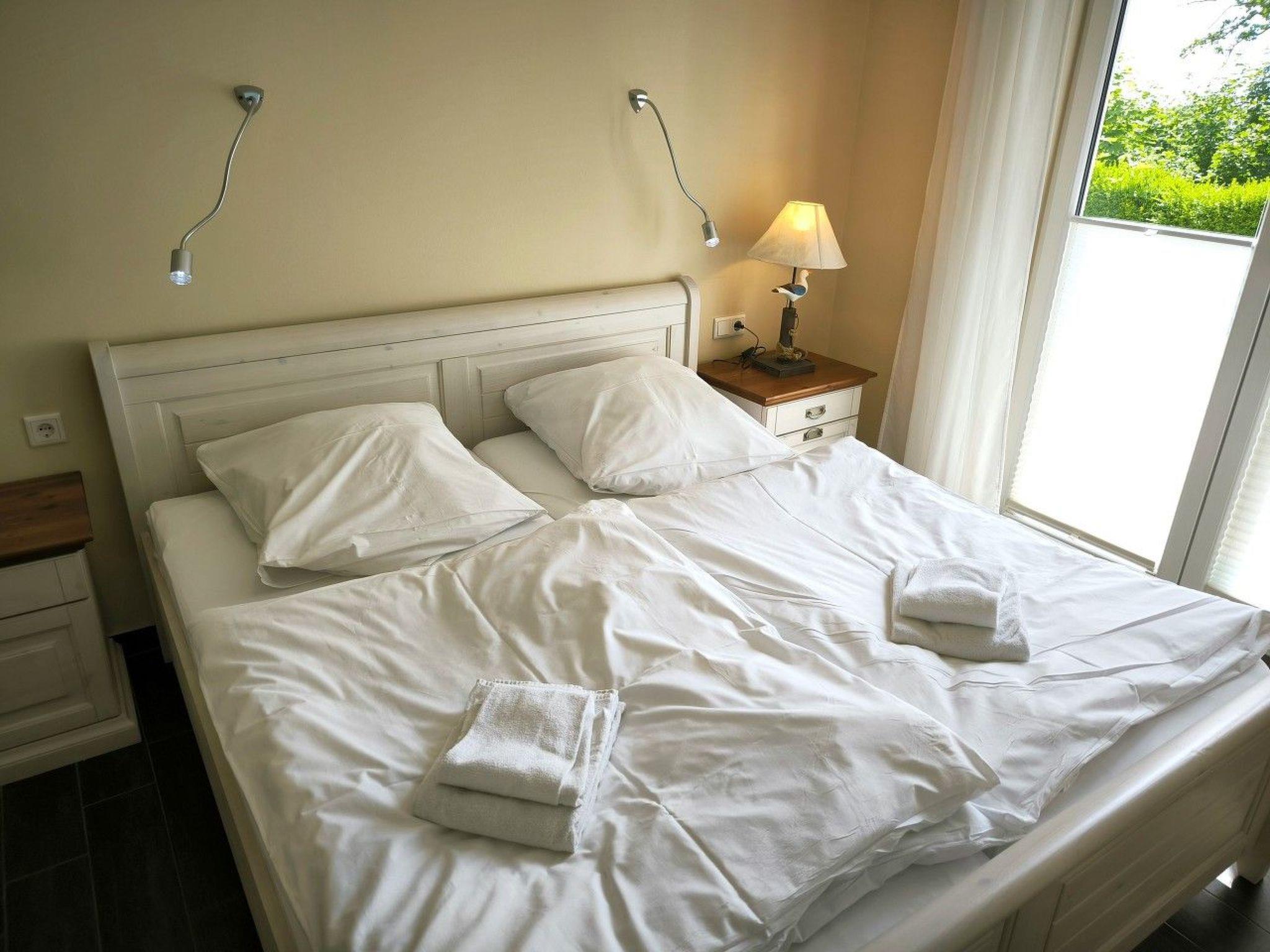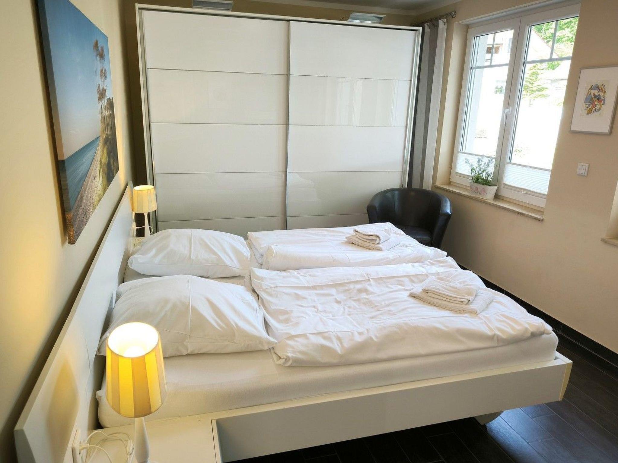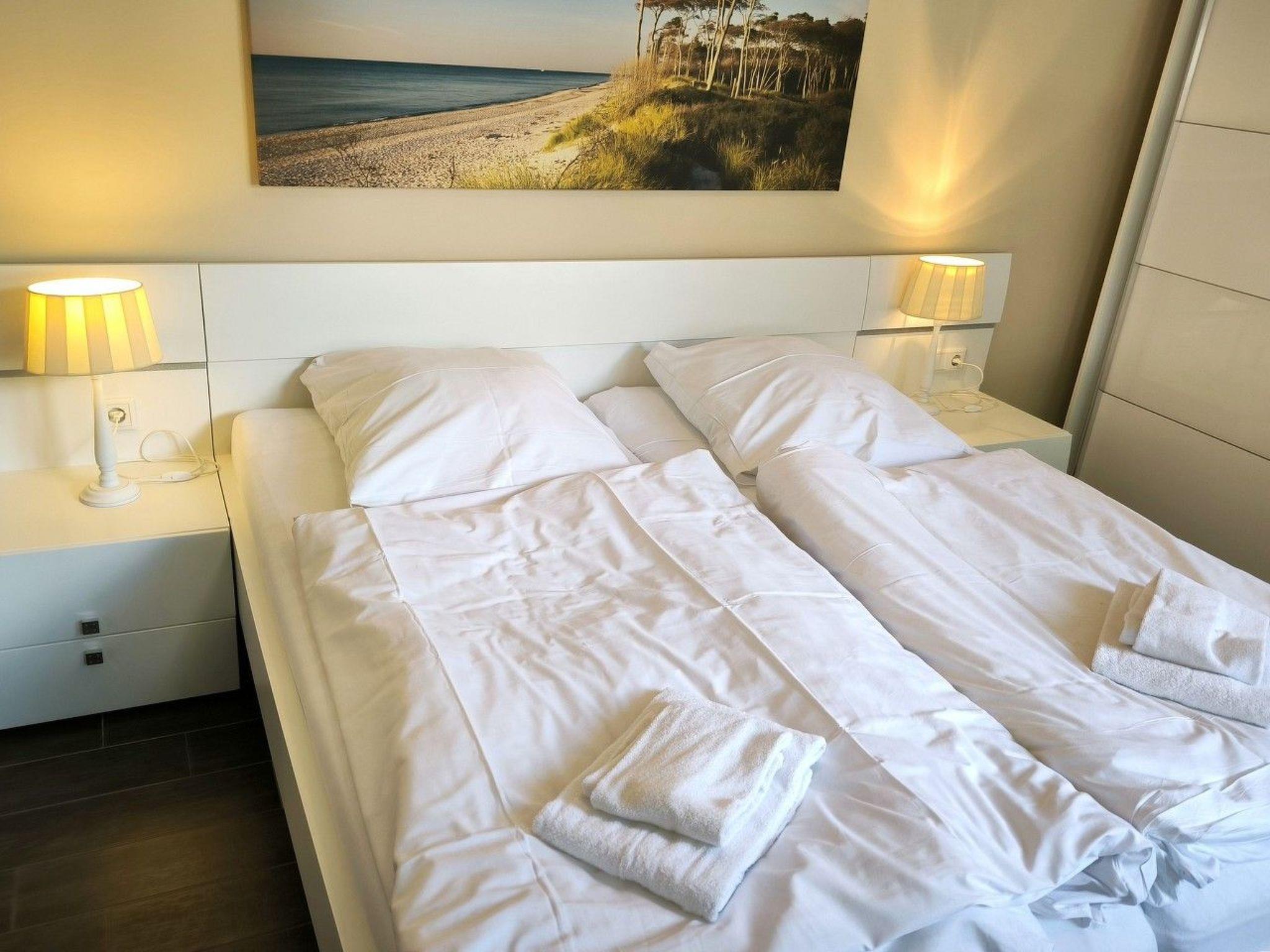 The spacious 3-room flat is modern and furnished to a high standard and has a terrace with a wonderful view of the Göhrener Südstrand.bicycles can be parked outside the house in a bicycle shed.one free parking space per flat is available to each guest directly at the house. Free W-LAN available in the flat. Living space: 82 m² 3-room flat Large entrance area with cloakroom, shoe cupboard and safe. Spacious living area with leather seating set and coffee table, sideboard with large flat-screen TV, CD radio system and dining table with 4 chairs, fitted kitchen integrated in the living room, equipped with: 4-ring ceramic hob, large oven, extractor bonnet, microwave, large fridge with freezer compartment, dishwasher, toaster, coffee machine, kettle and high-quality kitchen utensils. 2 bedrooms, each with a double bed (180 x 200 cm) and large wardrobe. One bedroom with flat-screen TV. 1 bathroom with large walk-in shower, washbasin, WC and hairdryer. 1 terrace with garden furniture. Iron and ironing board available. The entire flat is equipped with underfloor heating. Non-smoking! (Smoking is allowed on the terrace).