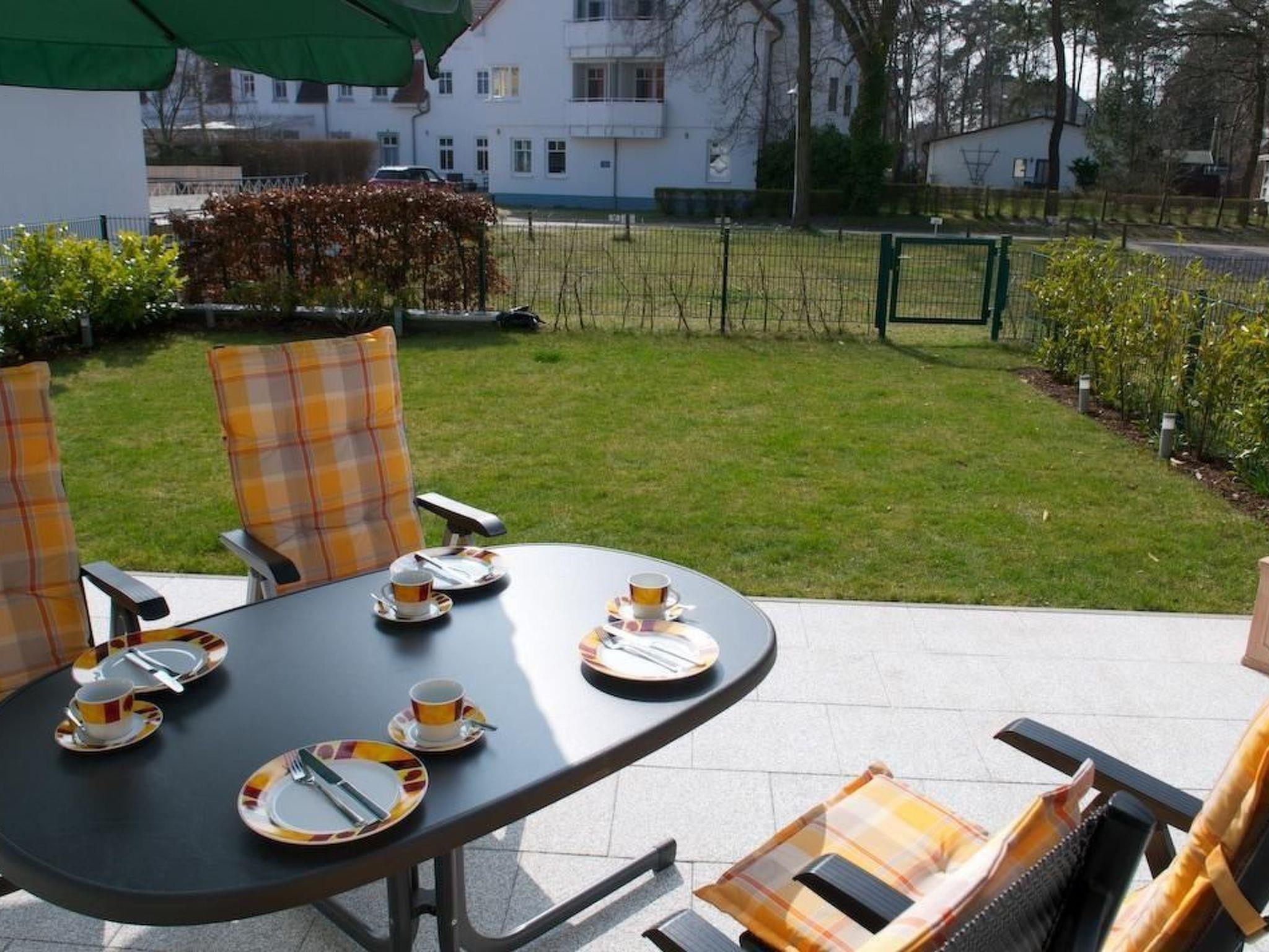 Comfortable, quiet 2-room holiday flat (60 sqm incl. 2 terraces) for 2 people on the ground floor. Underground car park included. Very quiet location directly at the spa gardens. Only 50 metres to the beach! The two terraces belonging to the holiday flat (east and south-west facing) offer you all-day sunshine and the ideal opportunity to relax thanks to their ideal location.