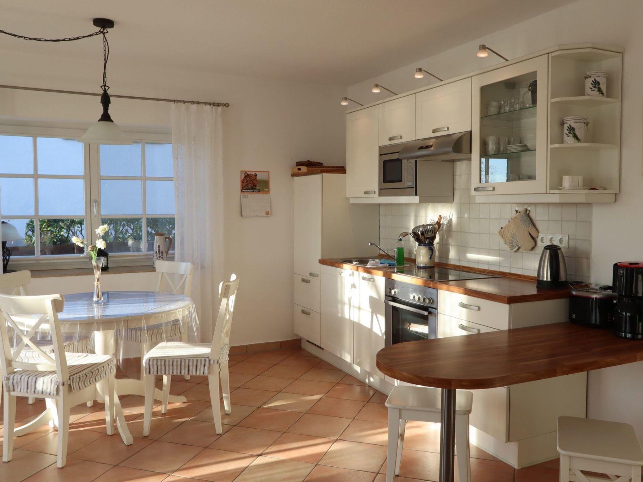 Inside, "Königin Margarete" offers comfort and warmth, which are further enhanced by the underfloor heating throughout. The holiday flat is designed to offer you a cosy home even on less sunny days. The upscale furnishings, including modern kitchen appliances such as a ceramic hob, filter coffee machine, dishwasher and kettle, ensure that you will want for nothing. Communal amenities such as a washing machine and tumble dryer are also available to make your stay as comfortable as possible.