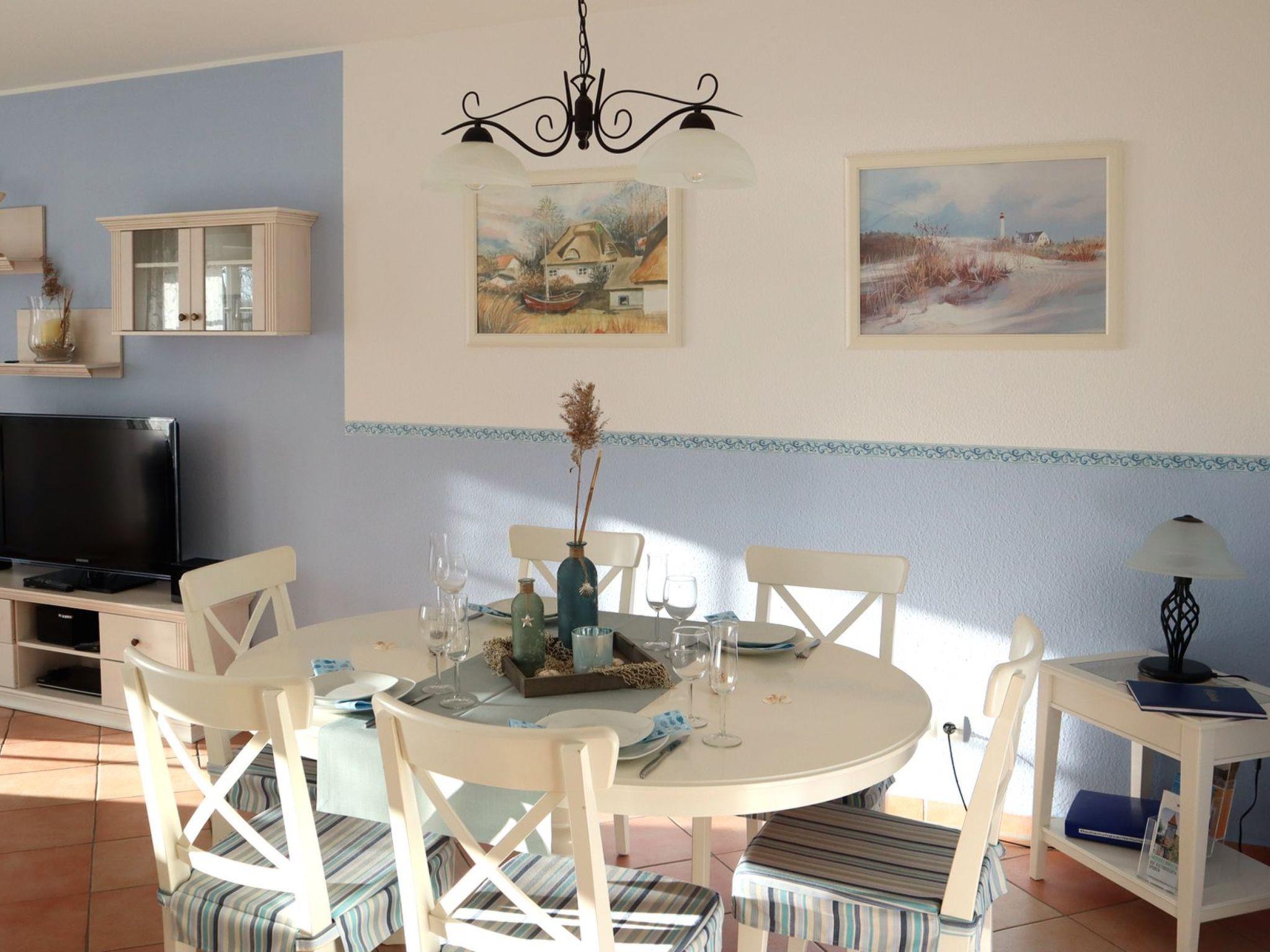 The 83 m² holiday flat extends over two floors and offers the feeling of living in your own terraced house. The interior design is upscale and ideal for up to six people (four adults plus two small children). The spacious living area on the ground floor has numerous windows and a fireplace that invites you to cosy get-togethers. Enjoy the marvellous view of the idyllic Bodden landscape. A high-quality kitchen on the ground floor is ideal for dining or socialising. On the top floor there are two separate bedrooms, a modern shower room and a guest WC on the ground floor, which round off the living comfort.