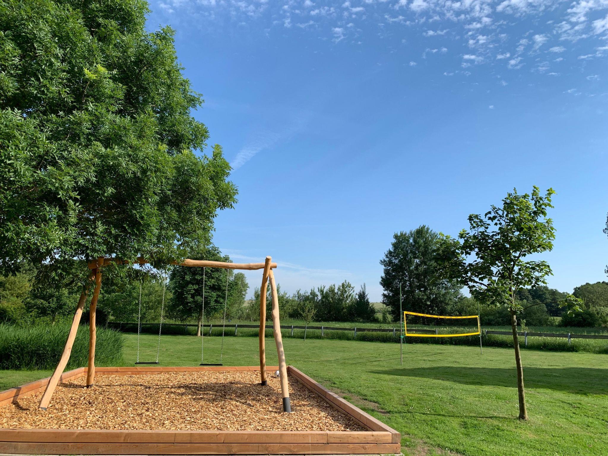 The large garden offers plenty of space to relax, unwind and play. The garden includes terraces with seating areas, beach chairs, parasols and deckchairs. You can enjoy a wonderful view of the natural surroundings from the garden. There is also a barbecue area in the garden. The children's playground for our younger guests is equipped with a swing, a playhouse, a slide and a sandpit. There are also free outdoor games such as badminton, volleyball and football. Car parking spaces are located directly in front of the house and are free of charge for our guests. There is a smoking pavilion in the front garden for all smokers.