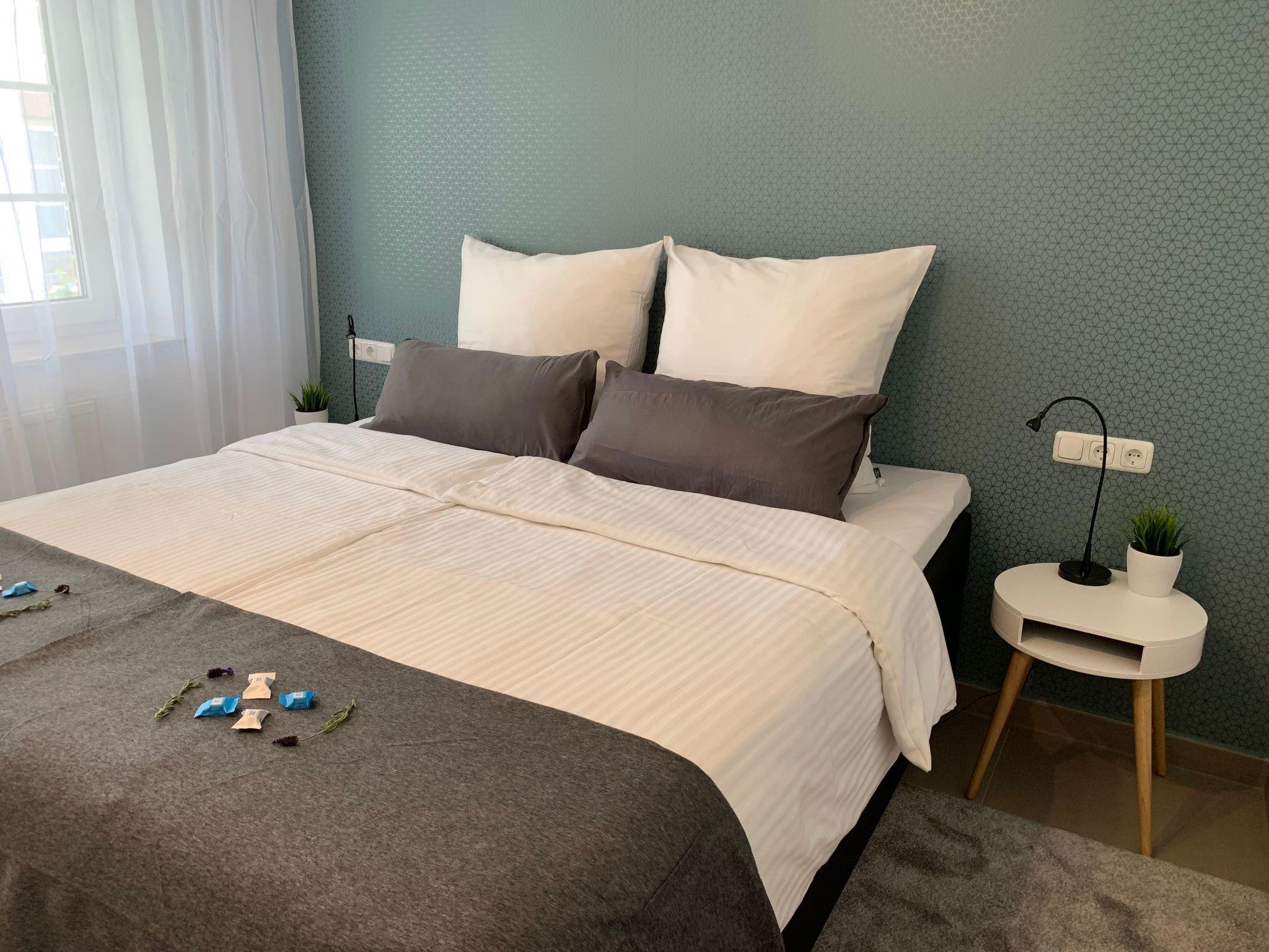 2-room flat for 2 to 3 people on the ground floor (approx. 49 sqm living space) The flat has a bedroom with a king-size box-spring bed, a living room with a sofa bed, an integrated fitted kitchen, a dining area, a bathroom with shower/WC, a safe, smart TVs in the living room and bedroom and a furnished terrace in the garden. The fully equipped kitchen with dining area is integrated into the large living room. From here you have direct access to the sun terrace with garden furniture. All our holiday flats are non-smoking flats.