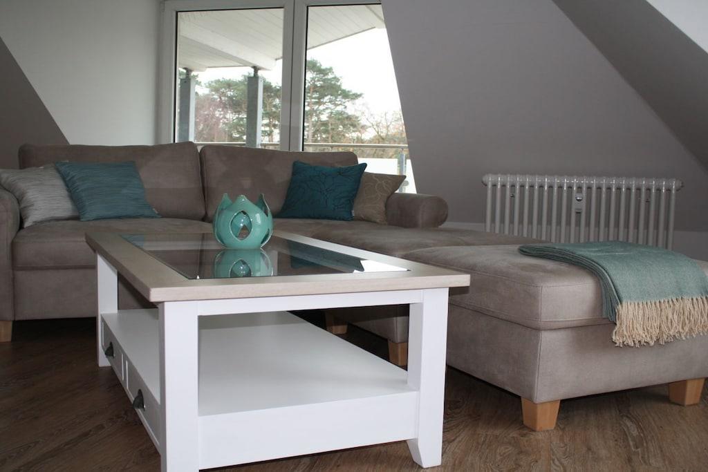 Ferielejligheden Kiekut tilbyder 90 m² boligareal til op til fire personer. Udover stuen med tv og åbent køkken finder du et soveværelse med dobbeltseng og tv, et separat soveområde med sovesofa samt et badeværelse med bruser og toilet. Lejligheden er tilgængelig for kørestolsbrugere og har direkte elevator. De moderne møbler i alle værelser er så gode som nye og tilbyder alt, hvad du behøver for en afslappende ferie ved Østersøen. Ferielejligheden har to store altaner. Fra den ene altan kan du nyde en betagende udsigt over Østersøen, mens du fra den anden kan nyde udsigten over promenaden i Østersøbyen. Fra maj til september kan en strandstol forudbestilles til hele din ferie og stilles til rådighed gratis. Der er en parkeringsplads på grunden til boligkomplekset. Hvis vejret ikke er med dig, kan du bruge wellness-området i bygningens kælder, som har infrarød kabine, sauna, dampbad, oplevelsesbruser, opvarmet bænk og fitnessrum. Der er også gratis Wi-Fi i hele lejligheden. Der er cykeludlejning på stedet, og vi tilbyder særlige priser for vores gæster uden for højsæsonen.