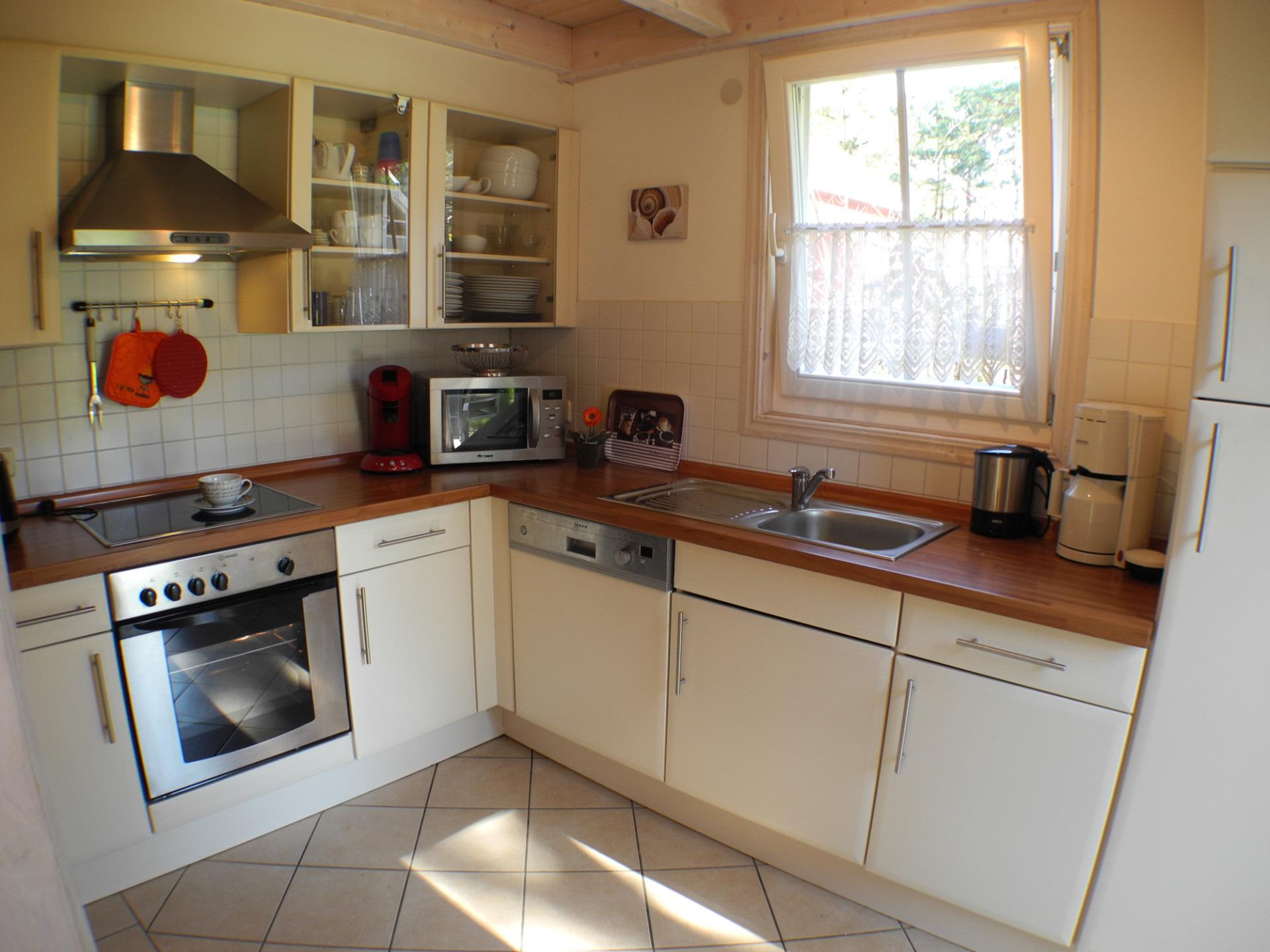 Eine elektrische Fußbodenheizung im Untergeschoss sorgt für angenehme Bodenwärme. Die voll ausgestattete Küche mit Spülmaschine, Senseo-Kaffeemaschine und Mikrowelle lässt keine Wünsche offen. Über Elektroheizkörper sowie einen dänischen Kaminofen lässt sich das Haus beheizen.