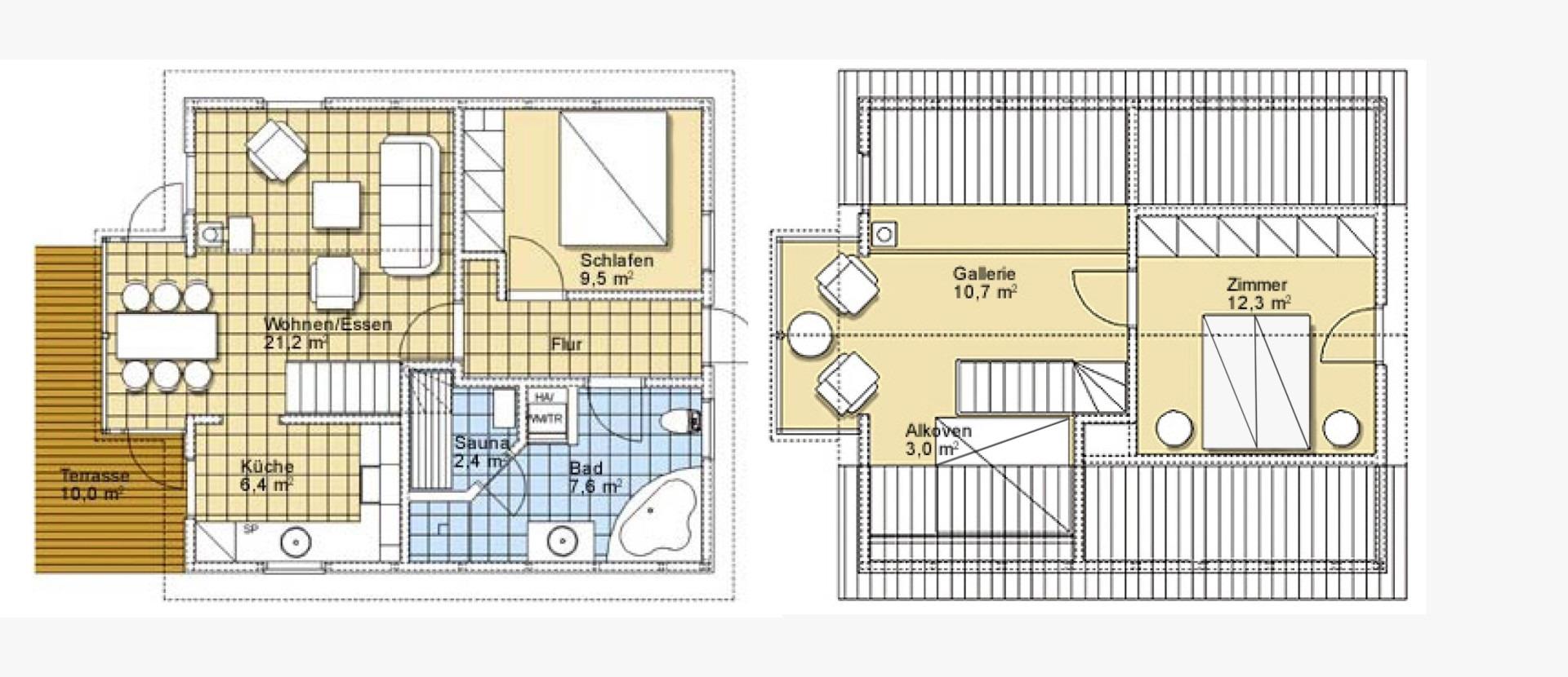 Beginnen Sie den Tag mit einem Frühstück auf der Sonnenterrasse oder an kälteren Tagen im gemütlichen Essbereich im Erker. Im Wohnbereich befindet sich eine gemütliche Sitzecke mit Kamin. Lesen Sie hier Ihr Lieblingsbuch bei einer schönen Tasse Tee oder verwöhnen Sie sich mit einem Saunagang in unserem Wellnessbad mit Whirlpool.
