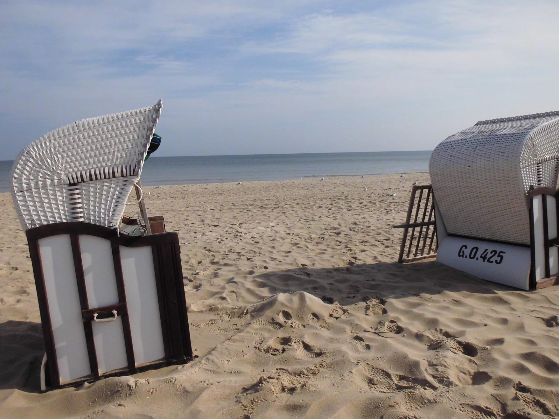 Die offene Küche mit hellem Essbereich und einem integriertem Tresen lädt zum Verweilen ein. Auf dem großzügigen Balkon finden Sie bequeme Gartenmöbel und einen Strandkorb. Lauschen Sie hier am Abend bei einem leckeren Getränk dem Rauschen der Wellen.