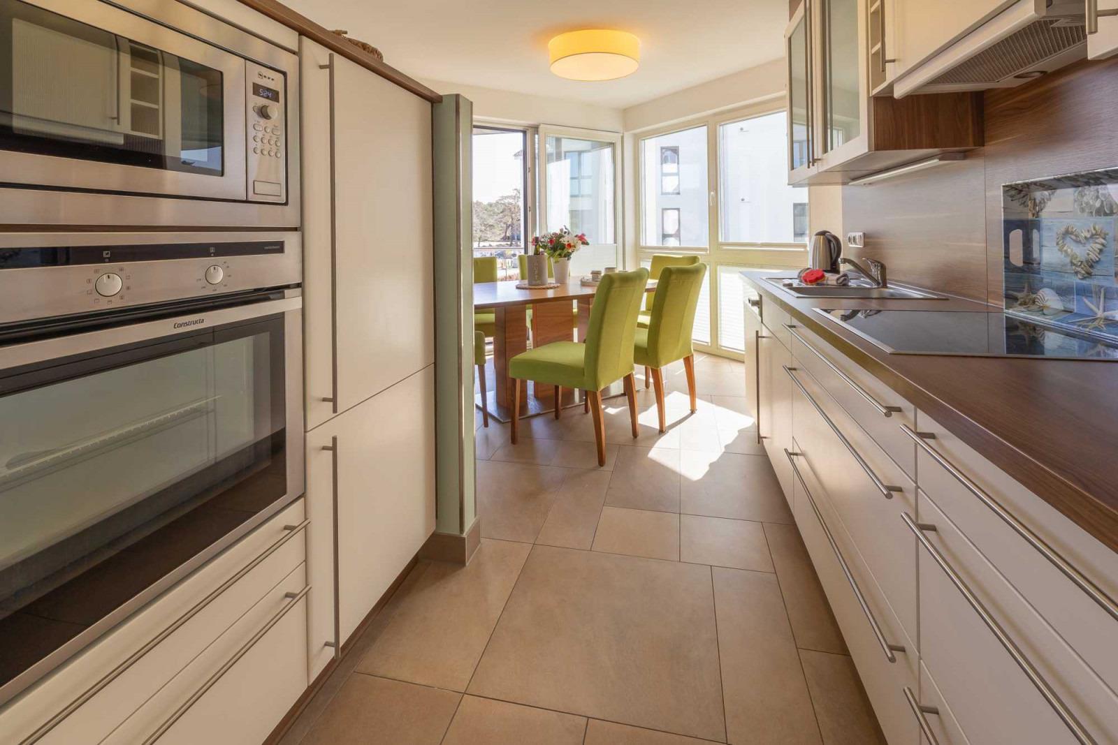Die Küche ist mit allen wichtigen Geräten ausgestattet, sodass dem gemeinsamen Zubereiten von leckeren Gerichten nichts mehr im Wege steht.
