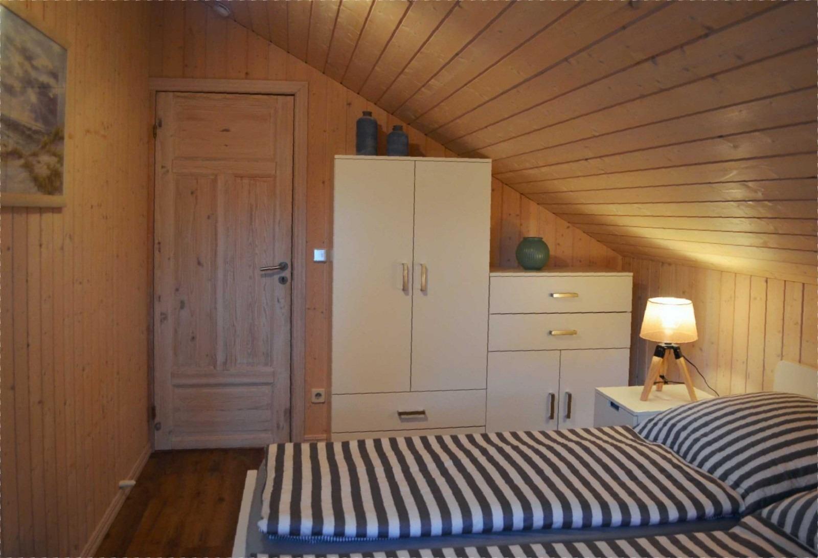 Die beiden anderen Schlafzimmer finden Sie im Obergeschoss. Eines mit Doppelbett, ein weiteres mit 2 Einzelbetten. Darüber hinaus ein zusätzliches Bad mit WC und Dusche.