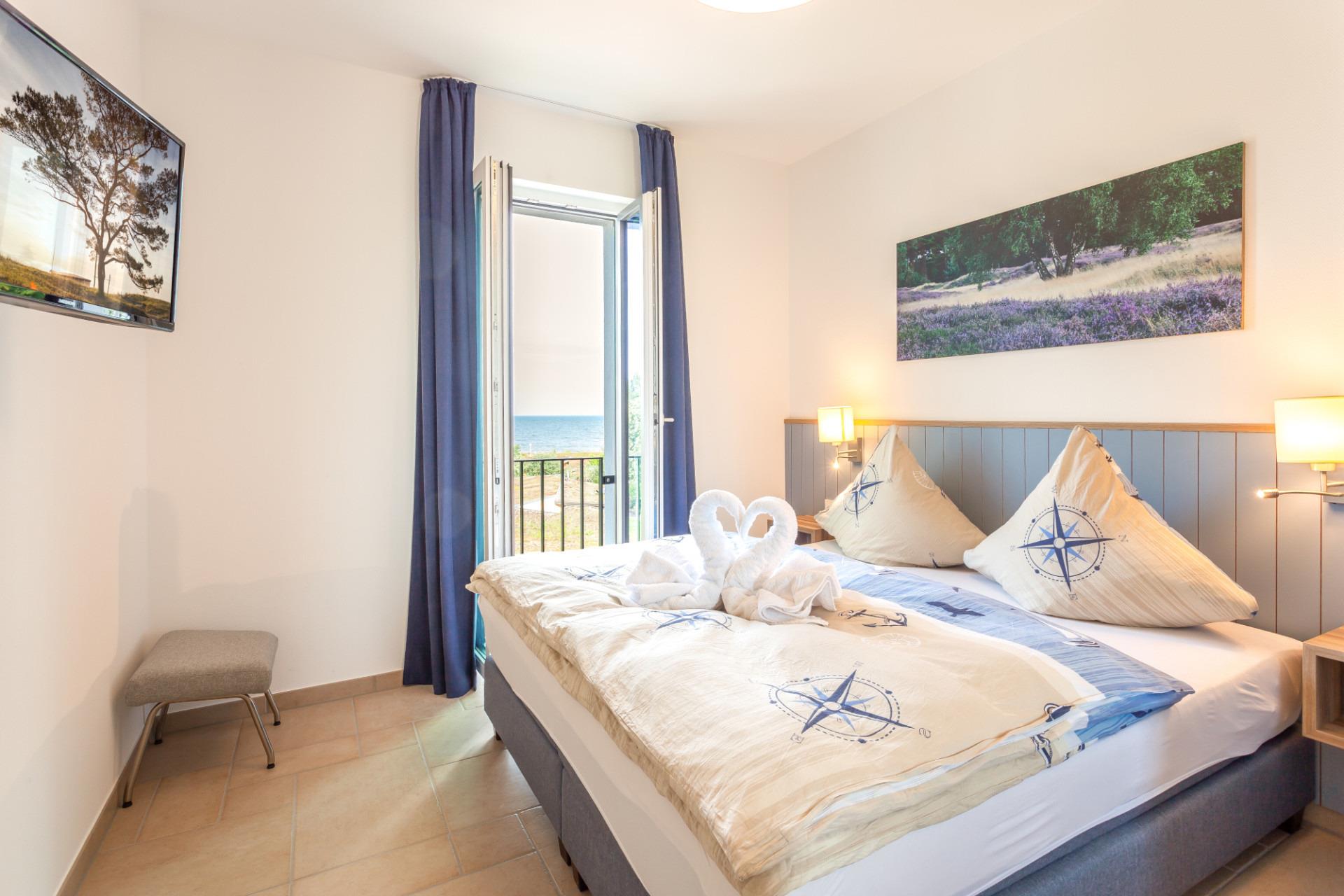 Die zwei hochwertigen Schlafzimmer sind jeweils mit einen Boxspringbett mit durchgehender Matratze (180 x 200cm) und einem zusätzlichen TV ausgestattet. Ein Babyreisebett ist ebenso vorhanden.