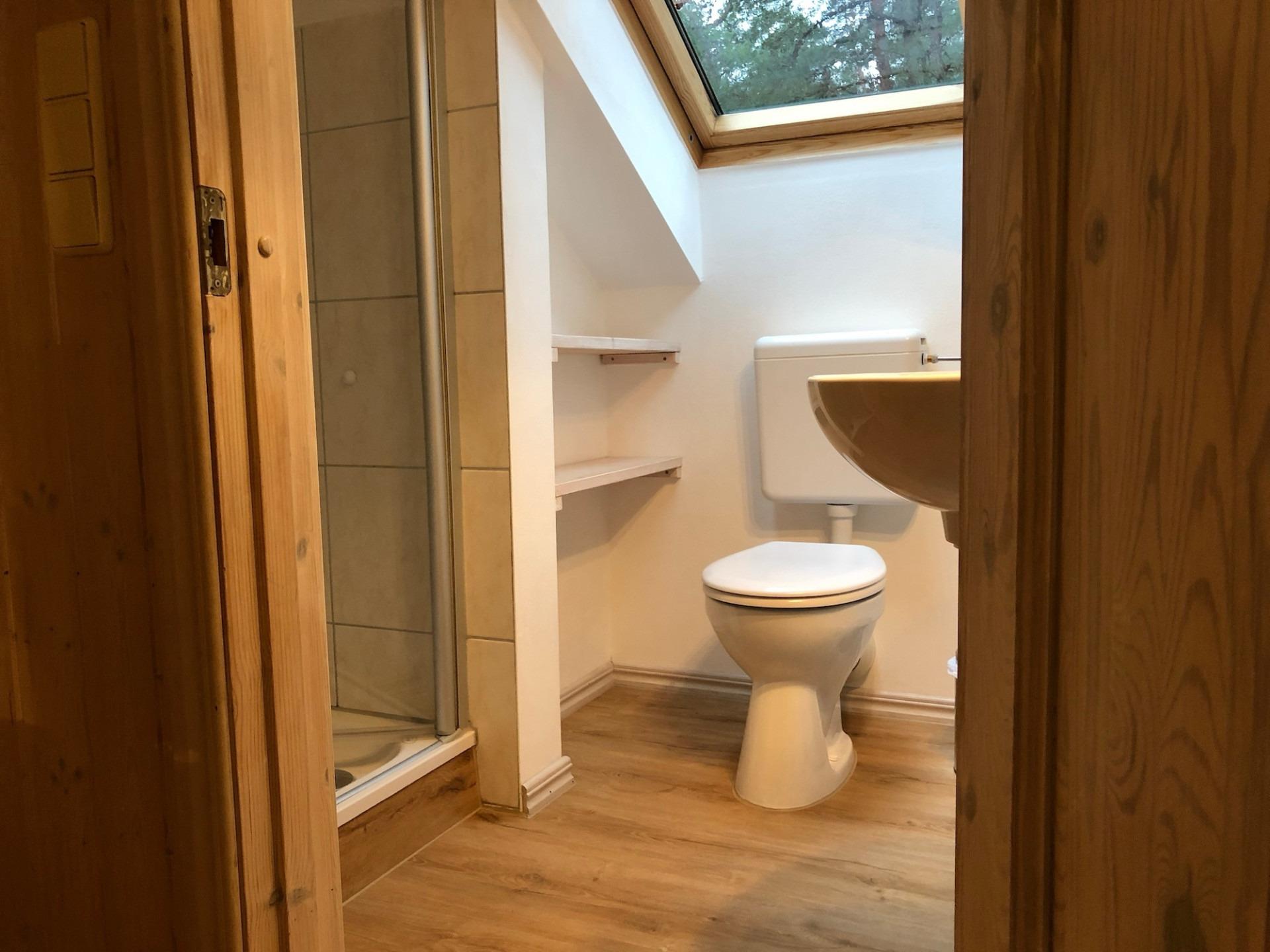 Im Obergeschoss sorgt ein weiteres Bad mit Dusche und WC für noch mehr Bequemlichkeit.
