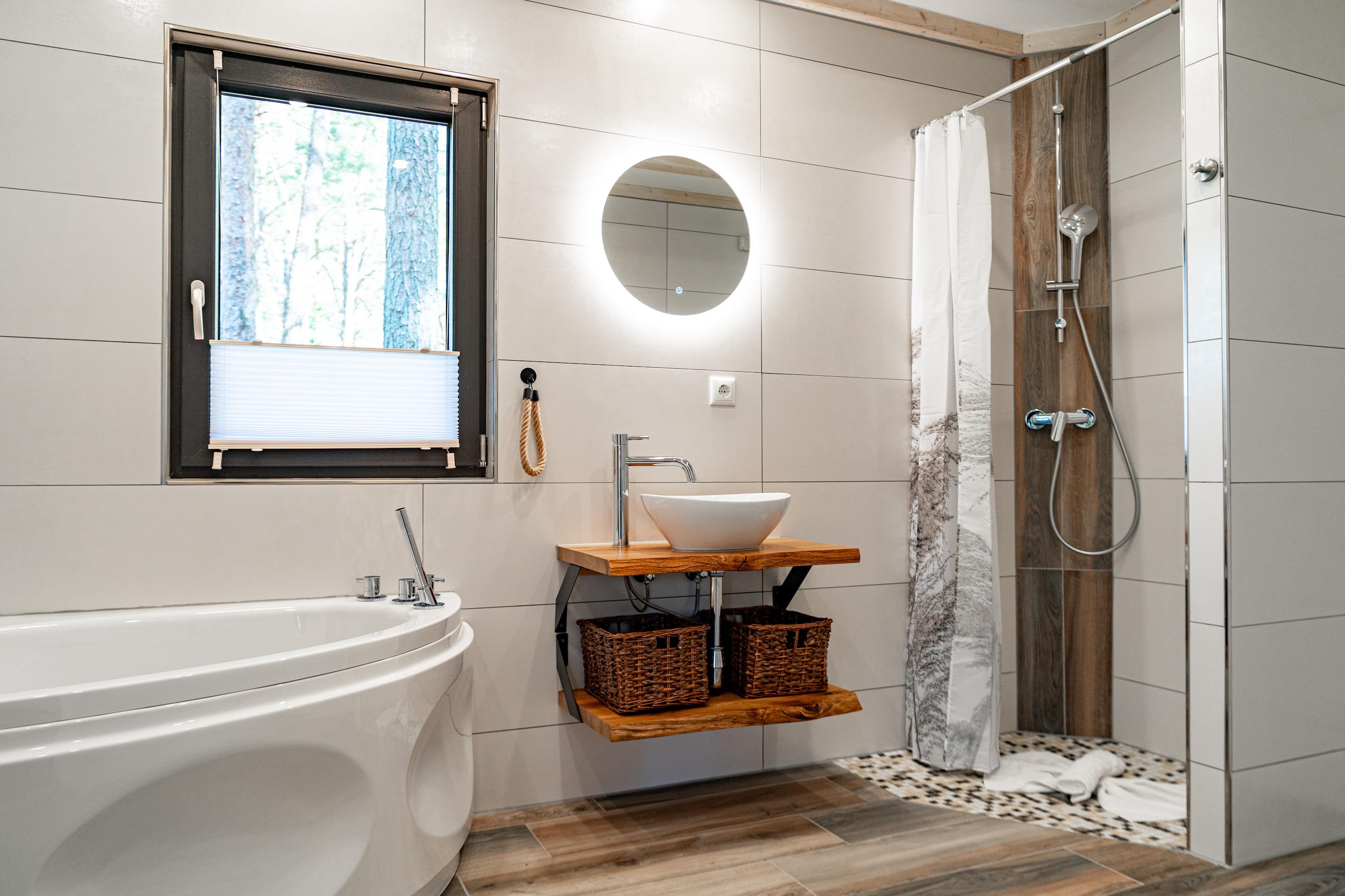 Badeværelse med bruser og badekar
