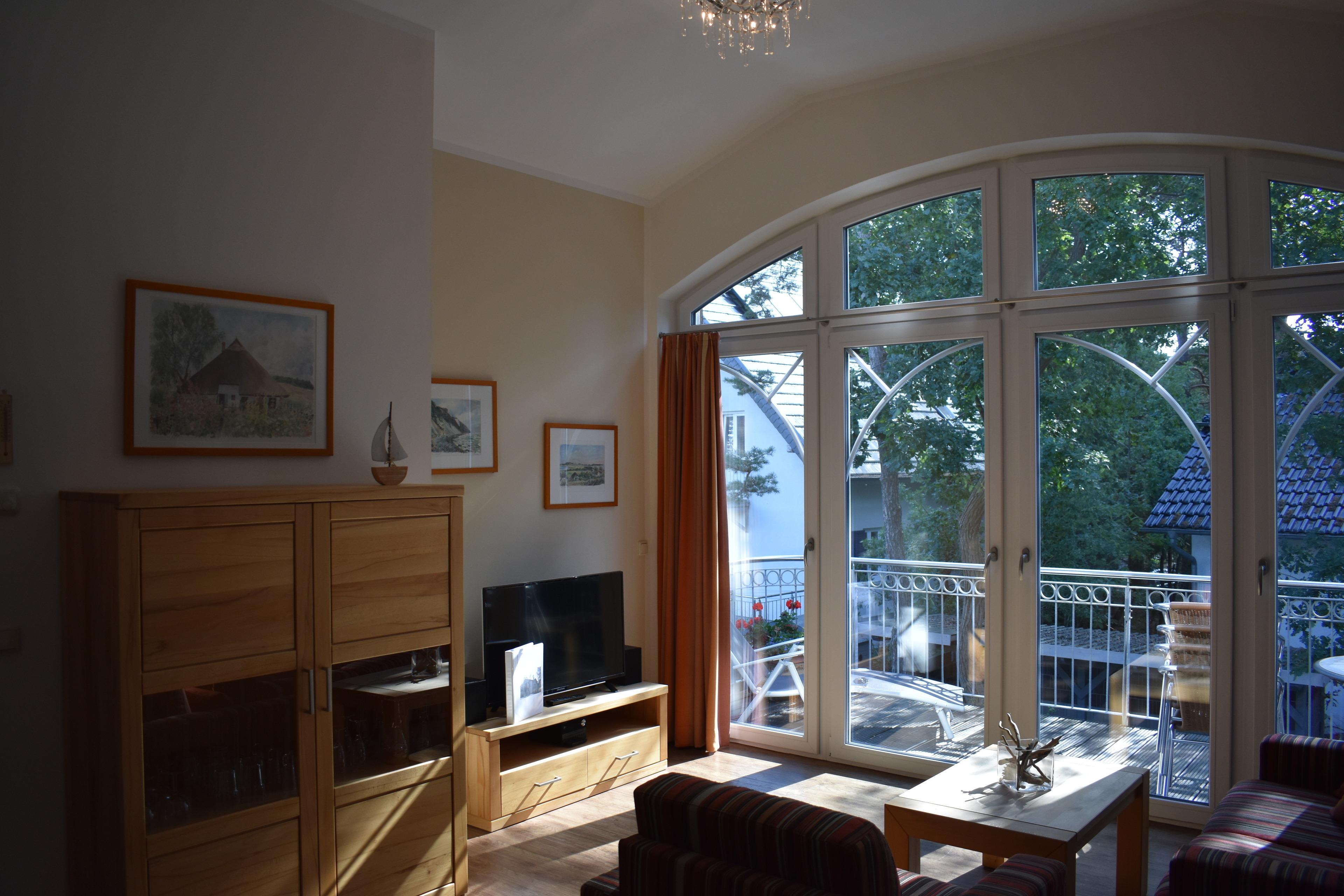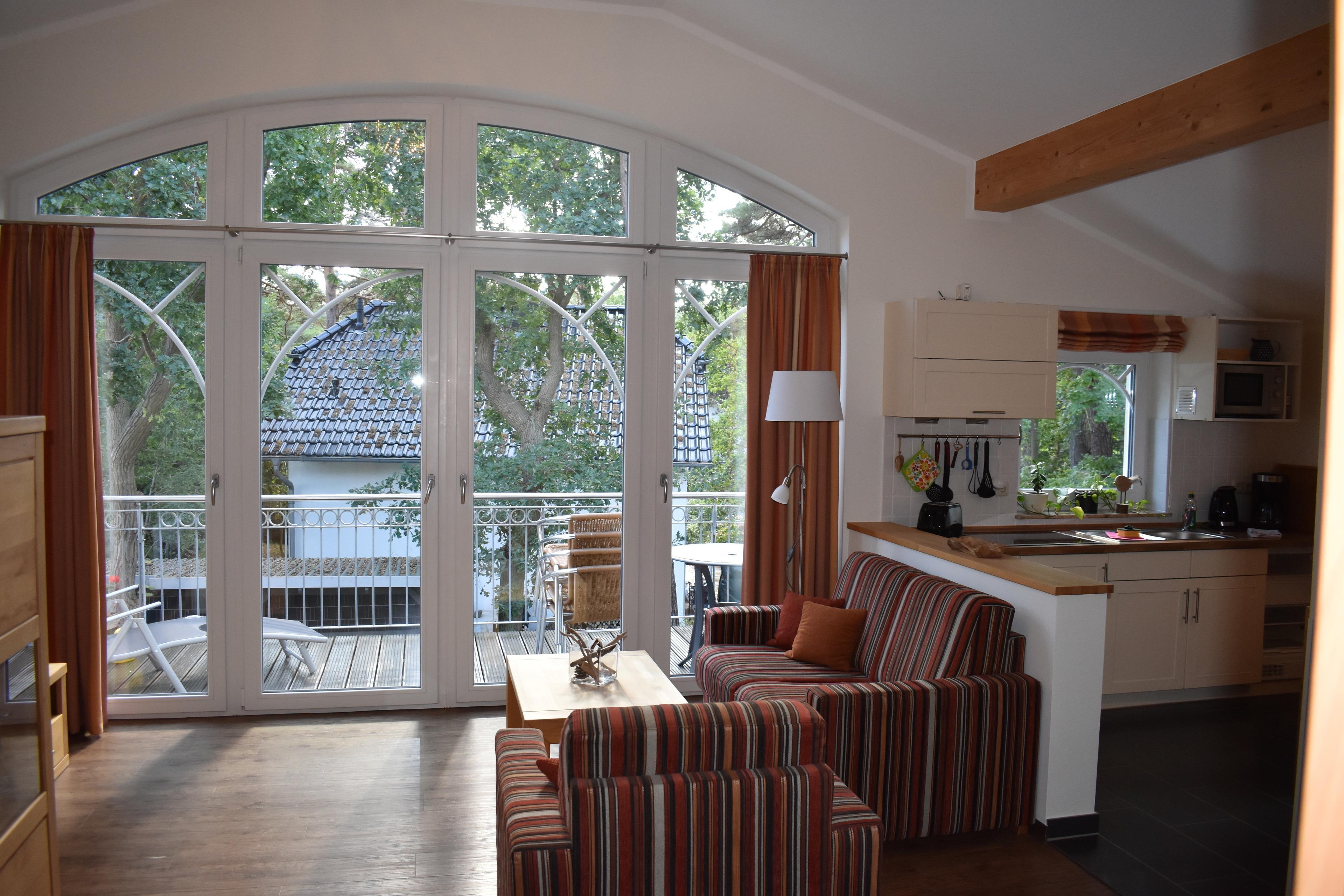 Die sehr schöne gemütliche Dreiraum-Studio-Wohnung, mit zwei Schlafzimmer, ist etwa 60qm groß. Diese Wohnung befindet sich im Obergeschoß (1.Etage) der Villa Carina. Nur 150 Meter vom Ostseestrand entfernt. Die Wohnung ist sehr hochwertig und gemütlich eingerichtet. Zur Wohnung gehört ein großer Balkon.
