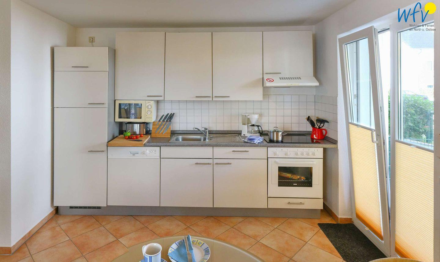 Die moderne integrierte Küche mit anschließendem Essplatz macht die Selbstverpflegung zum Kinderspiel! Schnell ist der Frühstückstisch gedeckt und der Kaffee aufgebrüht. Die Brötchen bräunen im Backofen und während Sie nach dem Frühstück bereits die Strandtasche packen, erledigt die Spülmaschine den Abwasch für Sie!