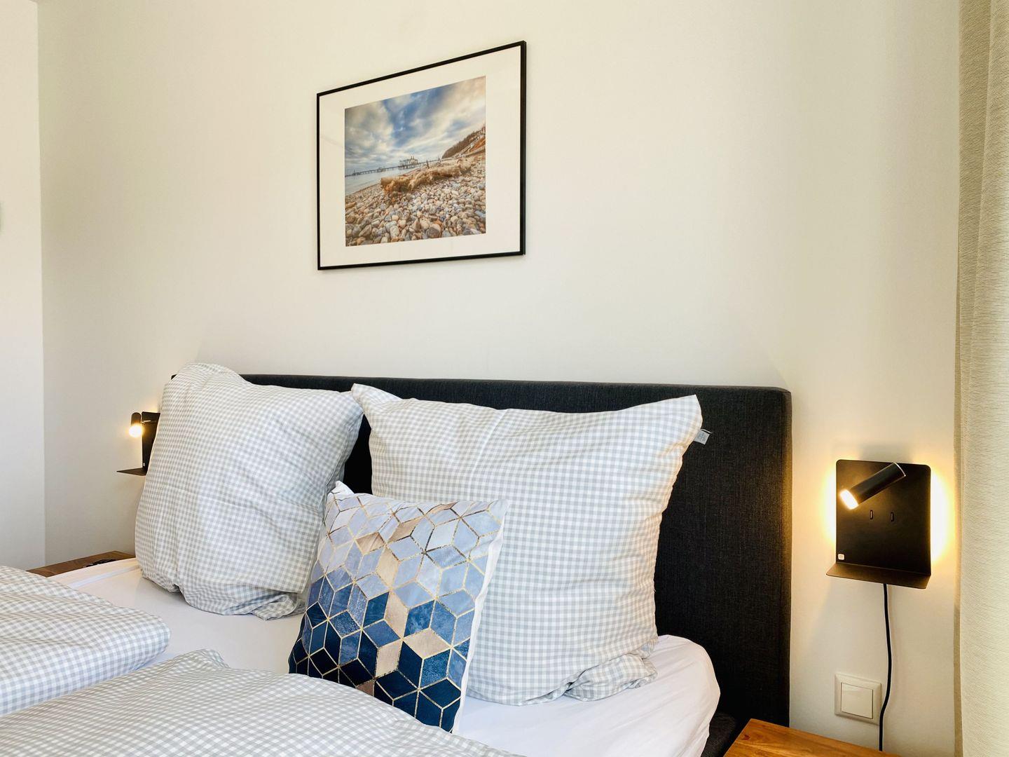 Skandinavisch-maritime Möblierung mit Stil und Geschmack erwartet Sie in der Ferienwohnung Meer [&] Mehr im 1. Obergeschoss der Villa Carlota in Baabe. Die 55 m² große Ferienwohnung ist für 1-3 Personen geeignet. In allen Räumen lassen sich tolle Details entdecken, die den Urlaub hier zu einem unvergesslichen Erlebnis werden lassen.