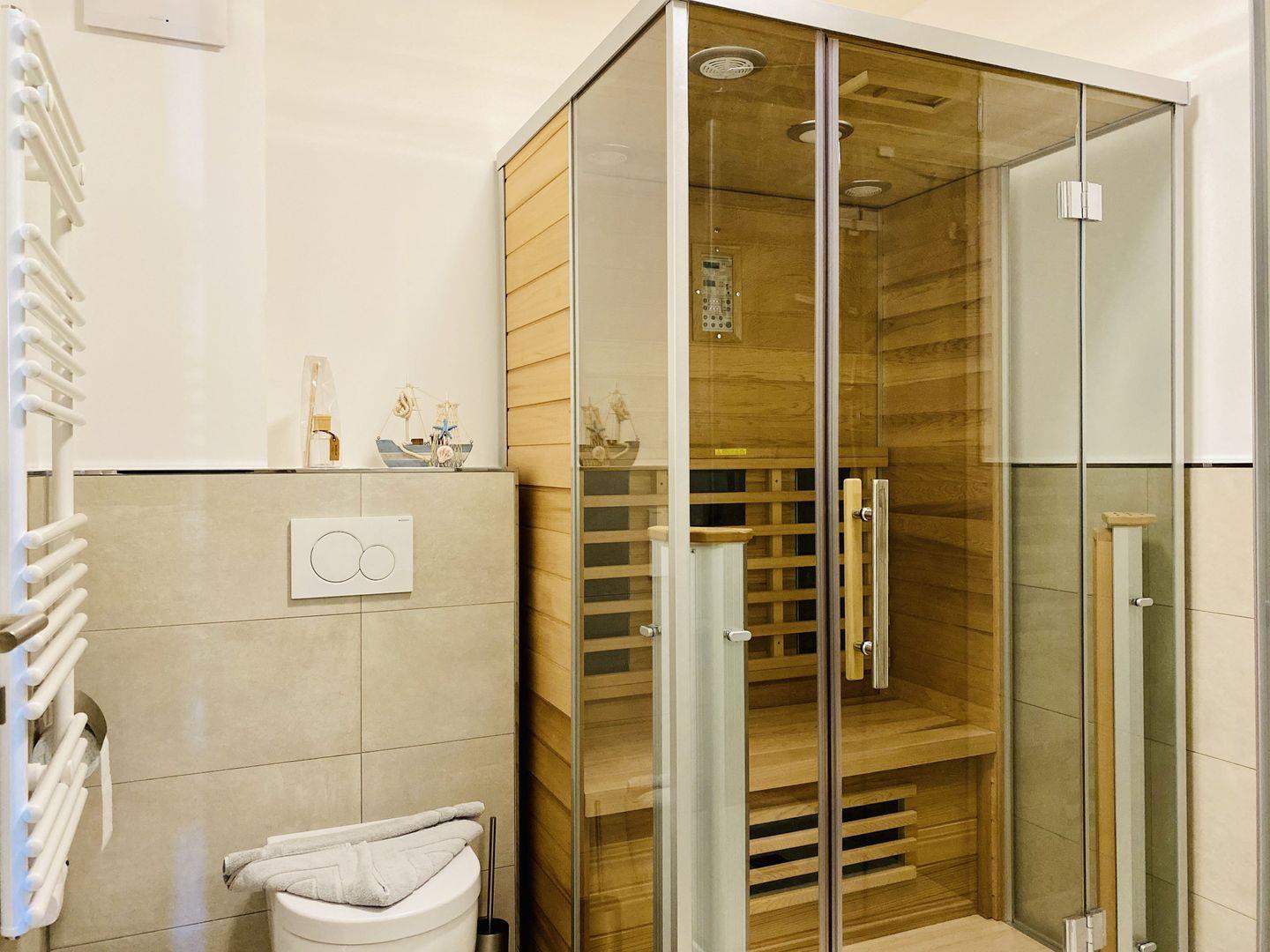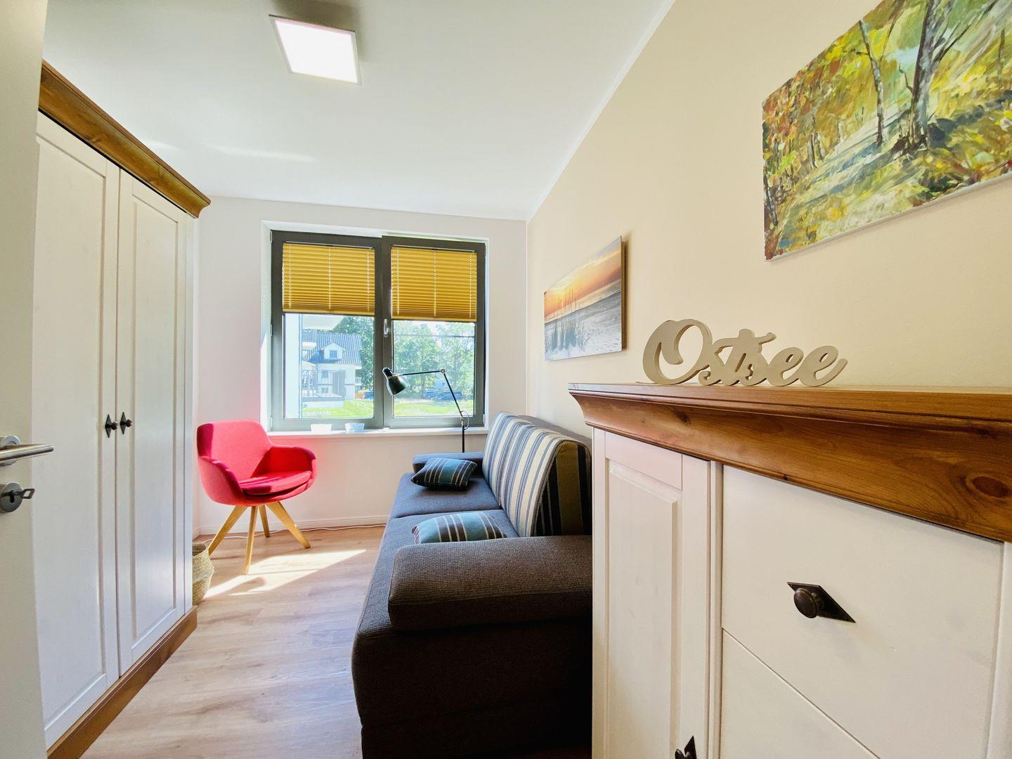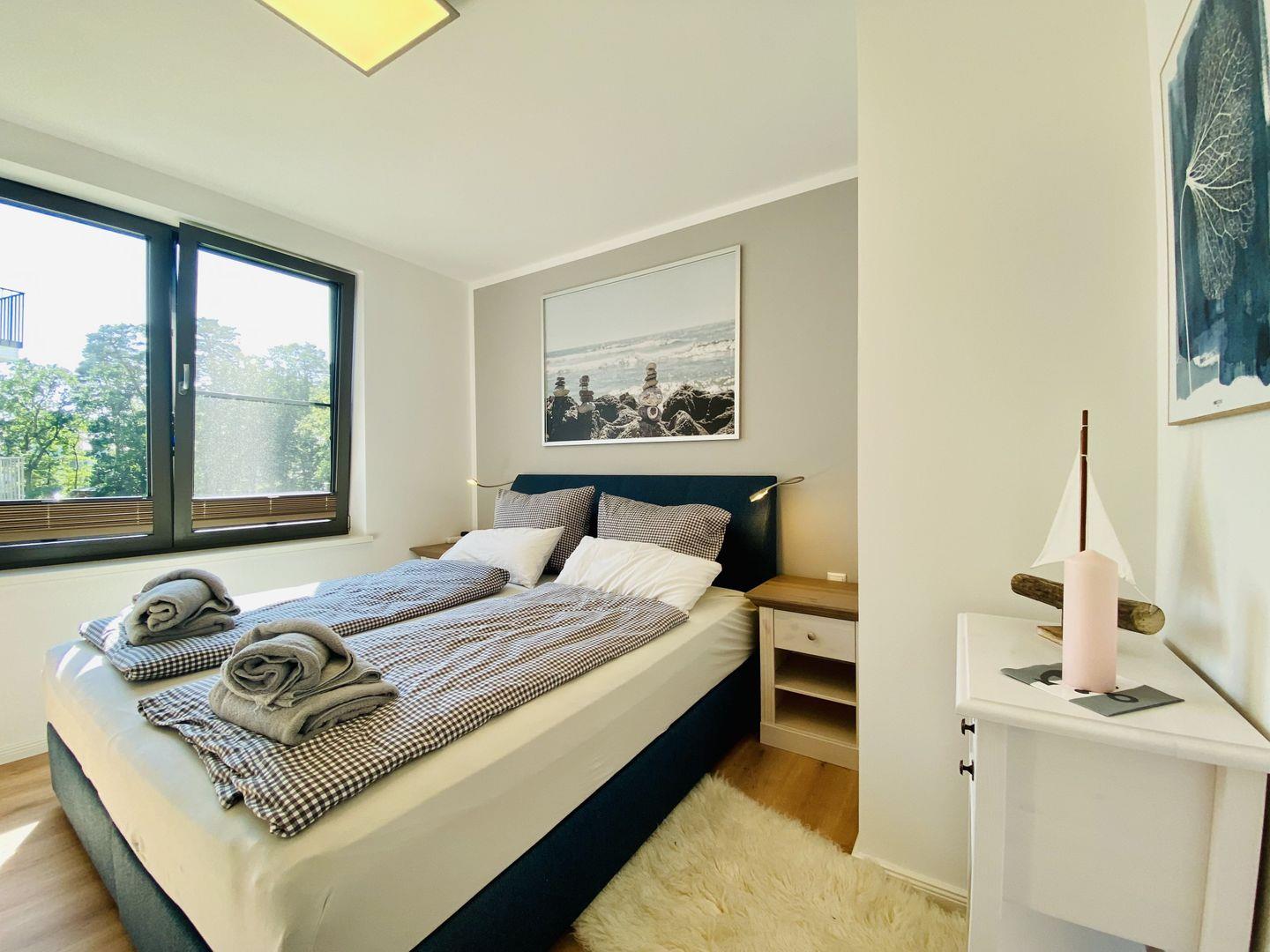 Das erste Schlafzimmer mit hochwertigem Boxspringbett, sowie das zweite Schlafzimmer mit einer Schlafcouch für einen ungestörten Schlaf, als auch ein Badezimmer mit ebenerdiger Regendusche und Infrarotkabine ergänzen die hochwertige Ausstattung der Ferienwohnung Strandloper. Ein PKW-Stellplatz in der hauseigenen Tiefgarage sowie ein eigener Keller für Fahrräder oder Strandutensilien und kostenfreies WLAN stehen Ihnen während des Urlaubs zur Verfügung.