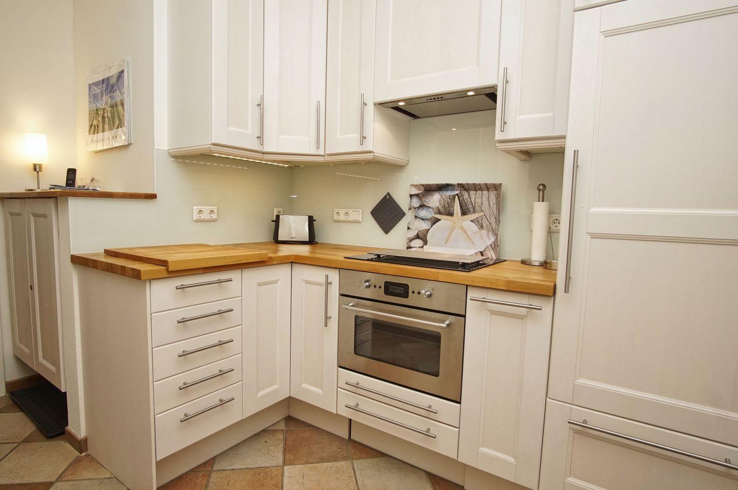 KÜCHE // separate Küche, Induktionsfeld, Spülmaschine, Kühlschrank mit Gefrierfach, Mikrowelle, Kaffeemaschine, Toaster, Wasserkocher, reichlich Besteck sowie Geschirr und diverse Küchenutensilien ++