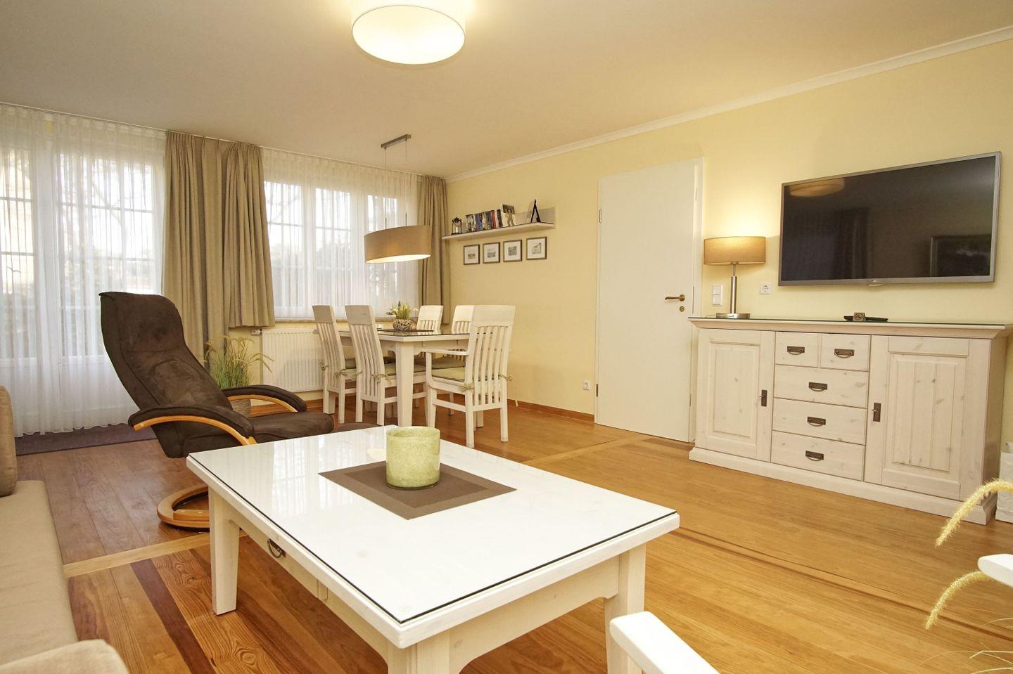 WOHNEN // Wohnraum mit Essbereich, bequemer Couch mit Schlaffunktion, Relax-Fernseh-Sessel, Flachbild-TV ++