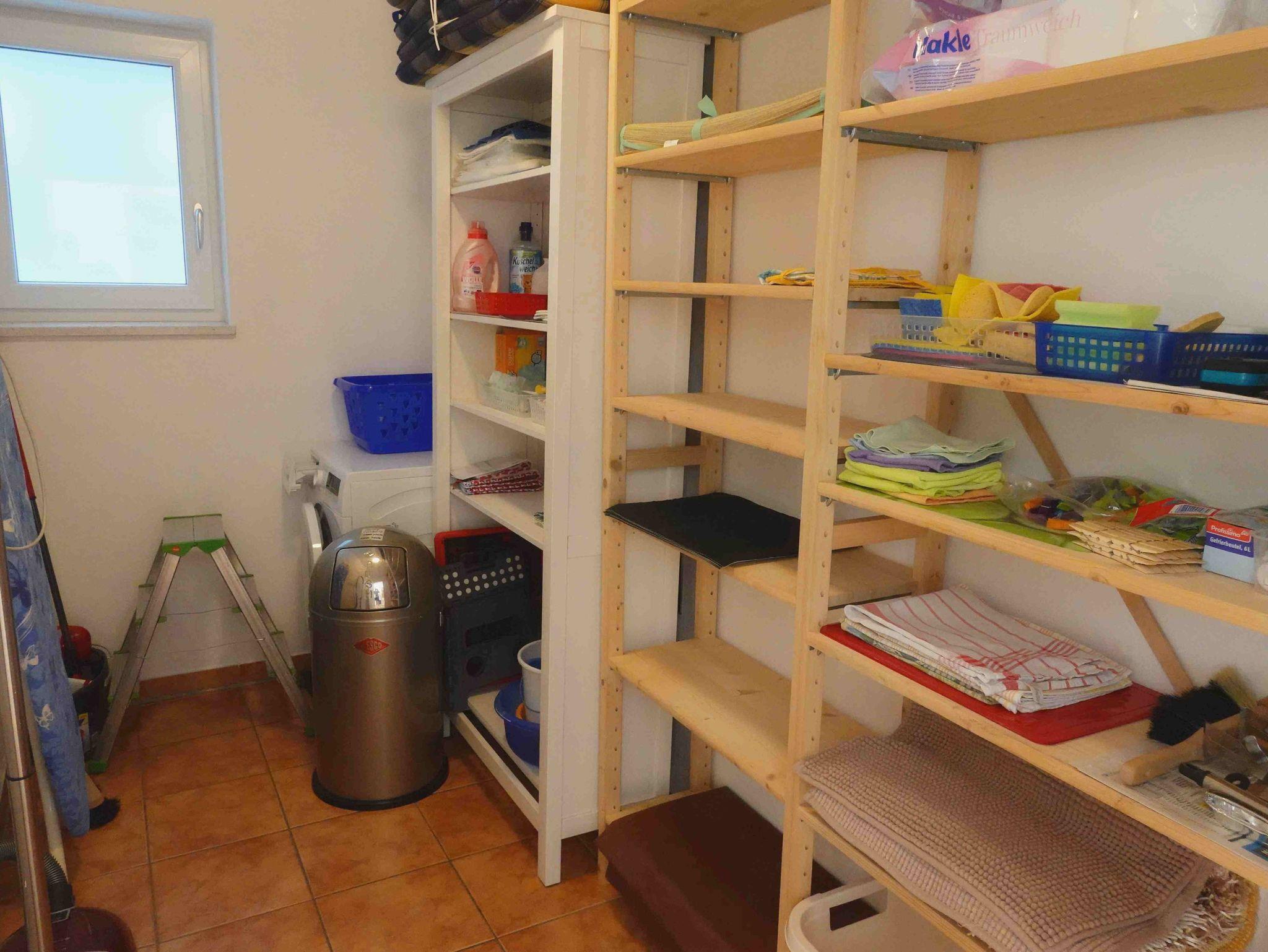Das Schlafzimmer verfügt über ein Doppelbett (180x200 cm) mit hochwertigen, getrennten Matratzen, zwei Nachtkästchen, einem Kleiderschrank und einem Stuhl. Auf Wunsch sind für Kleinkinder ein Kinderhochstuhl und ein Babybett samt Bettwäsche (60 x 120 cm) zusätzlich verfügbar. Bitte vor der Anreise angeben. Im Abstellraum stehen Ihnen eine Waschmaschine zum Reinigen Ihrer Kleider, ein Wäscheständer, Bügeleisen, Bügelbrett, Staubsauger, Regale und Reinigungsmittel zur Verfügung. Eine große Terrasse mit 24 qm, ein kleiner Gartenanteil, ein Tisch mit vier Stühlen, Sonnenschirm, Grill und Sonnenliegen stehen für Ihre Erholung bereit.