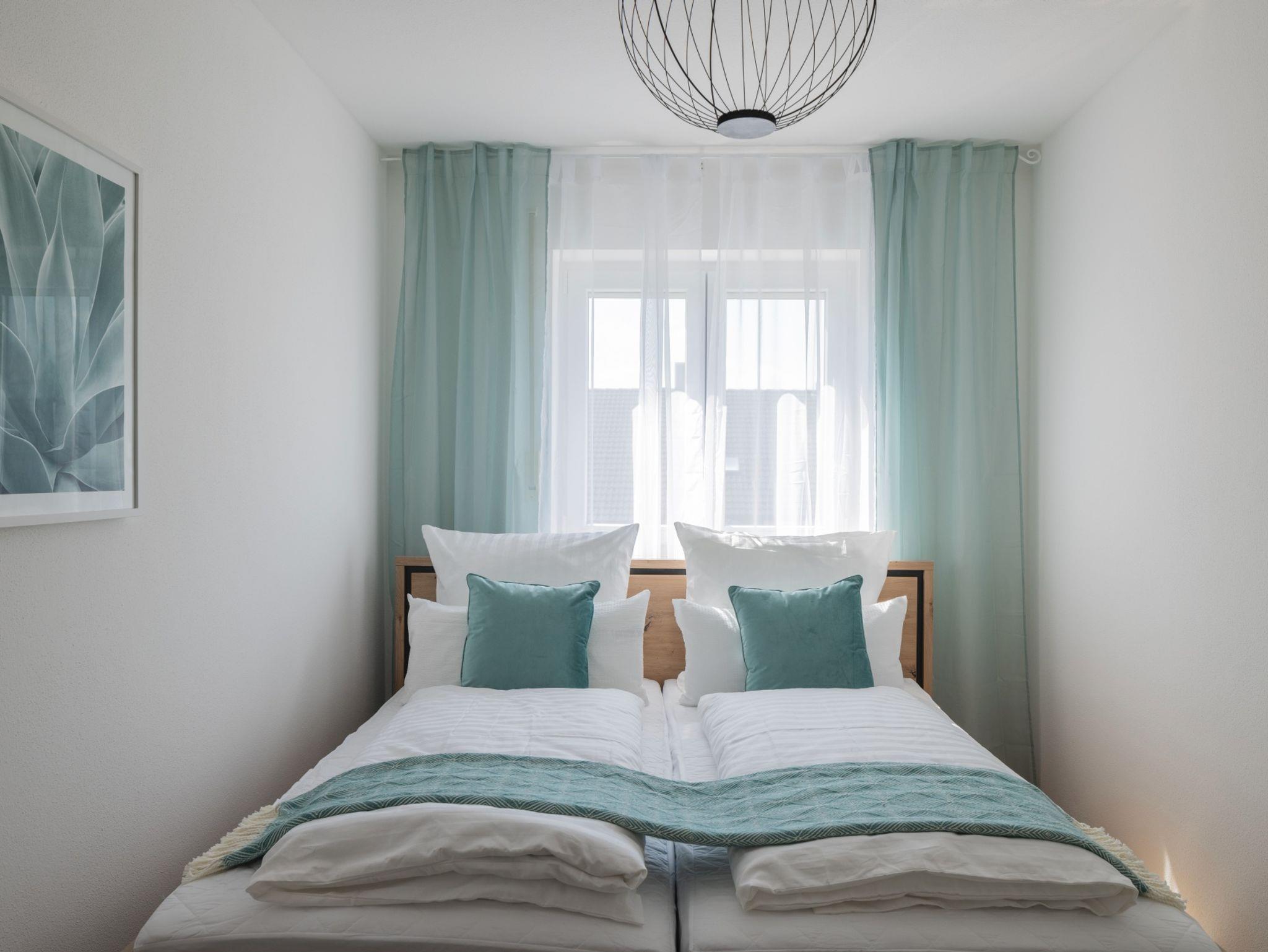Das stilvoll und modern ausgestattete Apartment liegt 10min vom Bahnhof entfernt in ruhiger Lage. Es verfügt über 3 Schlafzimmer mit je einem Kingsize-Doppelbett. Bei Bedarf können zwei Einzelbetten sowie ein Kinderbett hinzugestellt werden, so dass in Summe acht Erwachsene und ein Kind im Apartment übernachten können. Das großzügige Wohnzimmer mit seinem XXL-Sofa lädt zum Entspannen ein. Vom weiträumigen Balkon kann man bei schönem Wetter sogar die Berge sehen. Die voll ausgestattete Küche mit Herd, Ofen, Mikrowelle und Spüler sowie einem Tisch, an dem 8 Personen Platz finden, lädt zu ausgiebigen Kochabenden ein. Ein Bad mit Dusche und Badewanne sowie ein zusätzliches WC gehören ebenfalls zum Apartment. Die Unterkunft befindet sich im 2. Stock und ist über eine Treppe ohne Fahrstuhl erreichbar. Die gesamte Unterkunft gehört den Gästen. Für mit dem Auto Anreisende steht ein kostenloser Parkplatz zur Verfügung. Auf Anfrage können wir ein Babybett und einen Hochstuhl bereitstellen - ein Kind bis 2 Jahre ist bei uns kostenfrei willkommen.