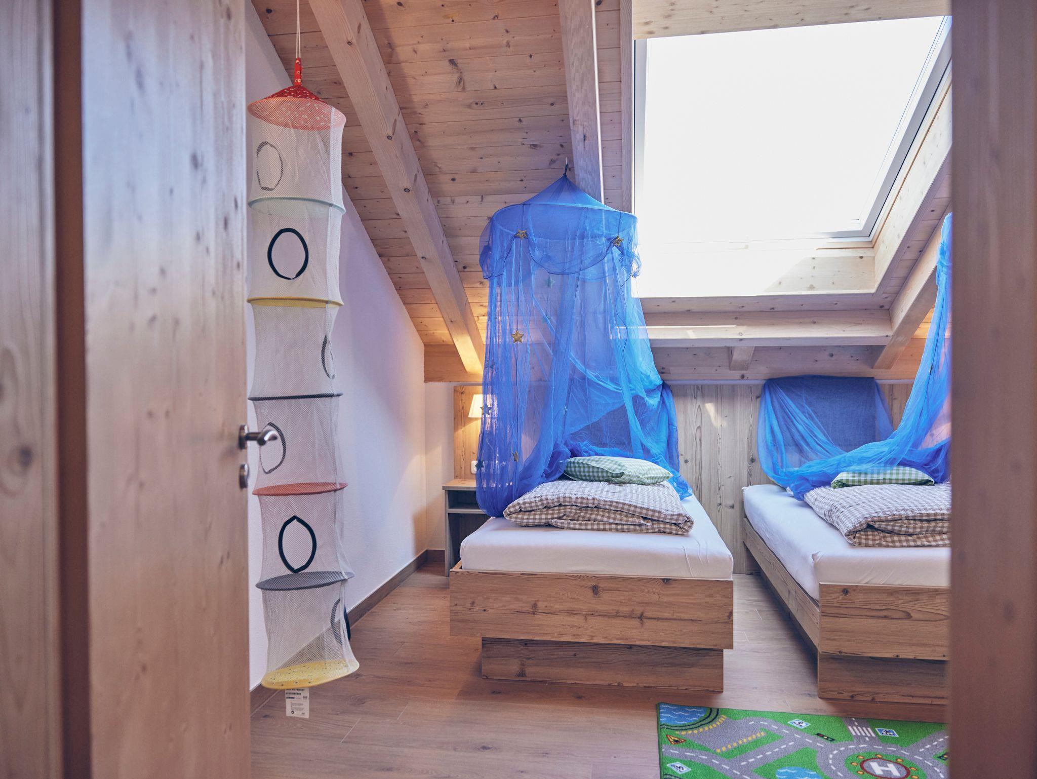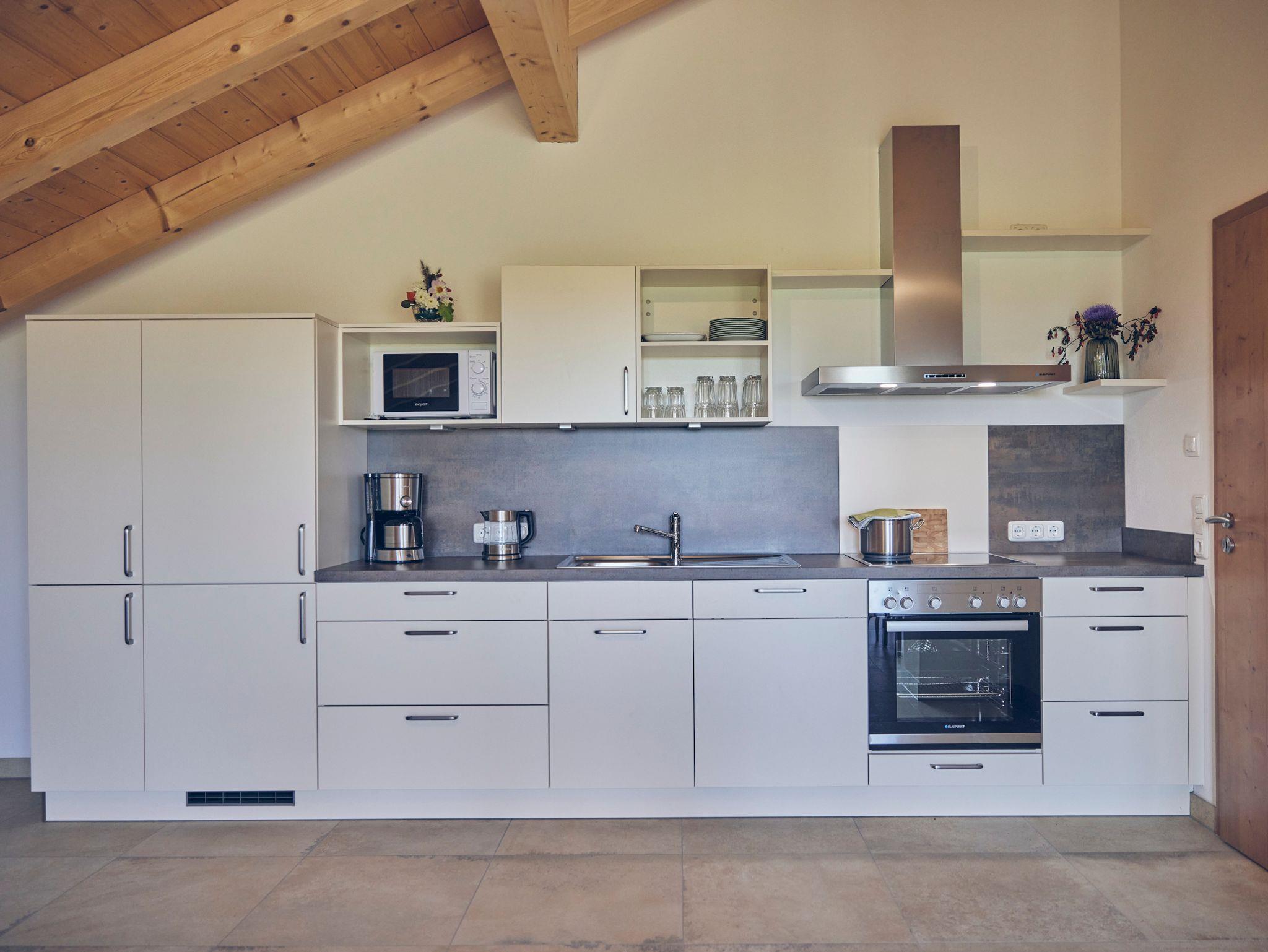 Im neu gebauten Bauernhaus im zweiten Obergeschoss erwarten Sie 2 großzügig angelegte Ferienwohnungen mit 2 Schlafzimmern und Wohnküche und Bad. Die Wohnungen verfügen über einen eigenen Balkon und einen Garten mit Grillplatz, Sitzplatz, Liegen und Spielplatz. Wir bieten einen verschließbaren Abstellraum für Ihre mitgebrachten Räder oder Sportgeräte.