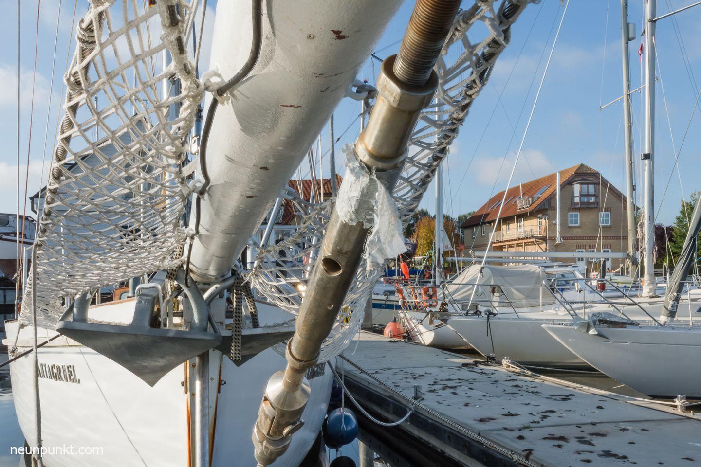 Gegen Gebühr können Sie ein Boot am Steg der Werft anlegen.