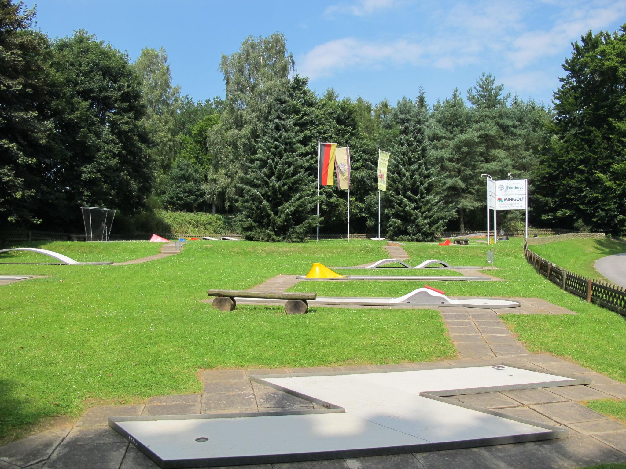 Ferienpark Twistesee 3 km from Bad Arolsen: Timber house "Waldglück". 100 houses in the resort. In the district of Wetterburg, 3 km from the centre of Bad Arolsen, 500 m from the lake, in the woods. For shared use: property 33 ha, trees, meadow. Nat. Swimm. Pond, fireplace, children's playground. Available: bicycles (2). Central parking spaces. E-charging station. Shop 3 km, supermarket 3 km, restaurant 1.5 km, bus stop 100 m, railway station "Bad Arolsen" 4 km, outdoor swimming pool 3.5 km, indoor swimming pool 4 km. Golf course (9 hole) 800 m, minigolf 500 m. Nearby attractions: Bergpark Wilhelmshöhe, Schloss Wilhelmsthal. Please note: car-free holiday complex. The lake with sand/grass beach and waterski facility is about 500 m away via a forest path.