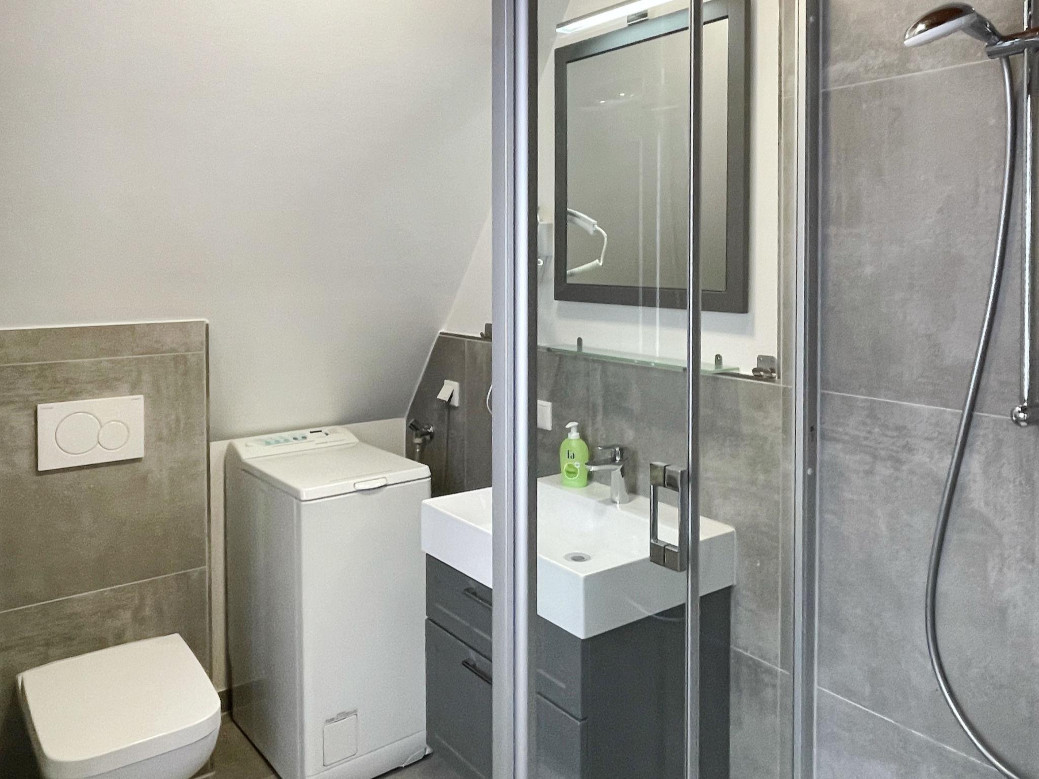 4-room house 70 m2 on 2 levels. Practical furnishings: living/dining room with sloping ceilings with satellite TV and radio. Exit to the terrace. 1 room with 1 double bed. With sloping ceilings, open kitchen (4 hot plates, oven, dishwasher, toaster, kettle, microwave, electric coffee machine). Shower/WC. Upper floor: (steep stair) with sloping ceilings, 2 rooms, each room with 2 beds. Gas heating. Terrace. Terrace furniture. Facilities: washing machine, children's high chair, baby cot. Internet (WiFi, free). Please note: non-smokers only. Smoke alarm, fire extinguisher.