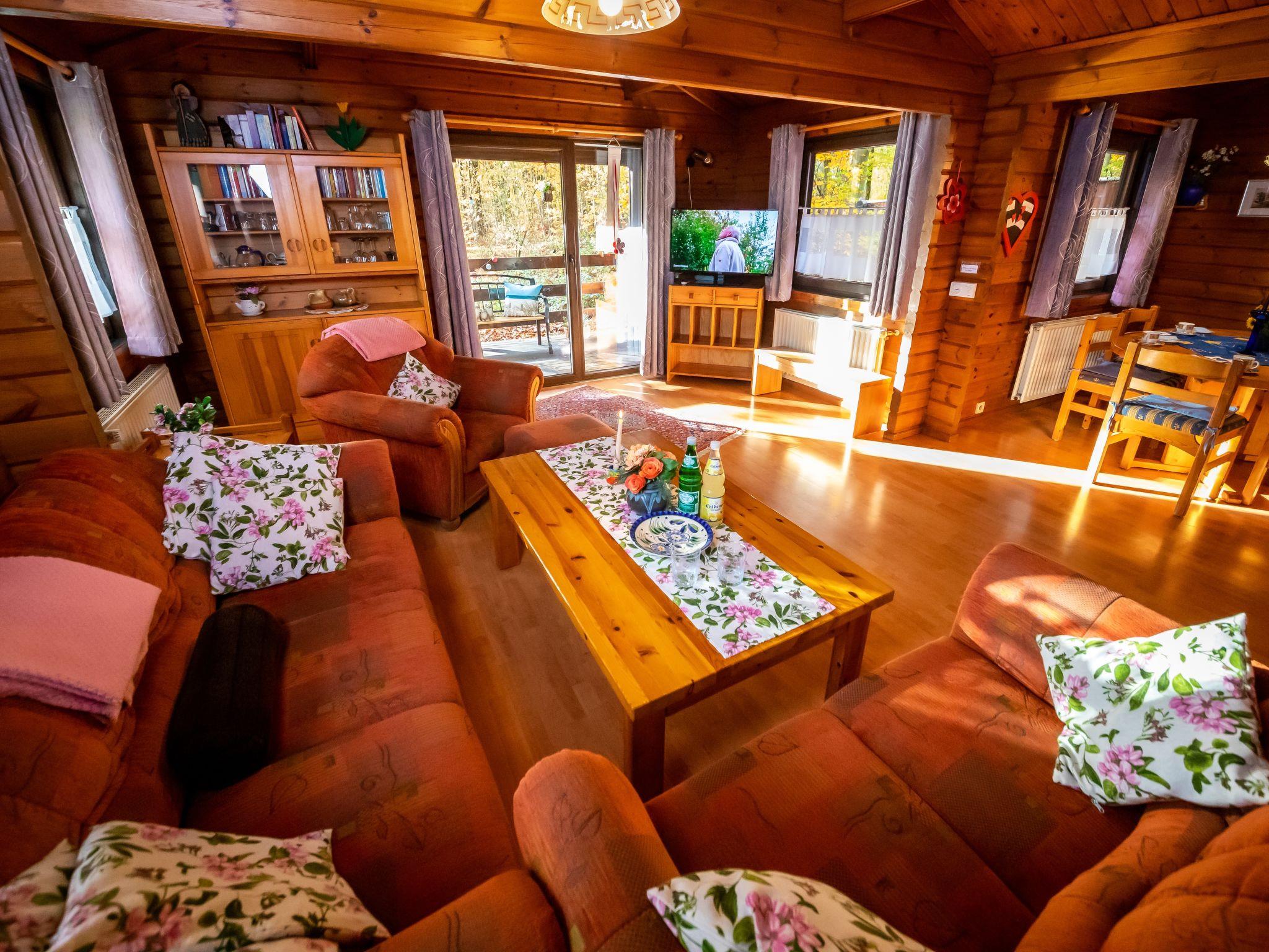 Ferienpark Twistesee 3 km from Bad Arolsen: Cosy timber house "Haus 57 Wald Eck", renovated in 2018. 400 m from the lake, in the countryside, in the woods. For shared use: park. Barbecue. In the house: storage room for bicycles. Parking at the house. E-charging station. Supermarket 3 km, restaurant 800 m, bus stop 3 km, railway station 3 km, sandy beach 400 m, outdoor swimming pool, indoor swimming pool 3 km. Golf course (9 hole) 800 m, minigolf 200 m, children's playground 100 m. The owner does not accept any youth groups. Please note: Loading and unloading of baggage is possible at the holiday house.
