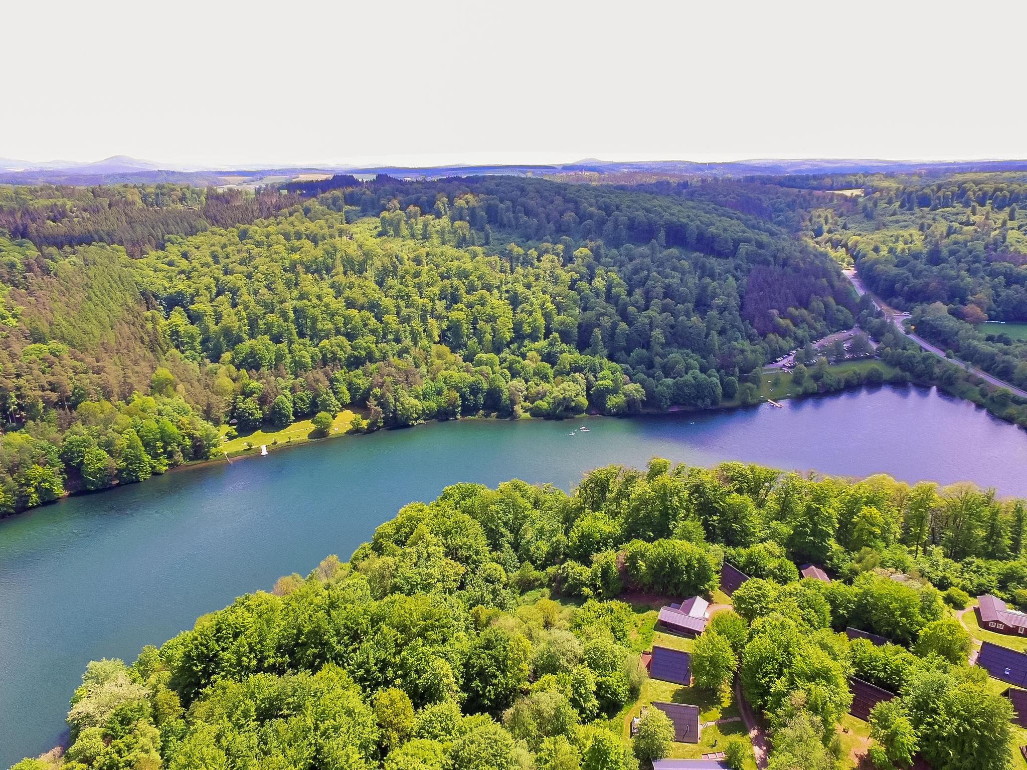 Ferienpark Twistesee 3 km from Bad Arolsen: Cosy timber house "Hannah", renovated in 22. 100 houses in the resort. In the district of Wetterburg, 500 m from the lake, in the woods. For shared use: property 33 ha, trees, meadow. Table tennis, fireplace, children's playground. In the house: storage room for bicycles, drying room. Central parking spaces. E-charging station. Supermarket 2.5 km, restaurant 1.5 km, bus stop 800 m, sandy beach, outdoor swimming pool 1 km. Golf course (9 hole) 800 m, tennis, minigolf 500 m, riding stable 400 m, children's playground 150 m.