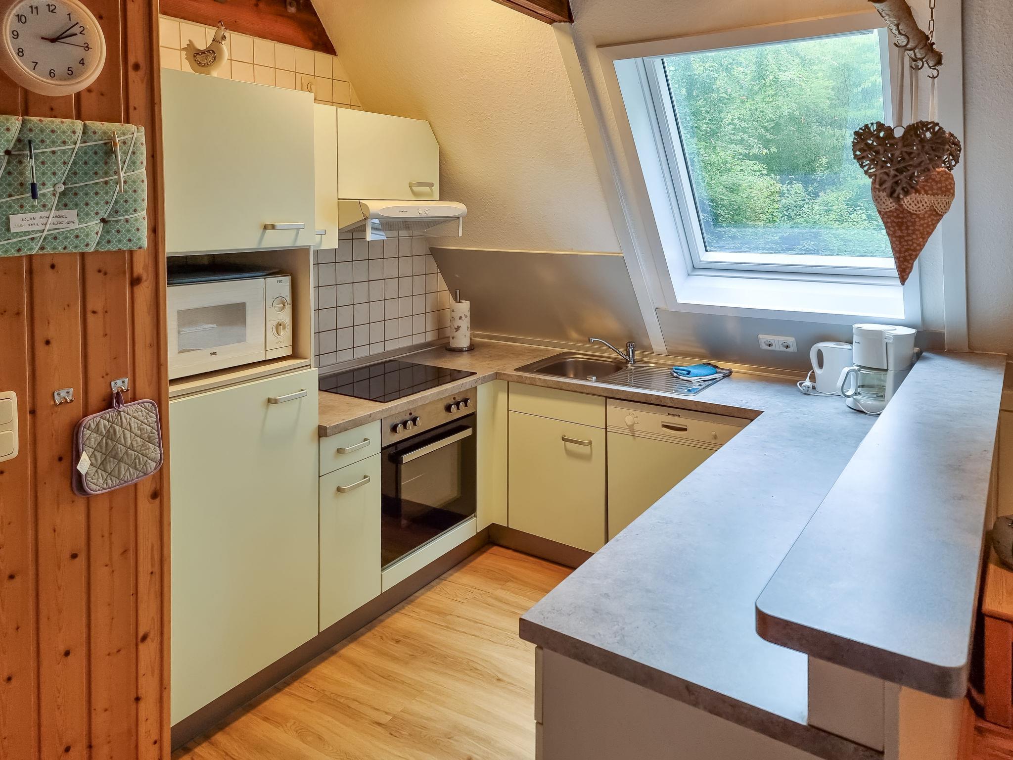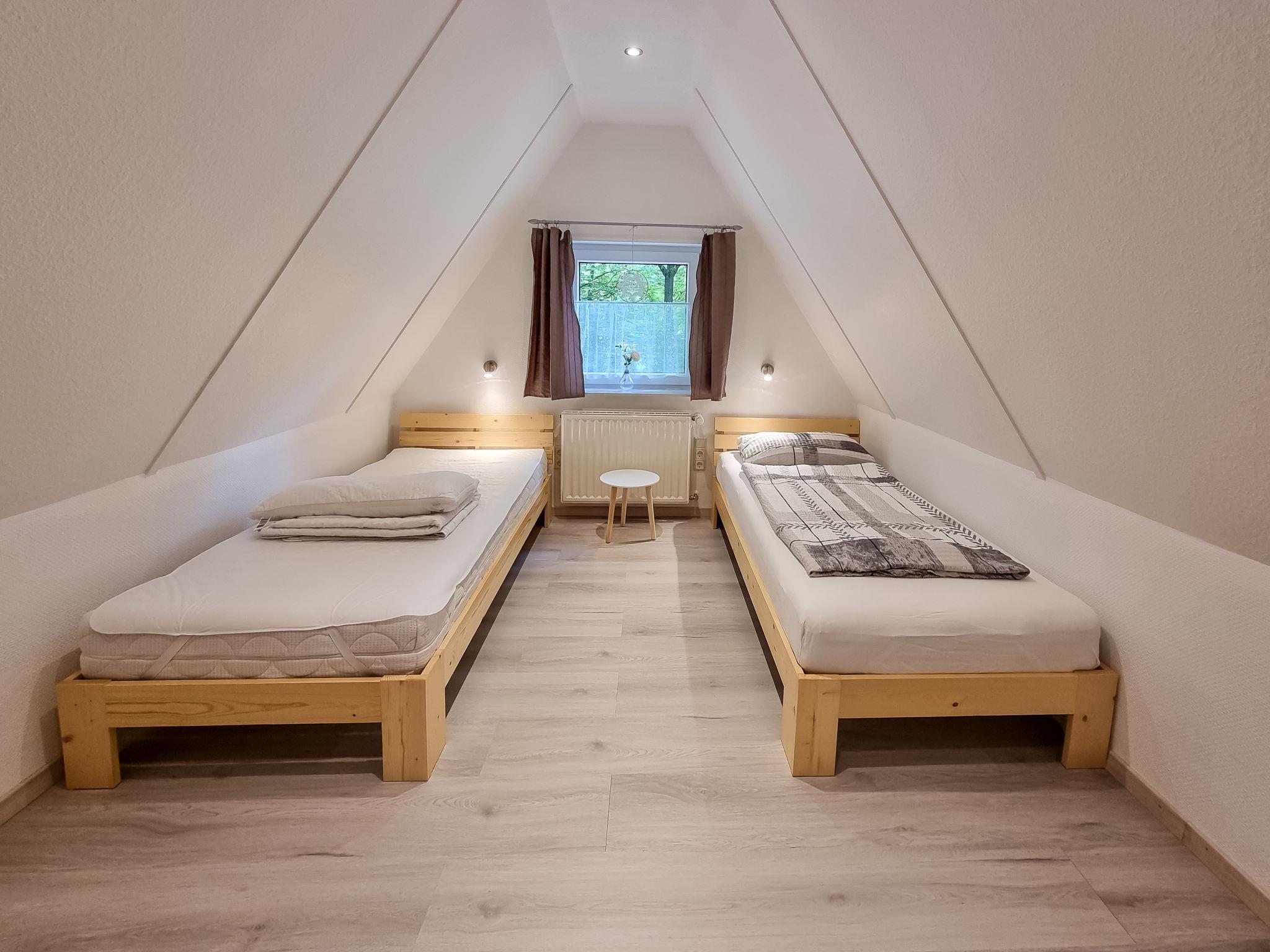 4-room house 75 m2 on 2 levels. Renovated in 2022, comfortable and cosy furnishings: living/dining room with satellite TV, flat screen and DVD. Exit to the terrace. 1 room with sloping ceilings with 1 double bed. Open kitchen (4 ceramic glass hob hotplates, toaster, kettle, microwave, freezer, electric coffee machine). Shower/WC. Upper floor: (steep stair), 1 room with sloping ceilings with 2 beds (90 cm, length 200 cm). 1 room with sloping ceilings with 1 bed (90 cm, length 200 cm). Gas heating. Large terrace 16 m2, patio 20 m2. Terrace furniture, electric barbecue, deck chairs (2). View of the forest. Facilities: Internet (WiFi, free). Please note: non-smoking house. Smoke alarm, fire extinguisher. * Table tennis rackets, mini golf clubs and balls.