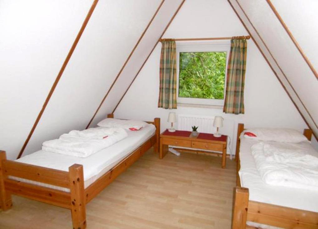 Im Obergeschoss befinden sich zwei weitere Zimmer mit je zwei Einzelbetten.